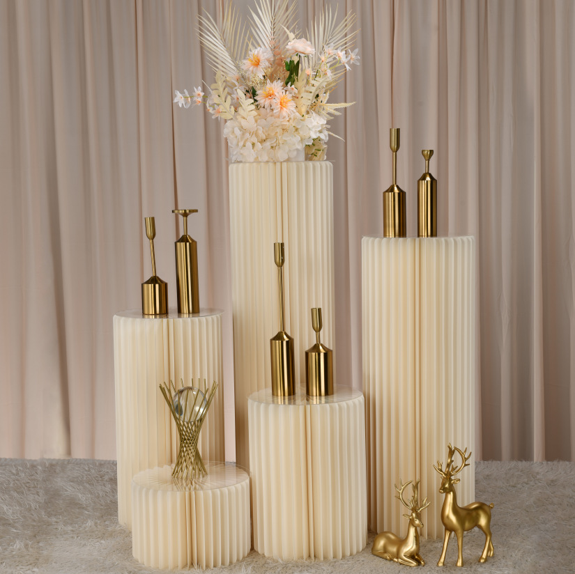 新款纸质折叠圆柱甜品台婚礼摆件罗马柱路引生日派对会展布置道具