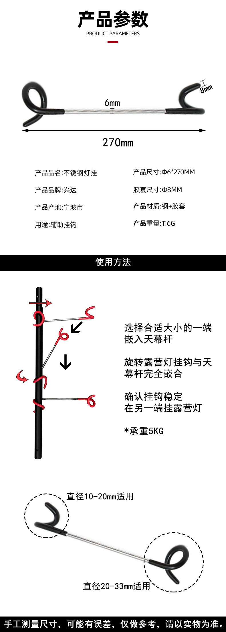 兴达户外露营多功能帐篷灯汽灯挂钩 S型双头置物钩多规格便携灯挂