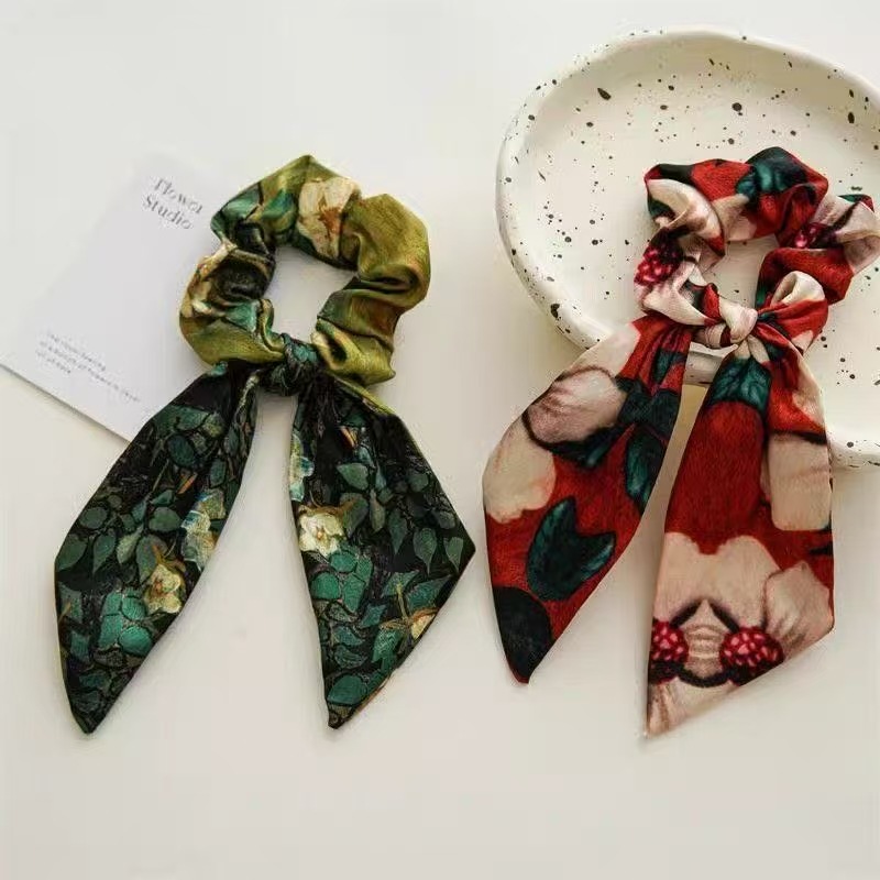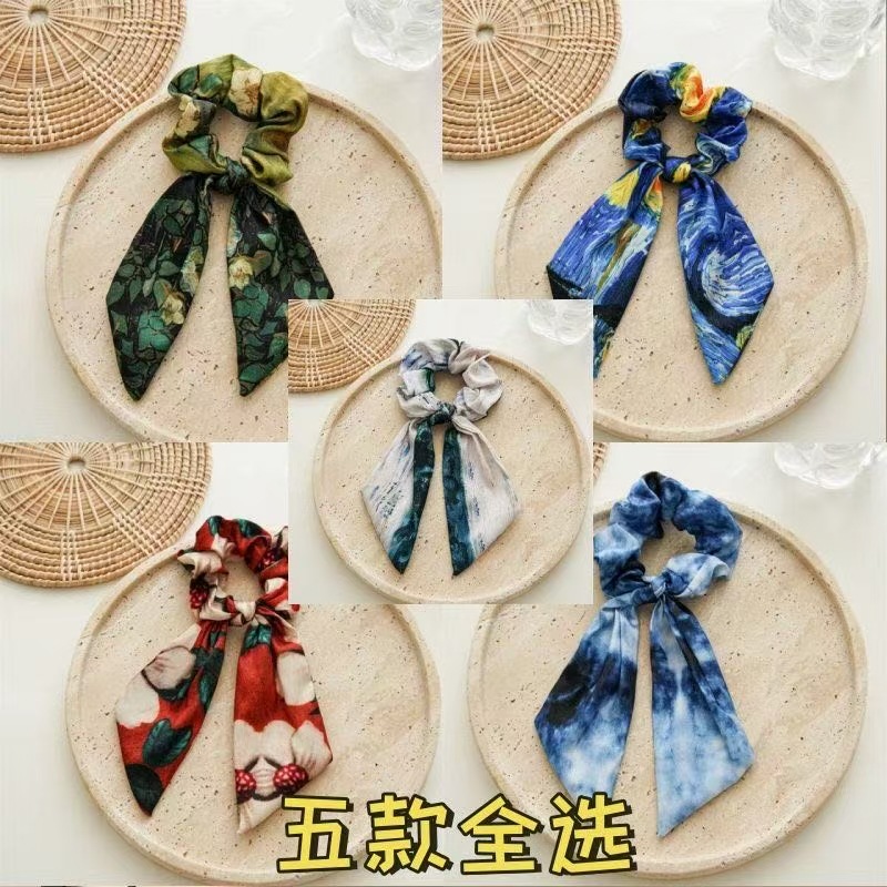 星空蓝油画蝴蝶结飘带大肠发圈头绳扎头发马尾春夏外出发绳发饰女