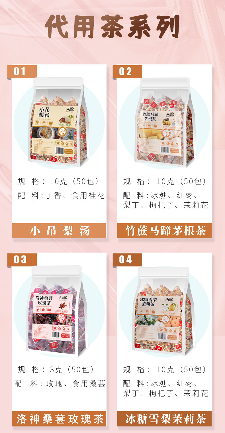 | 竹蔗茅根雪梨茶【八边封三角包·10g*50包】 | USD $2.07 | 220067 bag available |