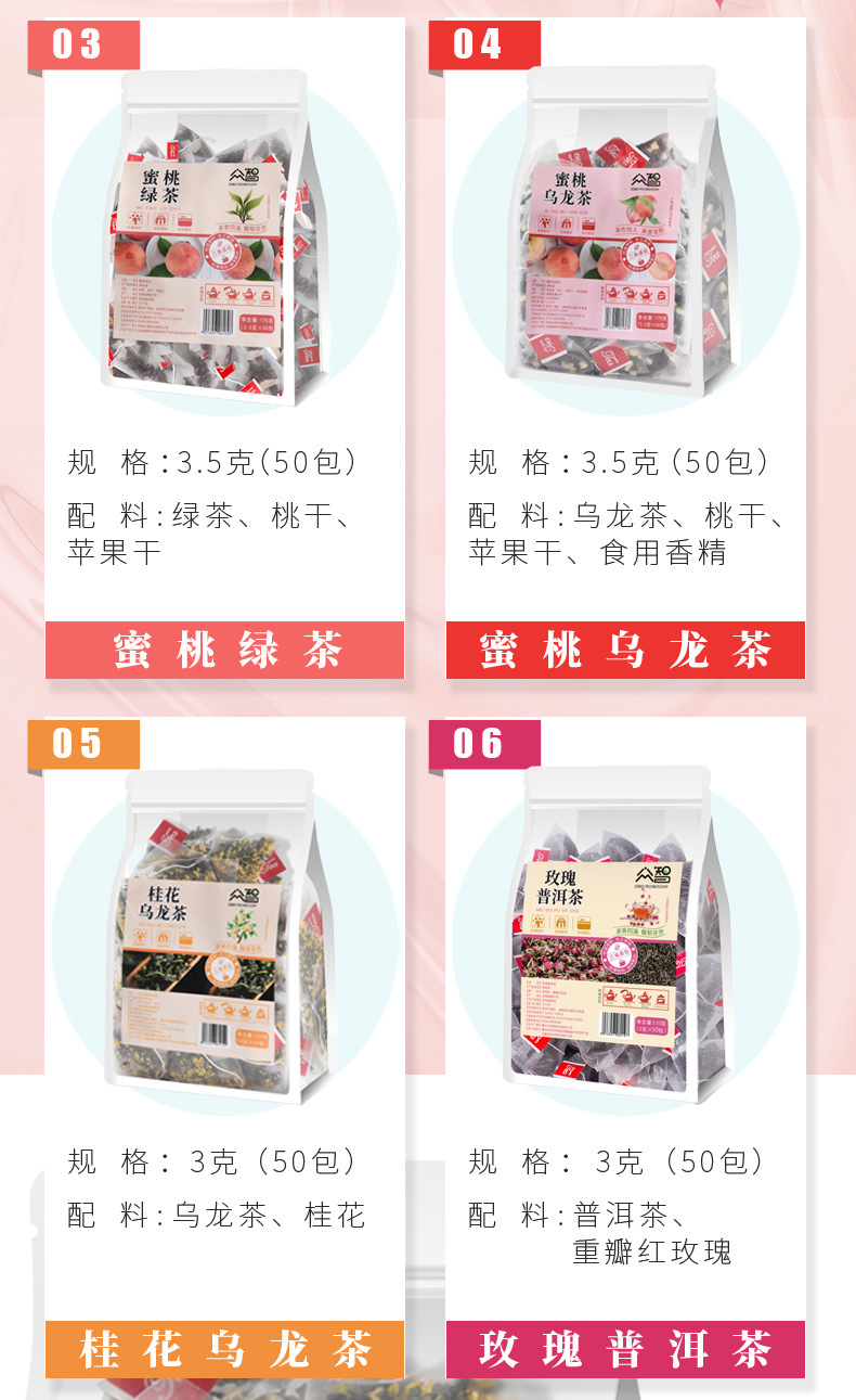 众智花果茶50包蜜桃乌龙茶元气四宝养生花茶独立茶包实惠装批发