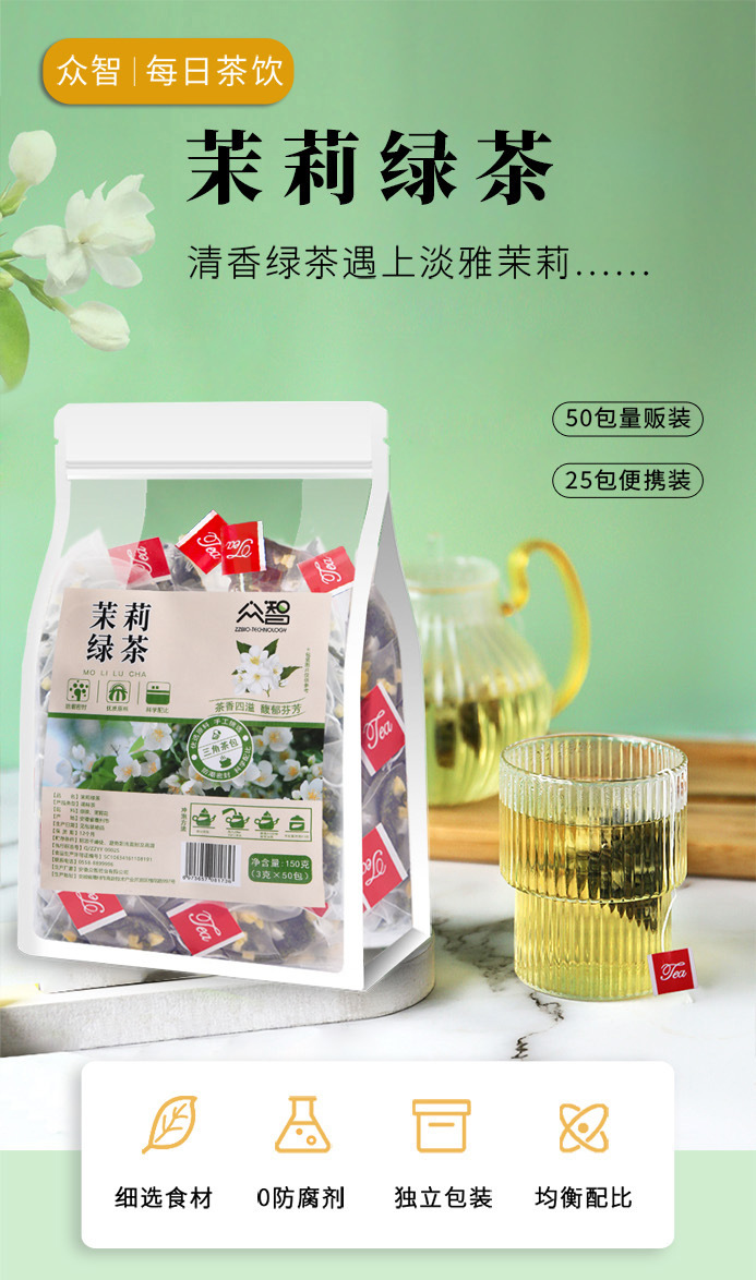 茉莉绿茶便携实惠装袋泡茶独立三角茶包花茶散批厂家贴牌现货批发