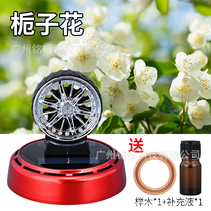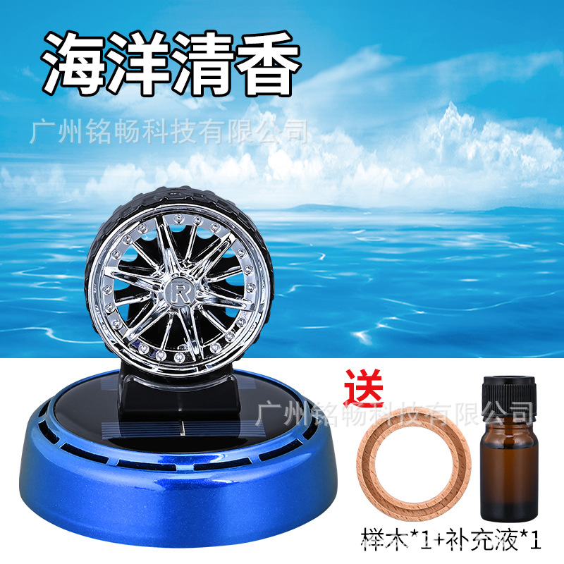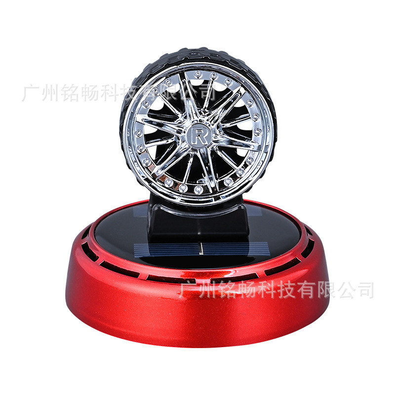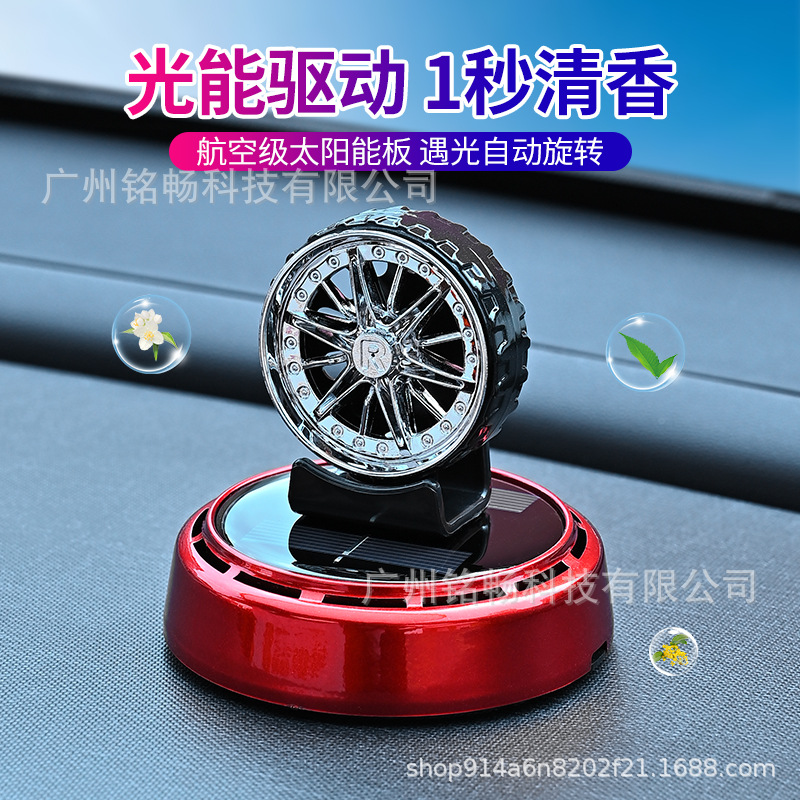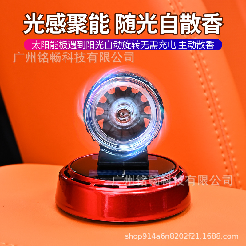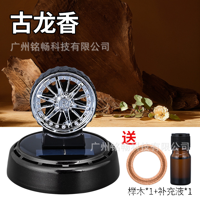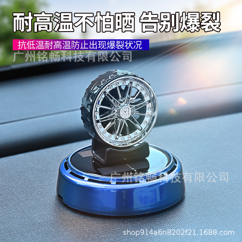 跨境太阳能轮毂车载摆件汽车旋转香薰香水轮胎太阳能车内饰品车载