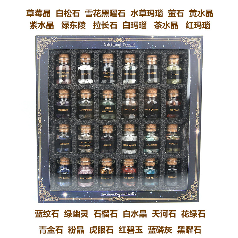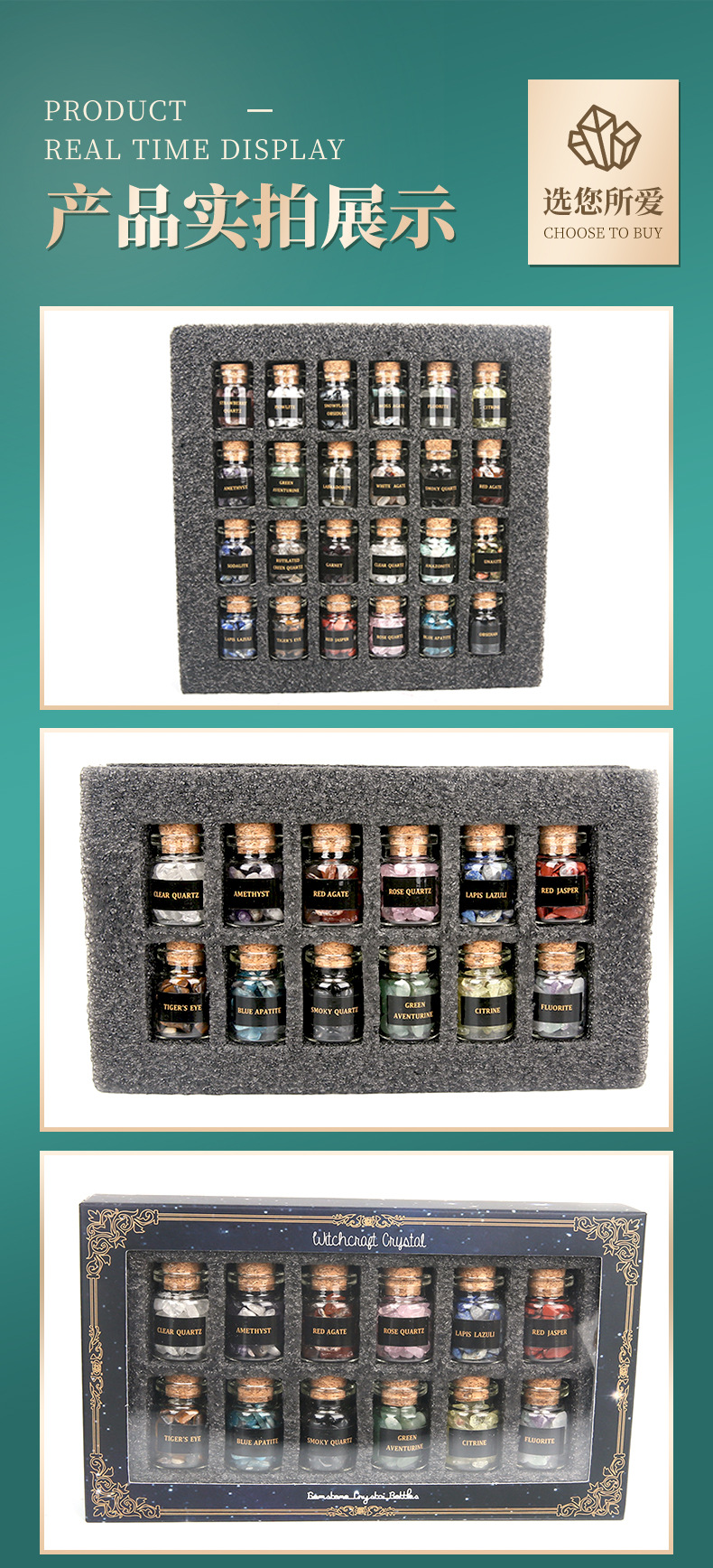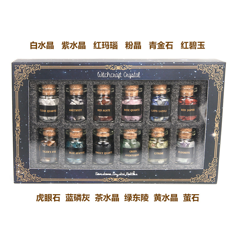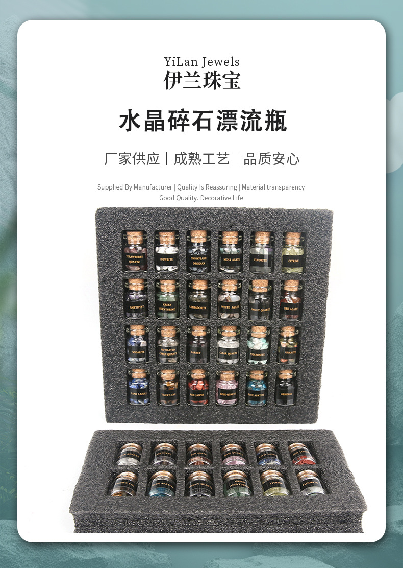 供应跨境外贸爆品天然水晶碎石小瓶子许愿香薰漂流瓶礼盒装批发