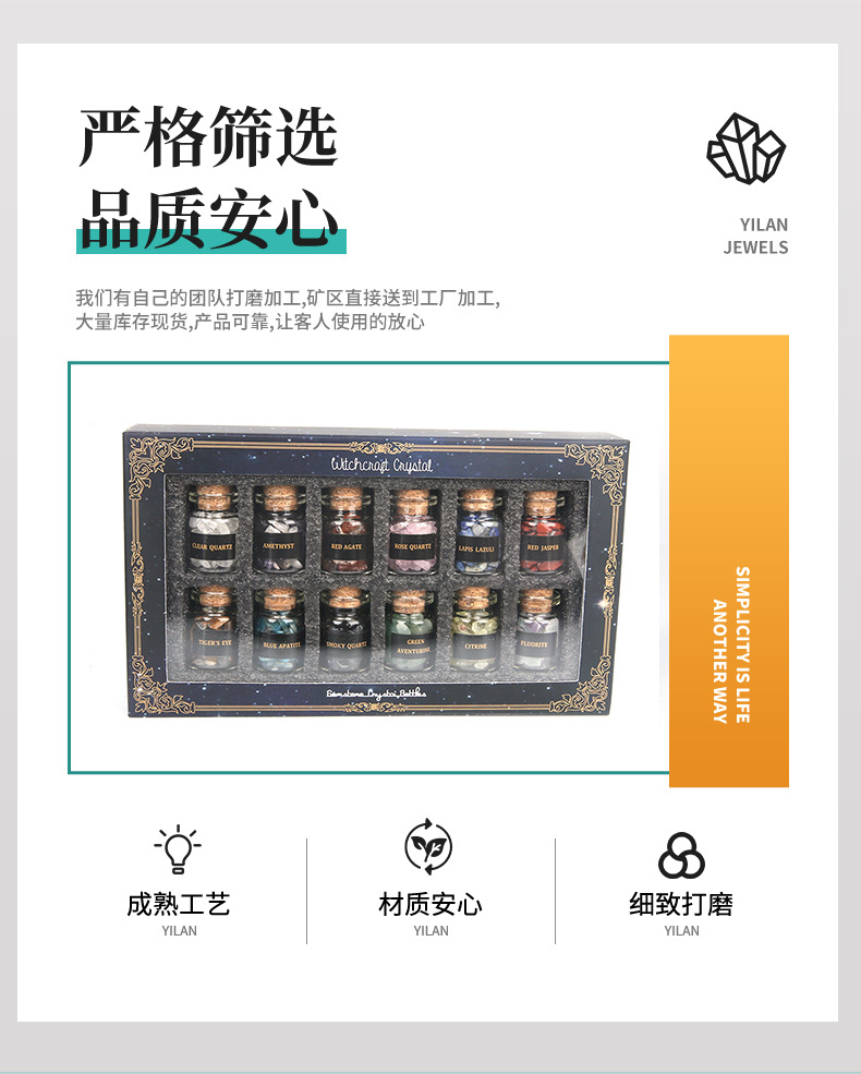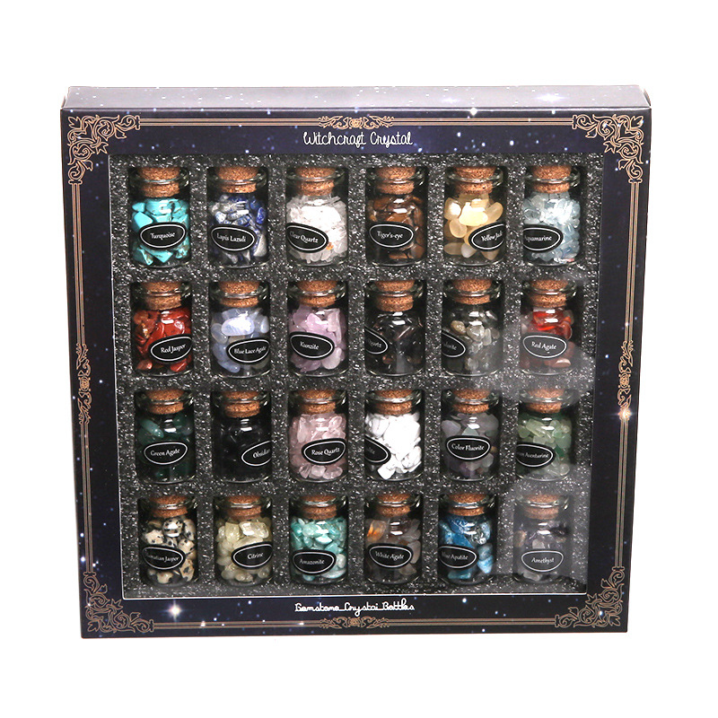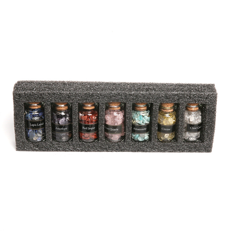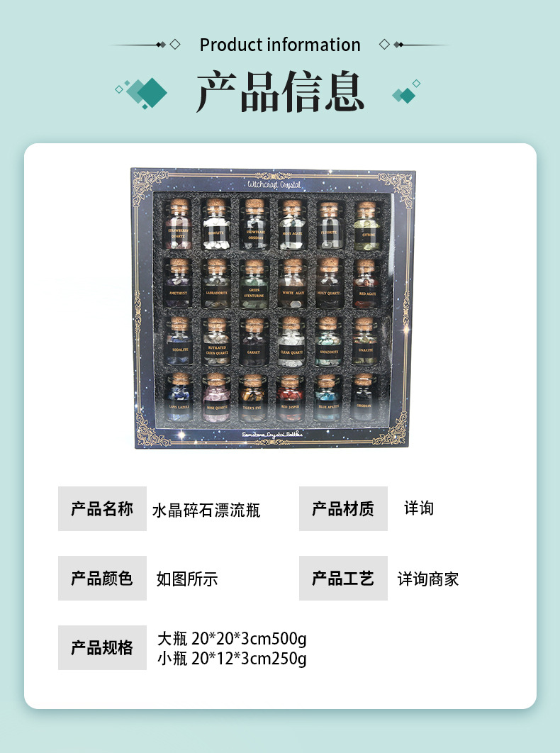供应跨境外贸爆品天然水晶碎石小瓶子许愿香薰漂流瓶礼盒装批发