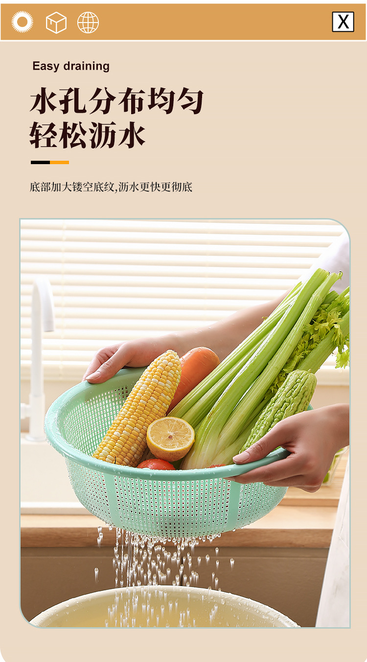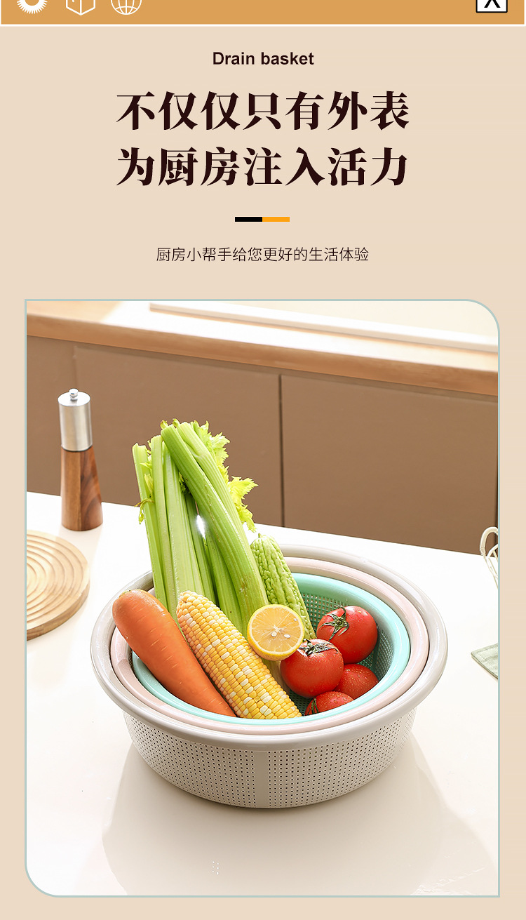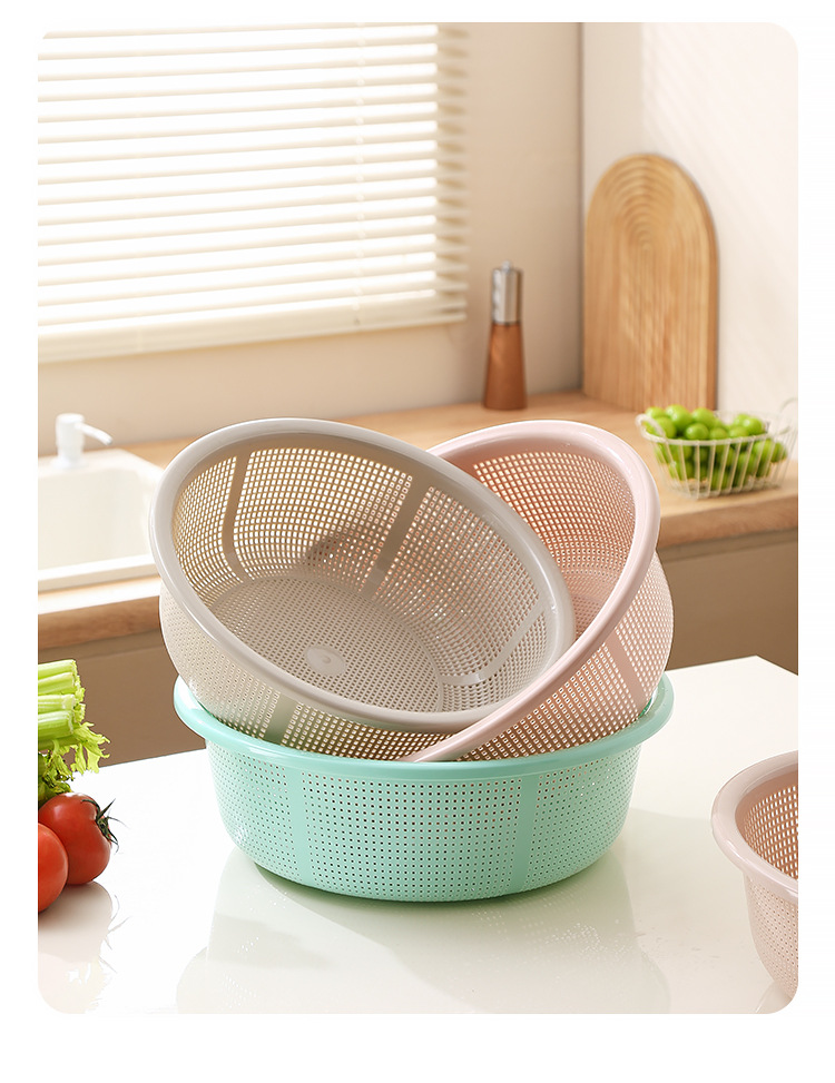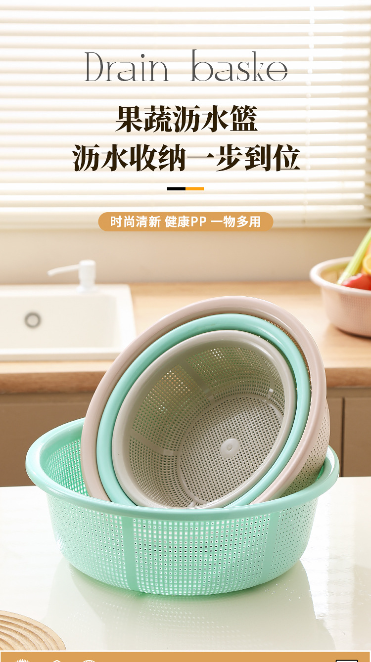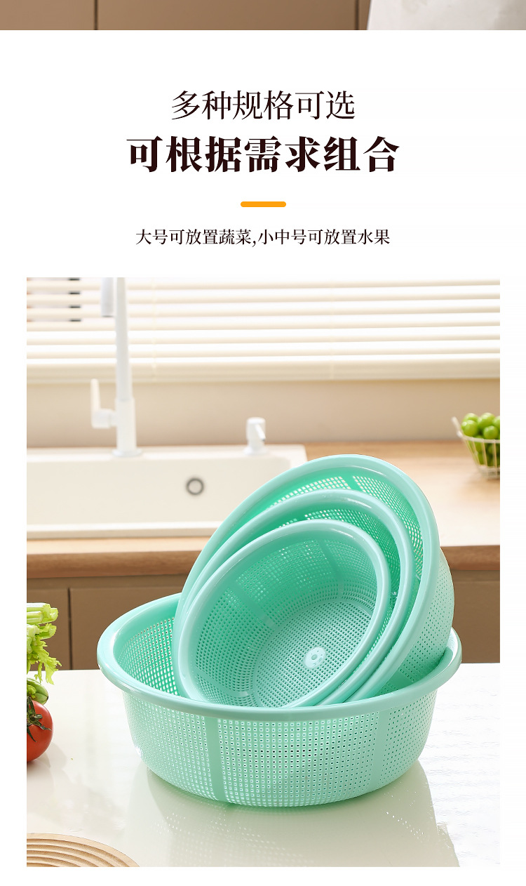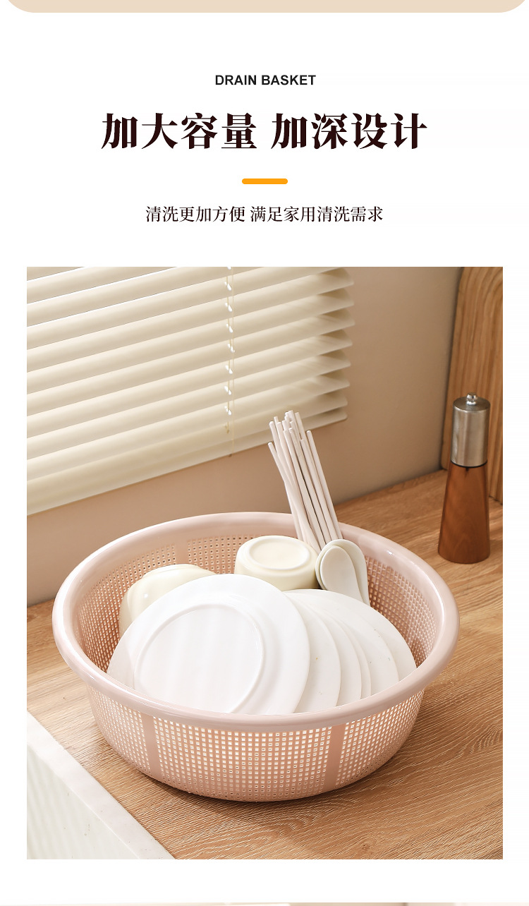 沥水篮家用米筛加厚耐摔厨房圆形多功能滤水筐蔬菜水果收纳洗菜篮