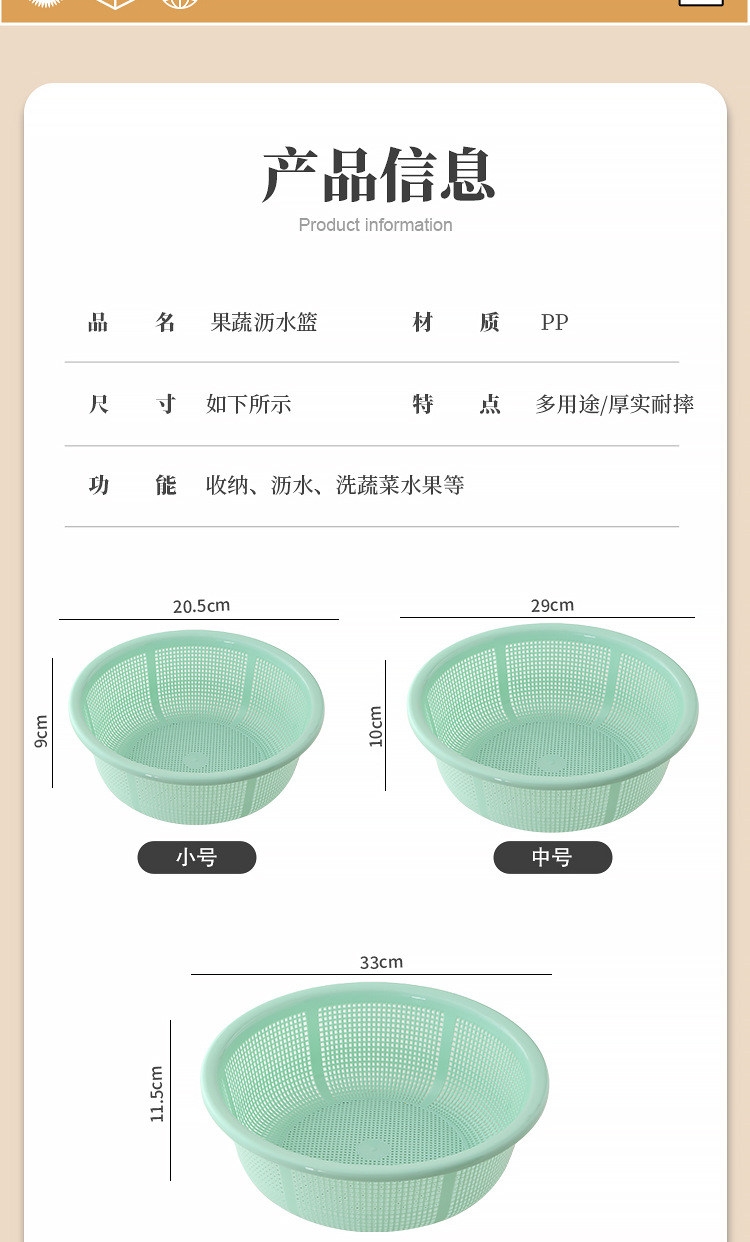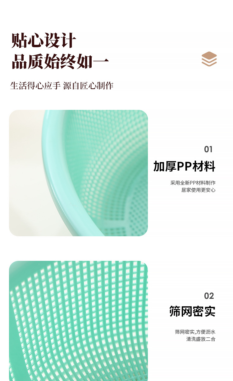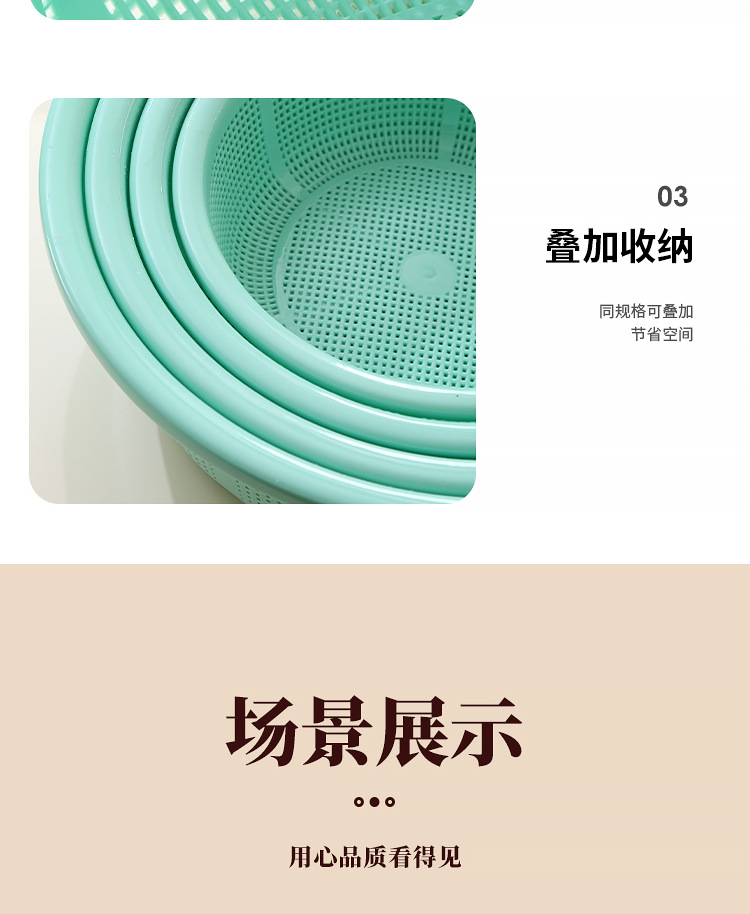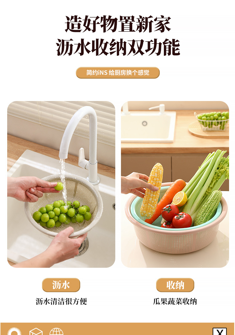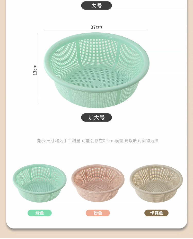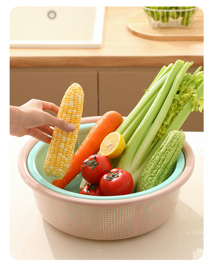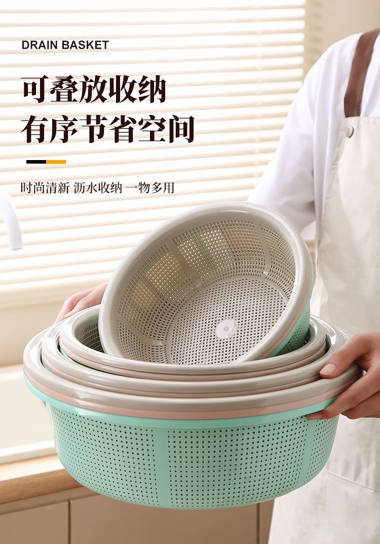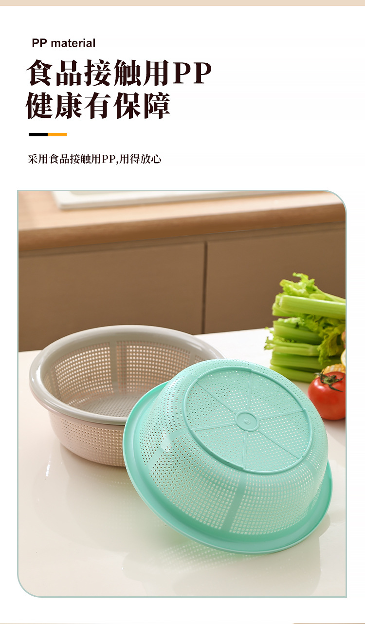 沥水篮家用米筛加厚耐摔厨房圆形多功能滤水筐蔬菜水果收纳洗菜篮
