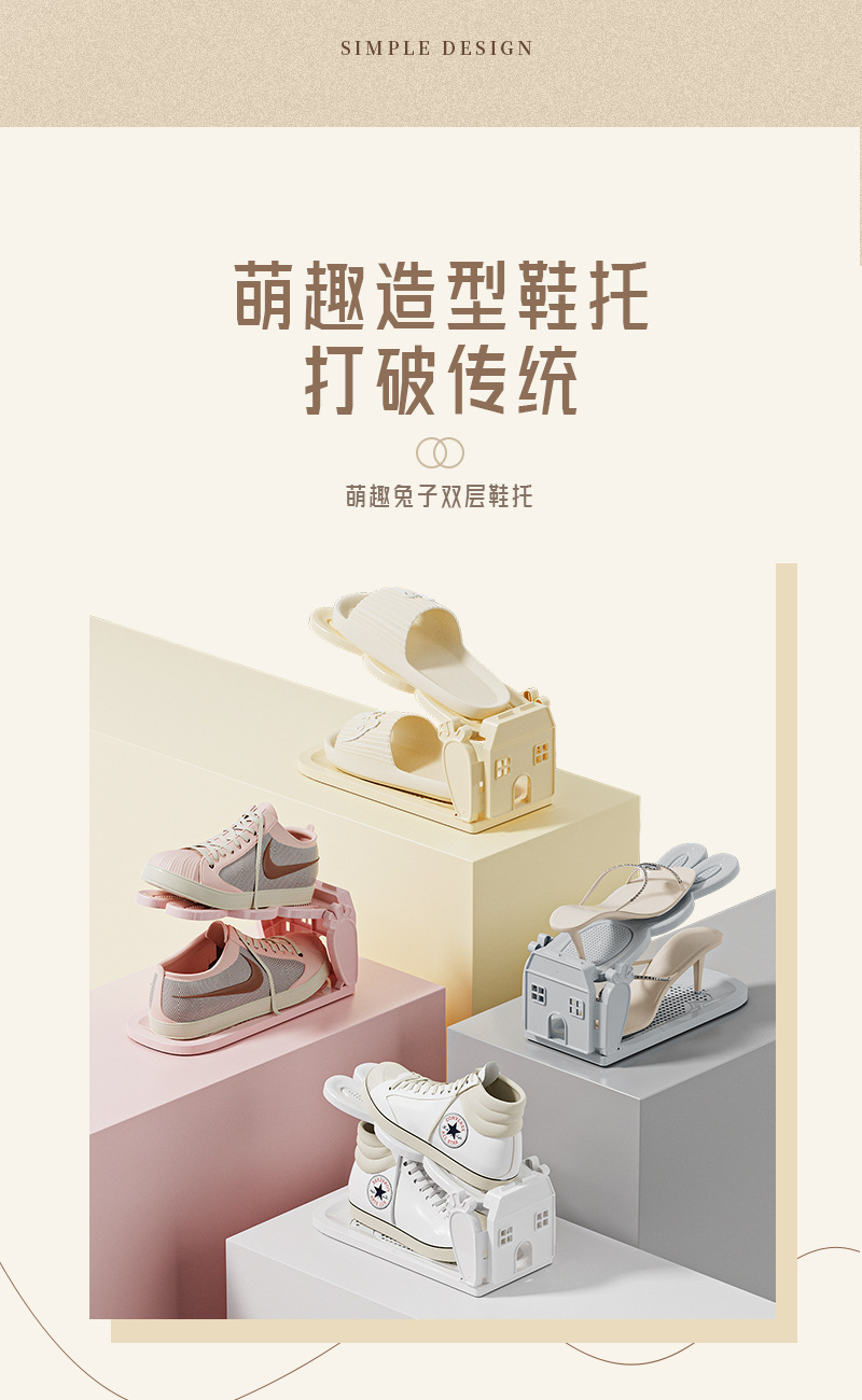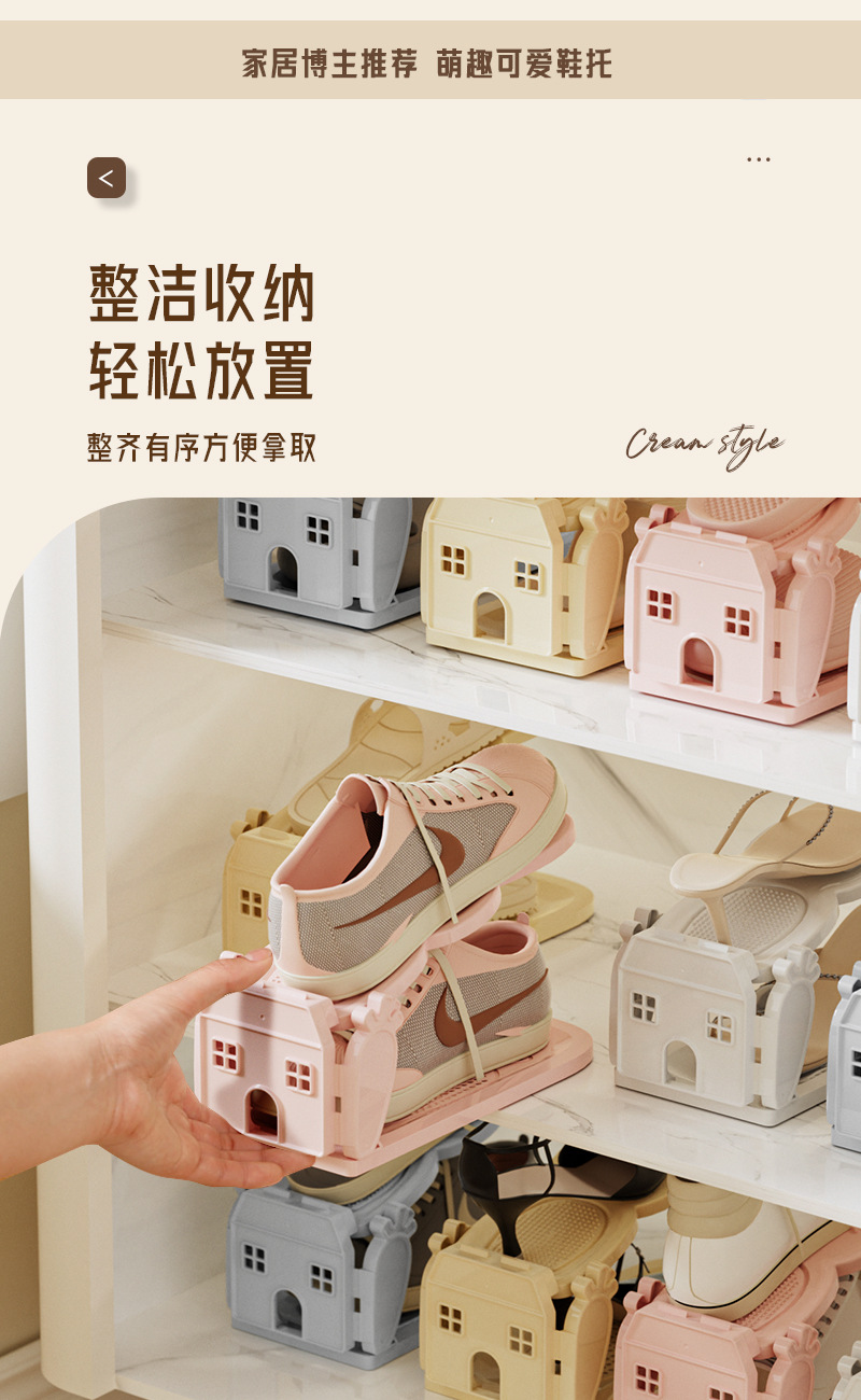 可调节收纳双层加厚鞋架分层鞋托家用宿舍鞋柜卡通可爱鞋子收纳架