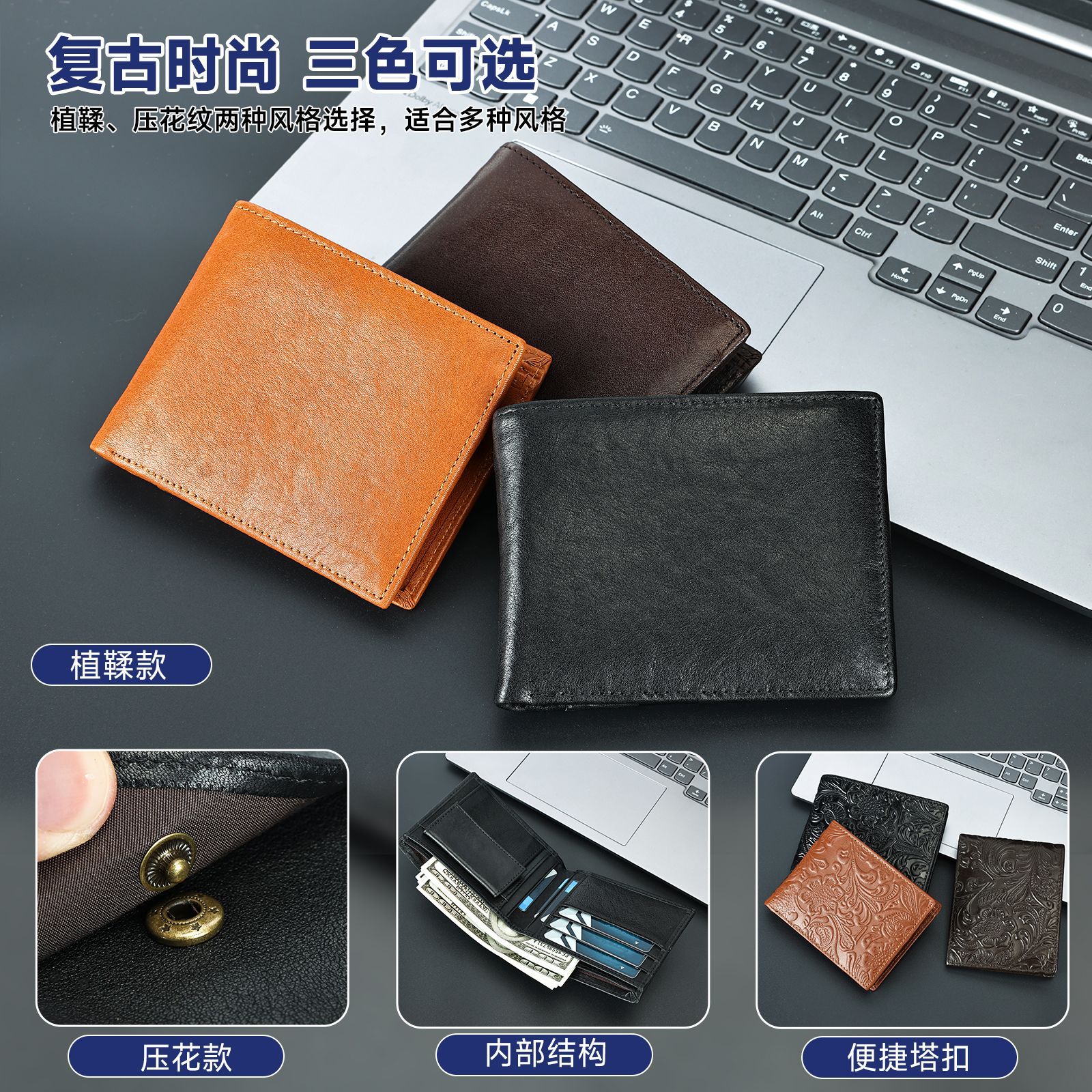 跨境男士真皮短款钱包欧美复古零钱包手工头层牛皮卡包皮夹钱包男