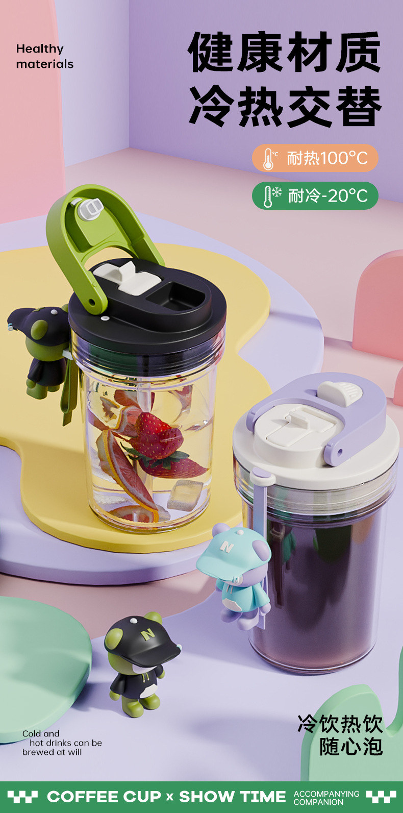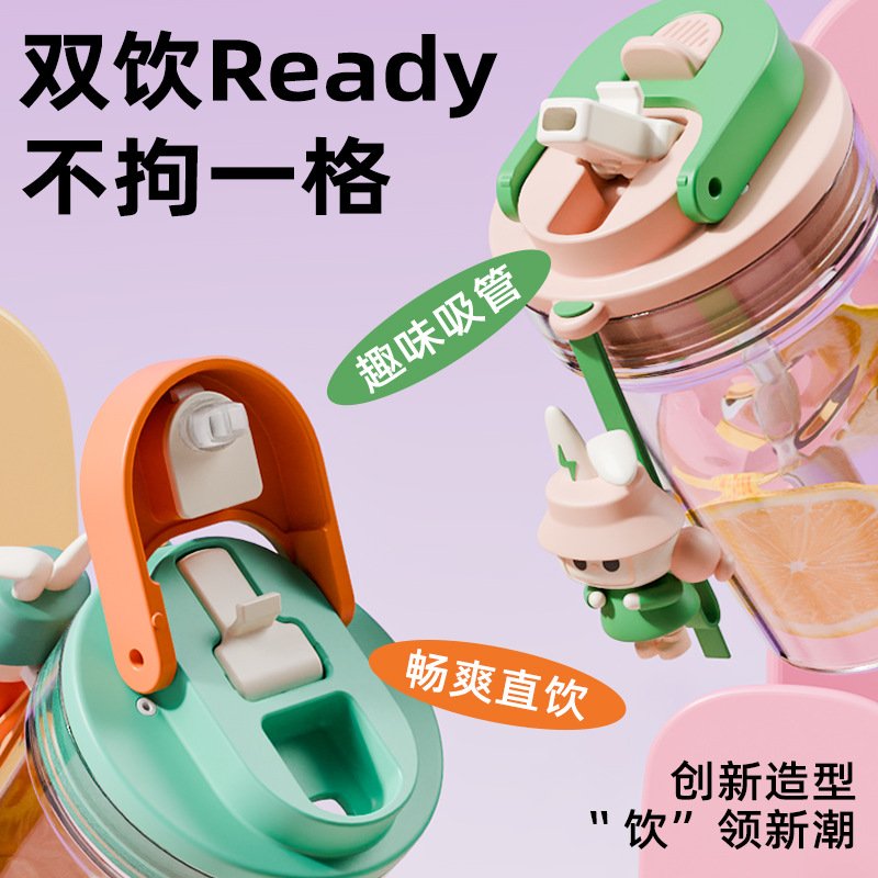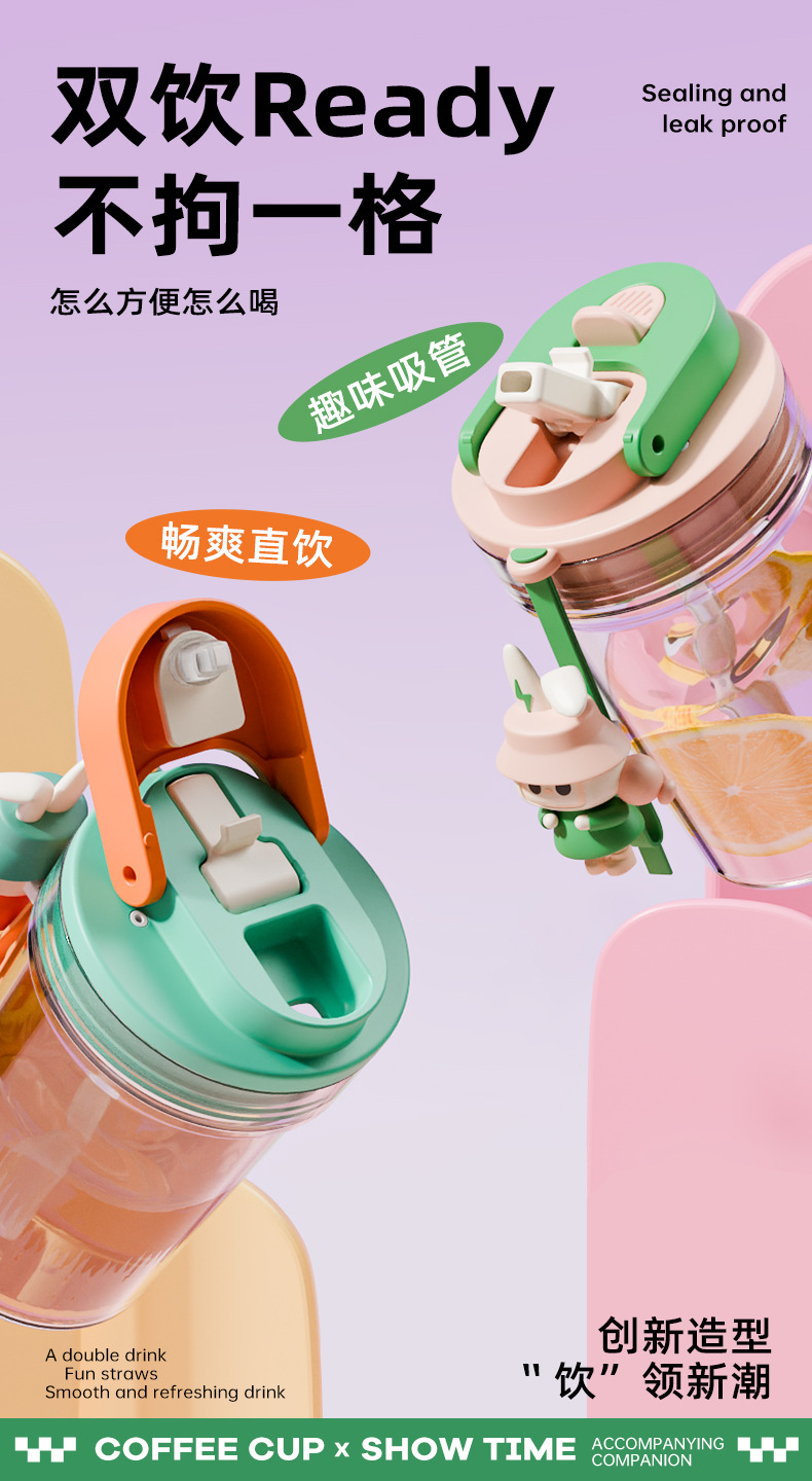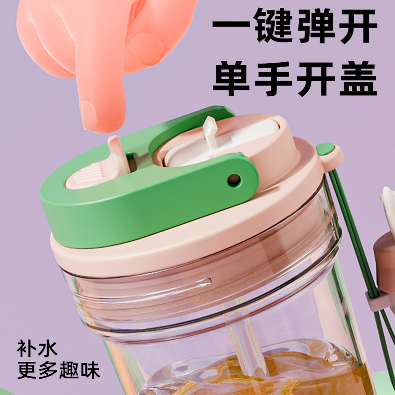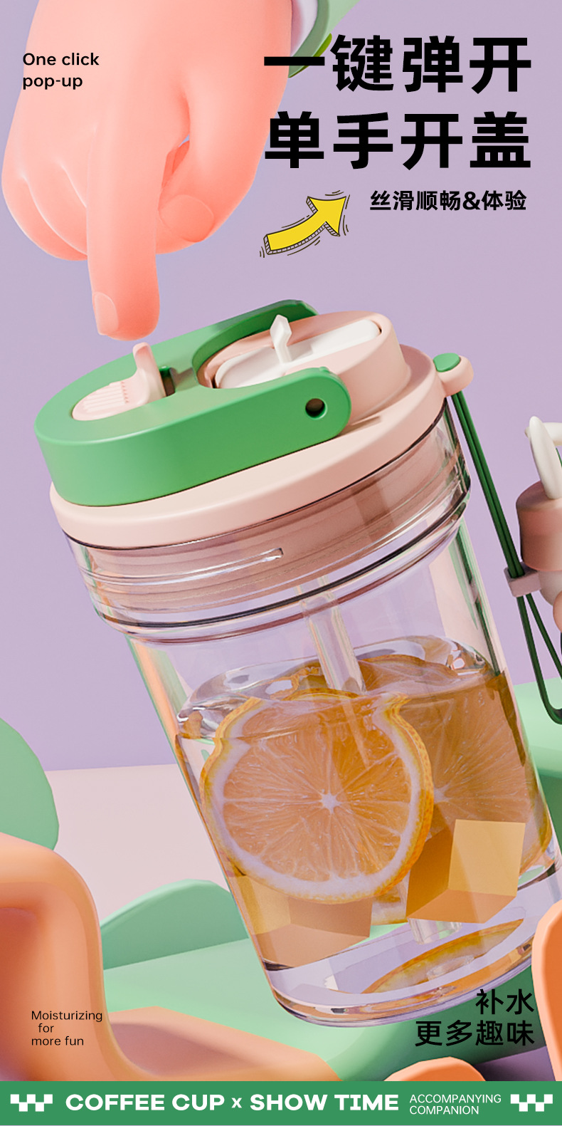随行便携水杯夏季高颜值咖啡杯塑料杯食品级双饮杯一键弹跳塑料杯