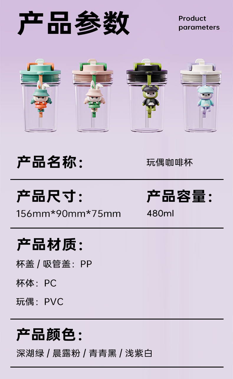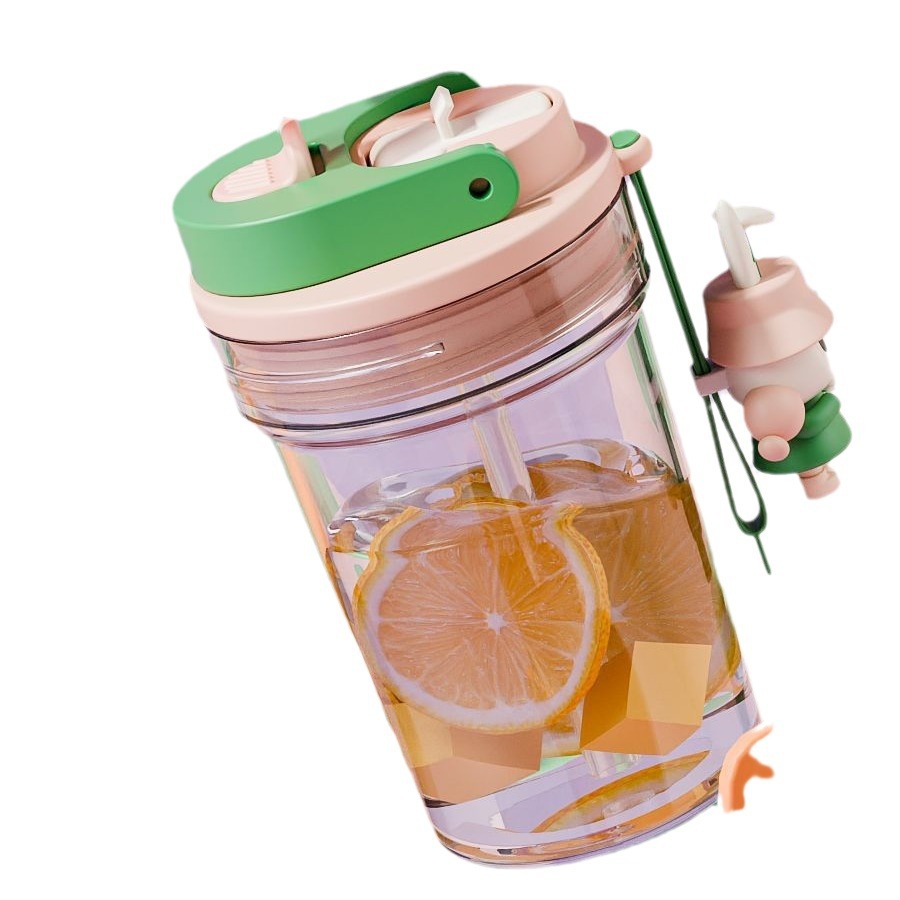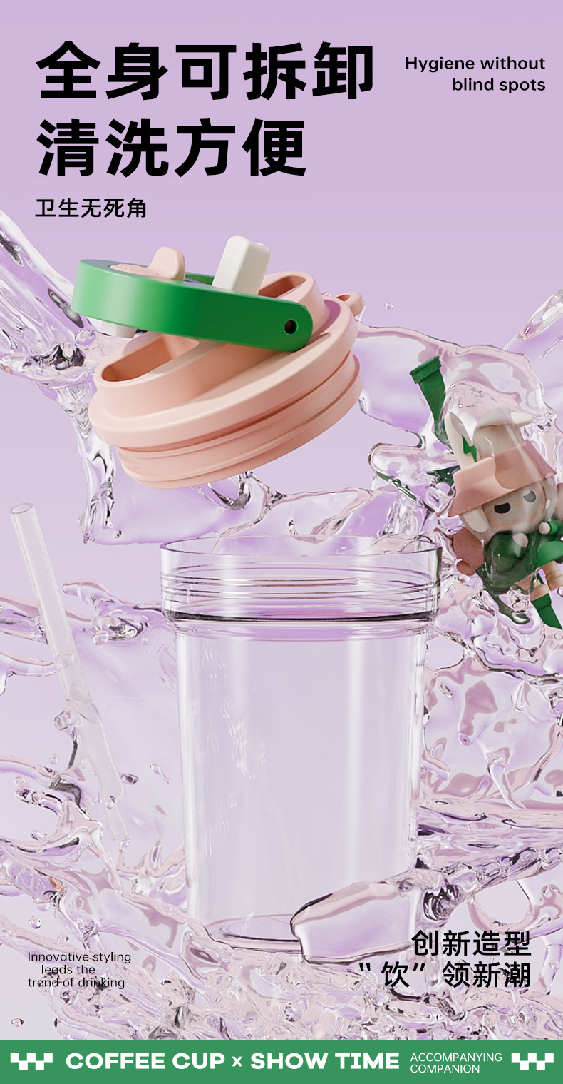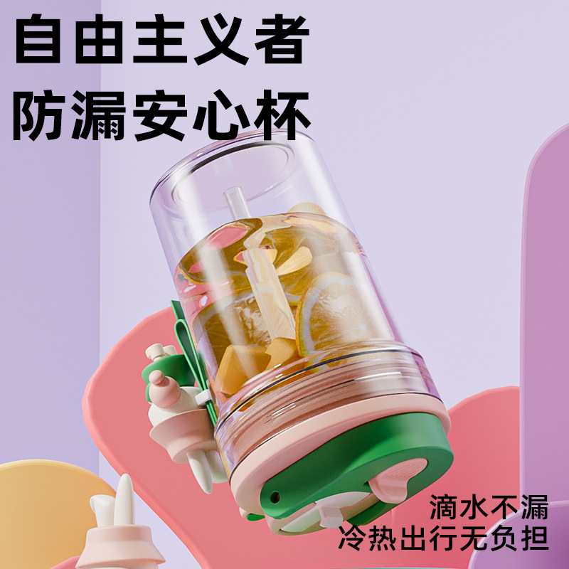 随行便携水杯夏季高颜值咖啡杯塑料杯食品级双饮杯一键弹跳塑料杯
