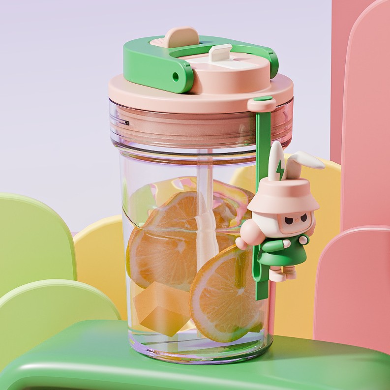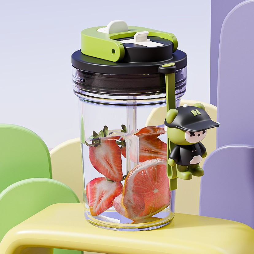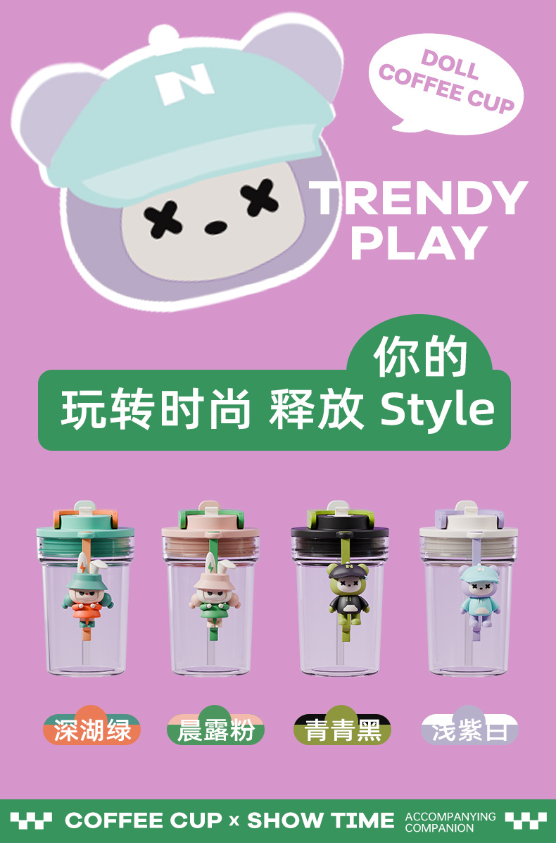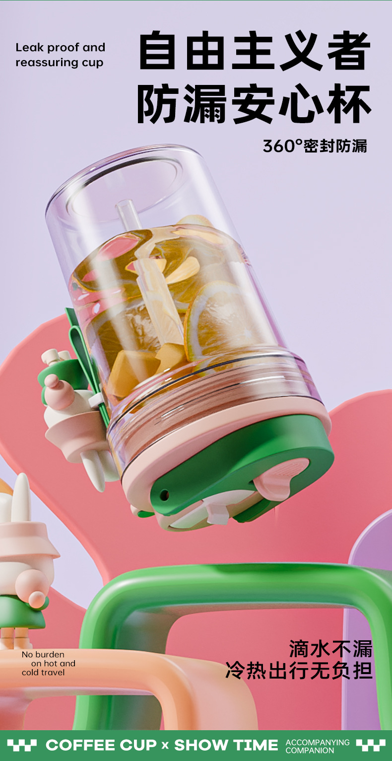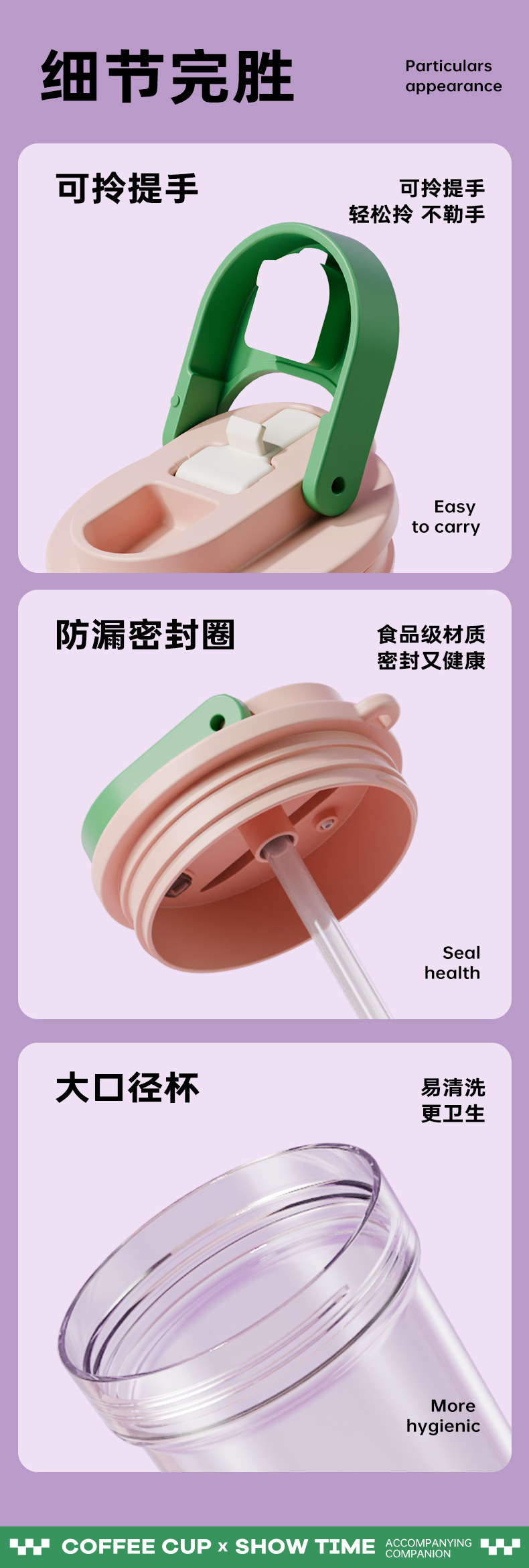 随行便携水杯夏季高颜值咖啡杯塑料杯食品级双饮杯一键弹跳塑料杯