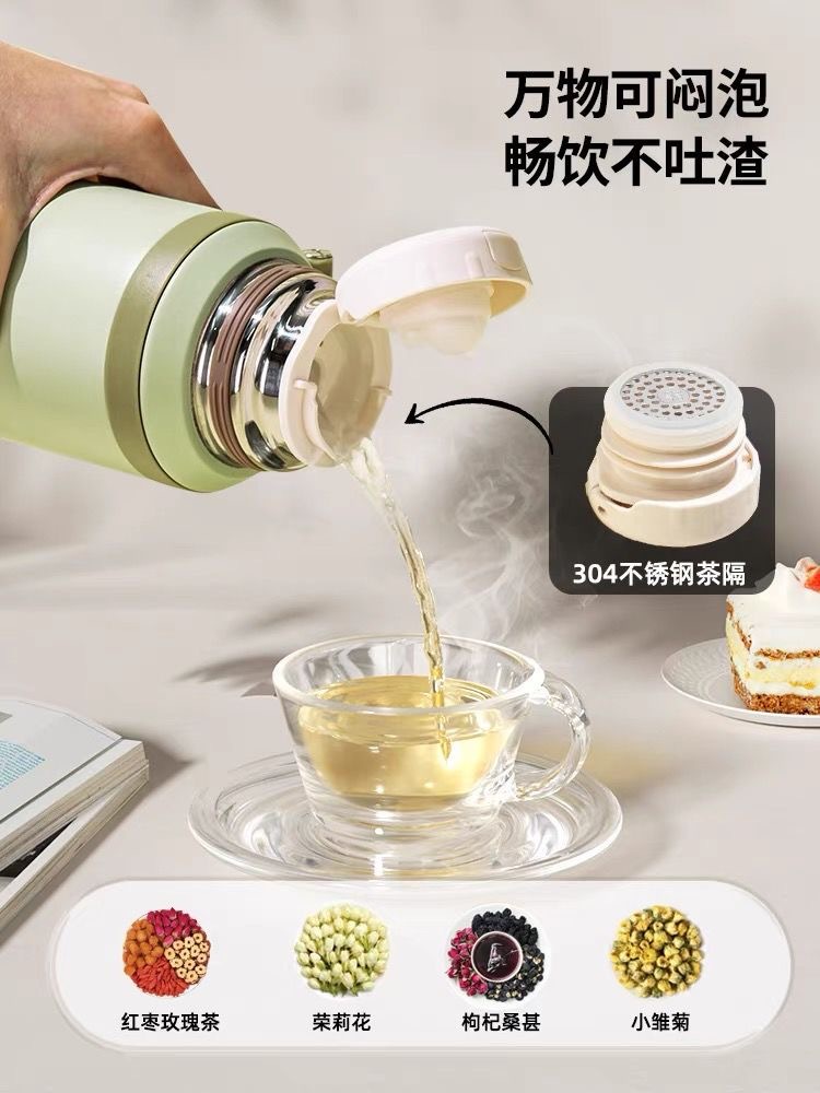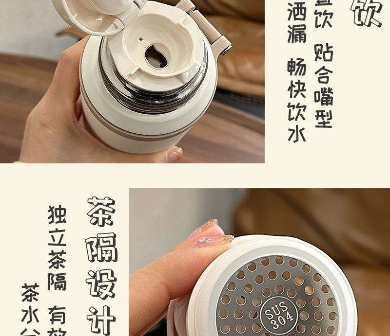 2024新款学生上学专用水杯茶水分离316不锈钢便携大容量保温杯
