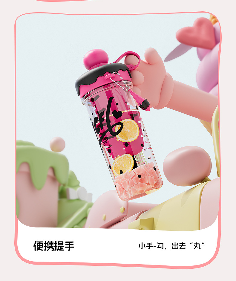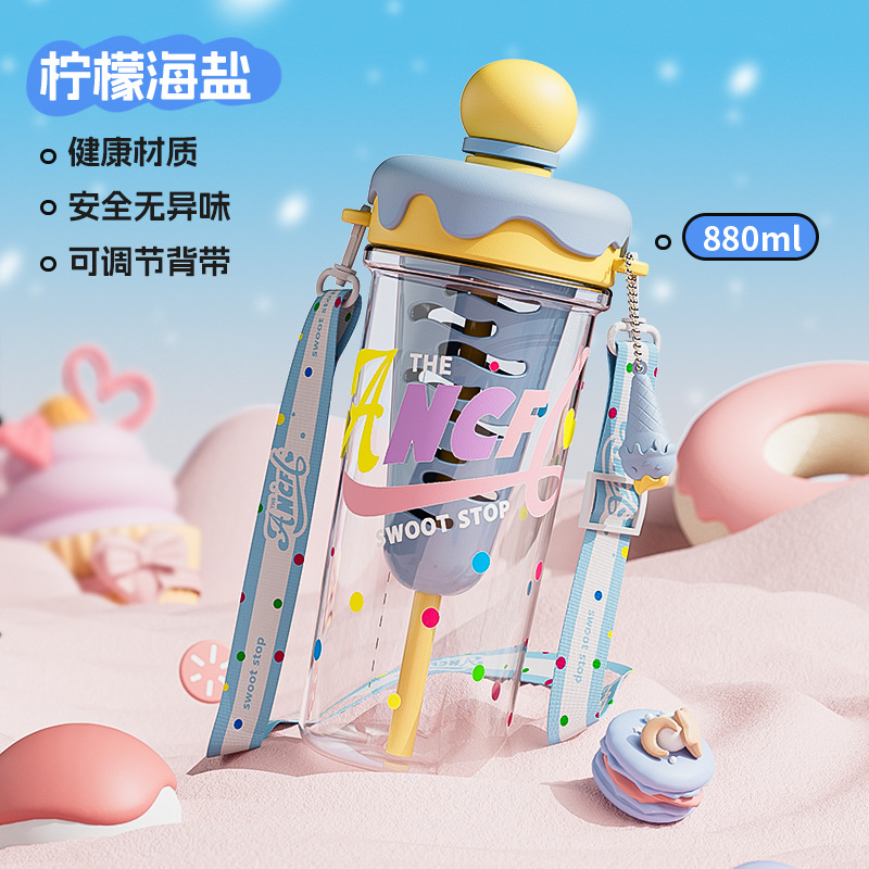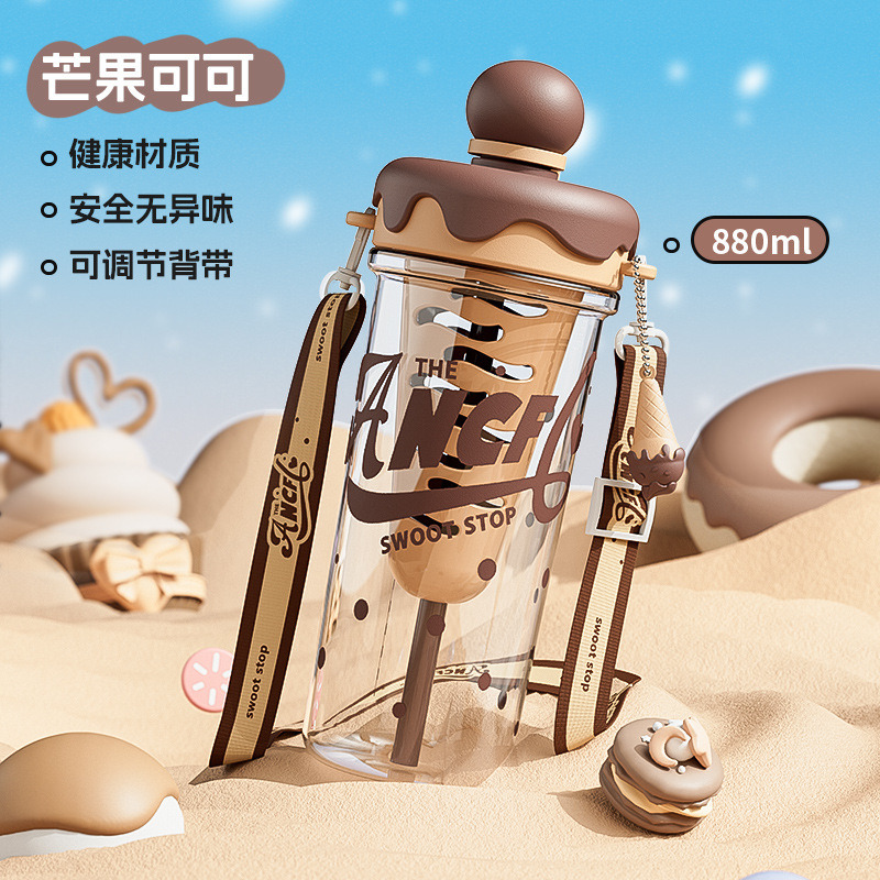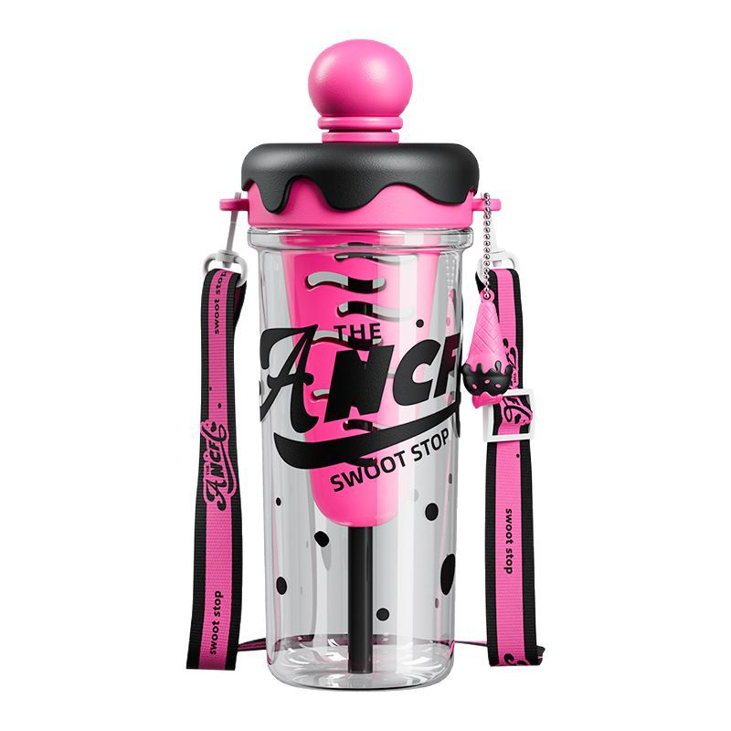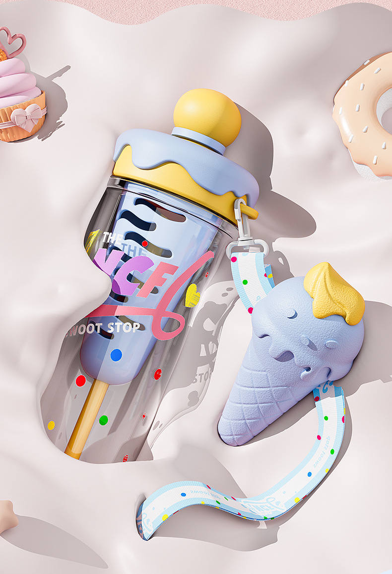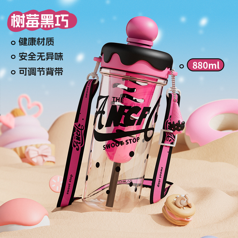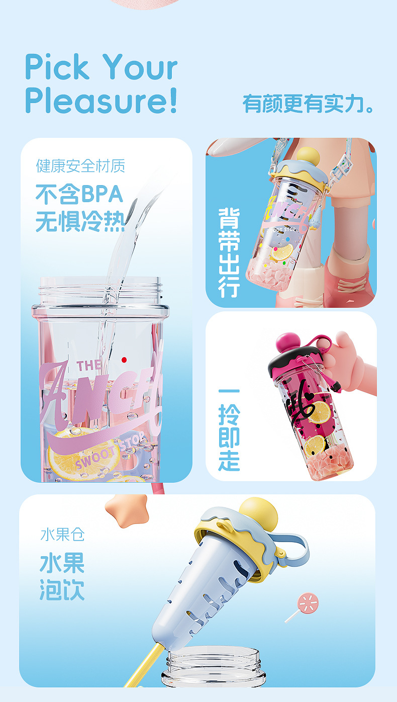 ins风夏日冰淇淋太空水杯大容量便携背带塑料杯茶水分离泡茶杯子