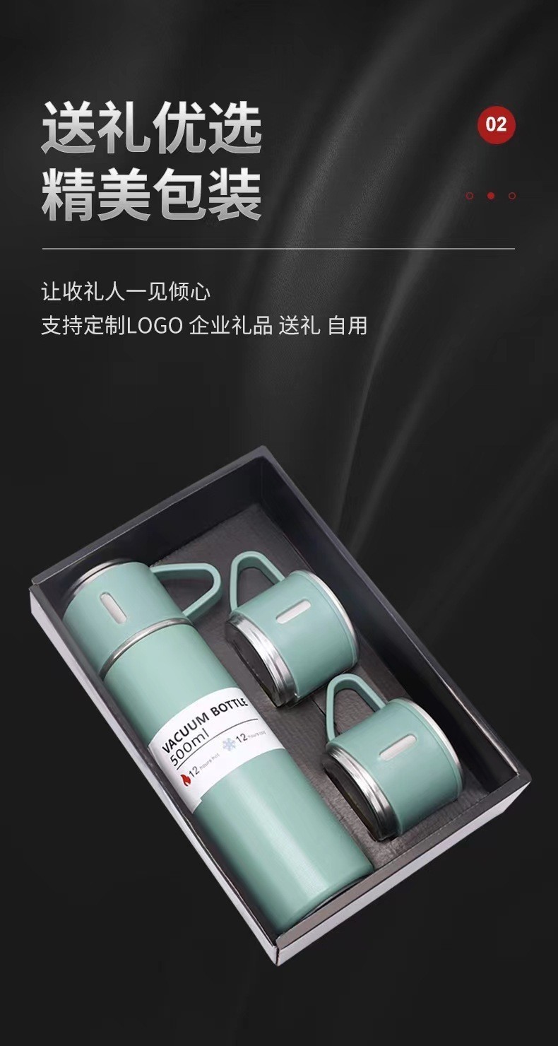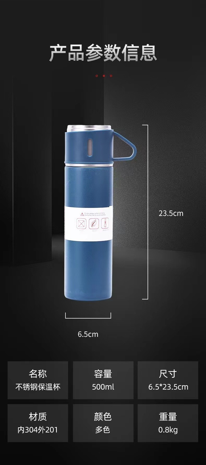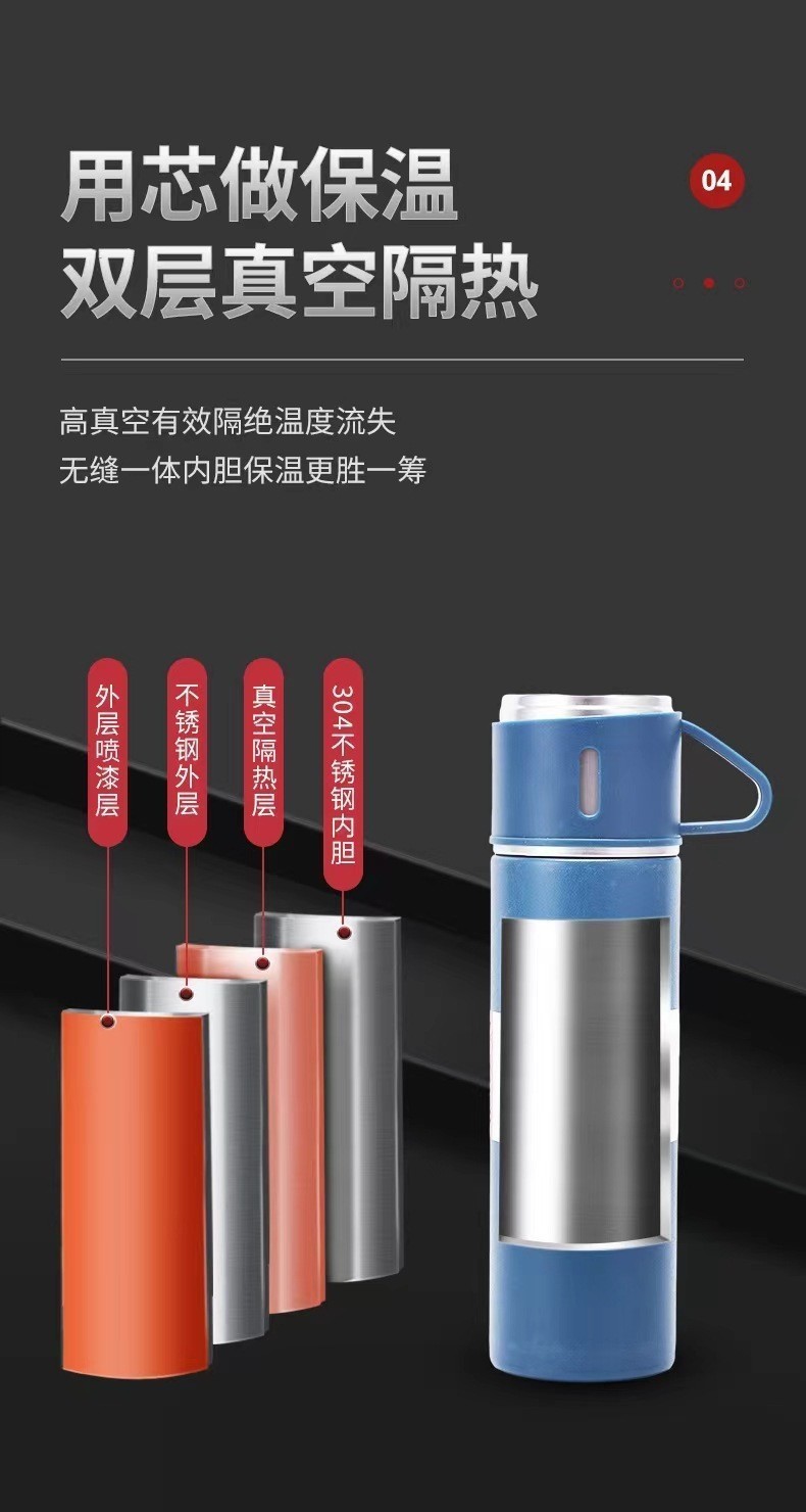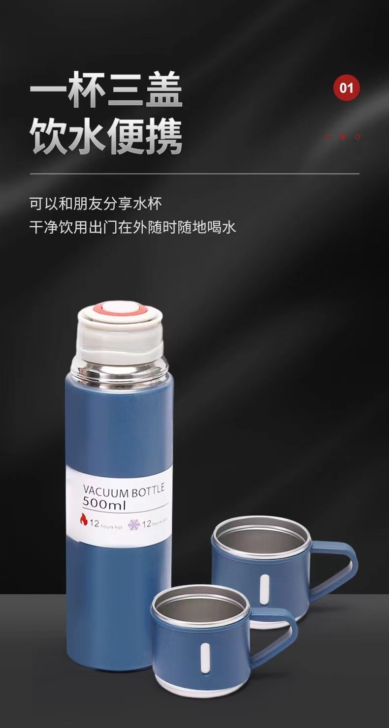 跨境一杯三盖保温杯户外家用高档便携式304不锈钢水杯套装礼品杯