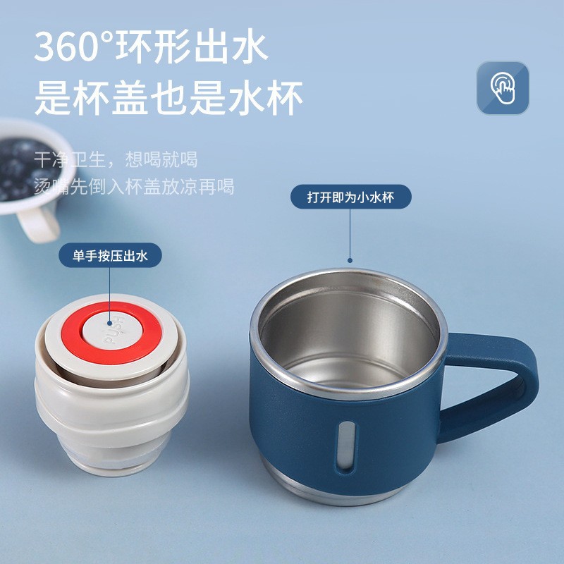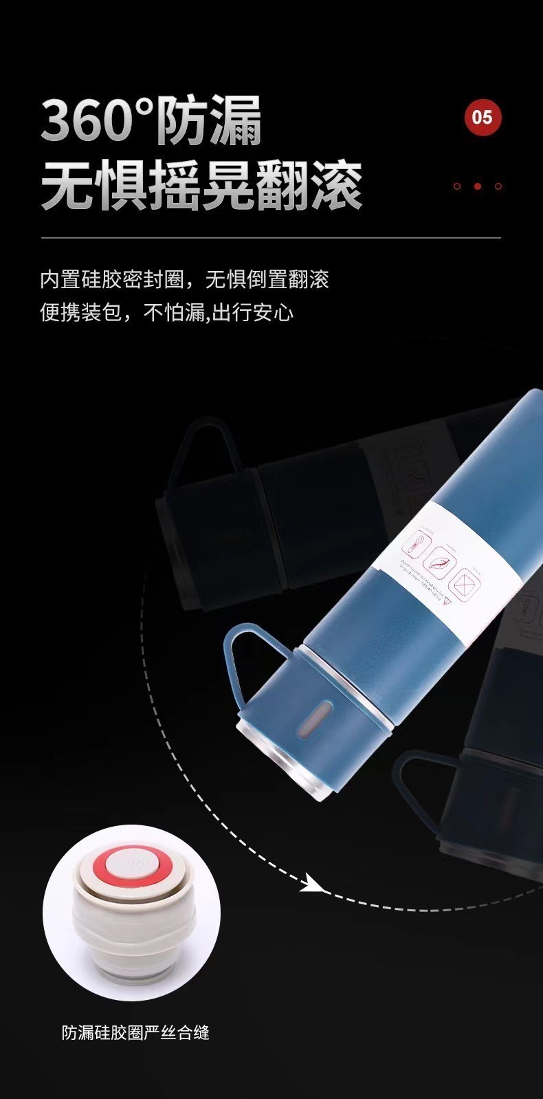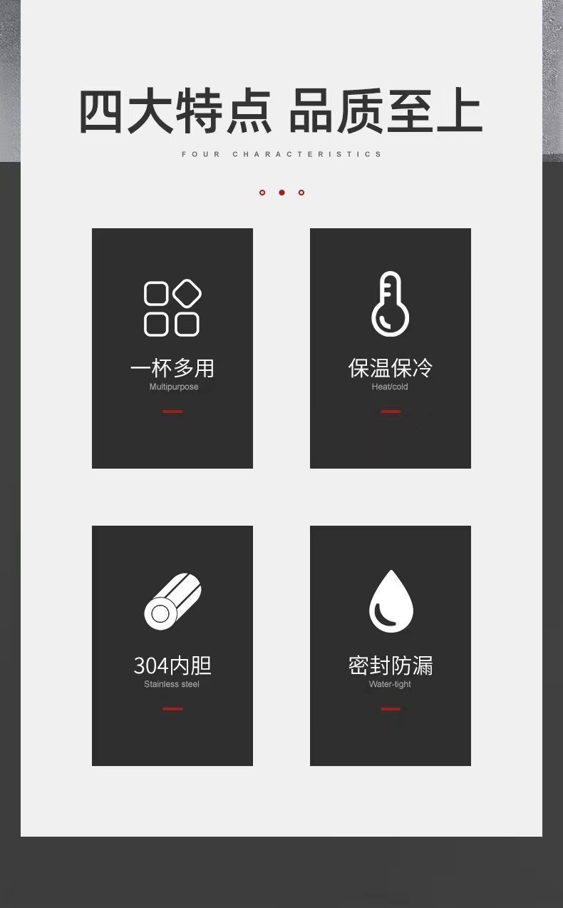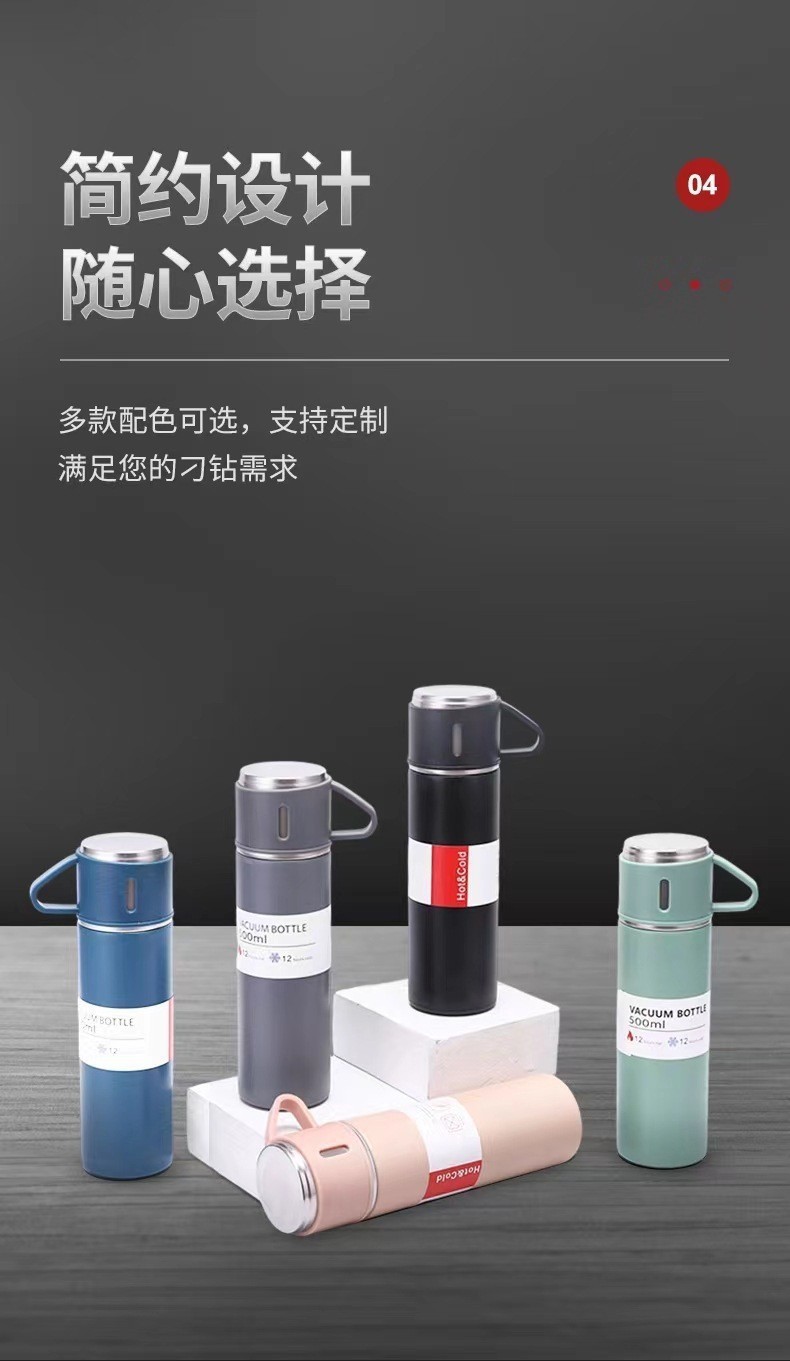 跨境一杯三盖保温杯户外家用高档便携式304不锈钢水杯套装礼品杯