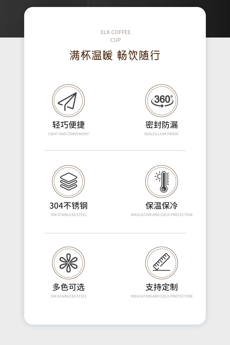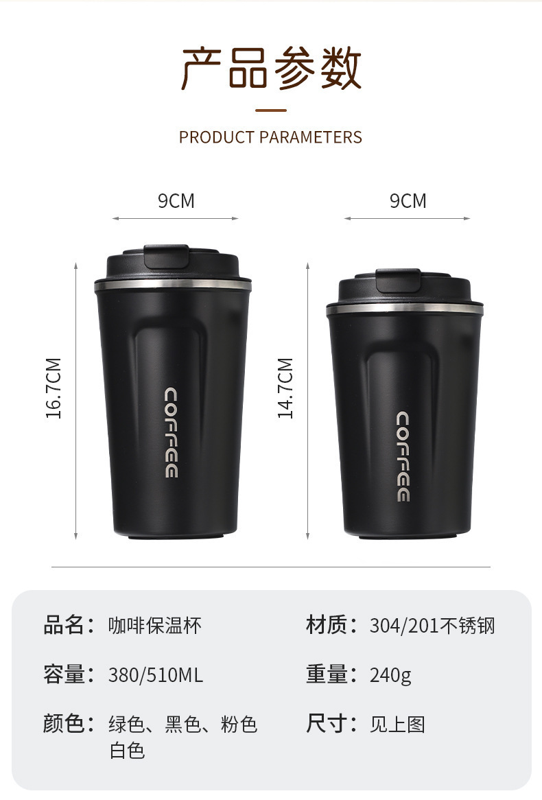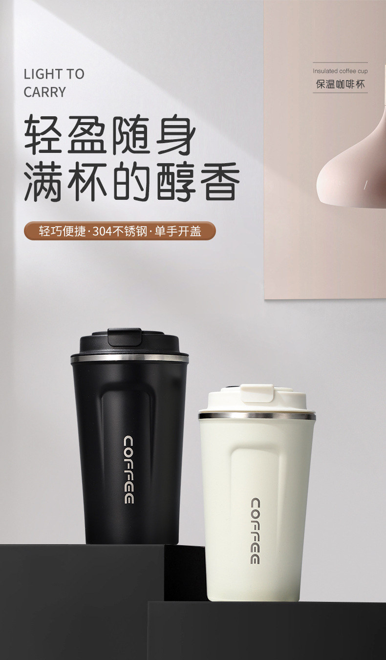 跨境304不锈钢咖啡杯便携保冷杯真空保温杯创意随行水杯定制logo