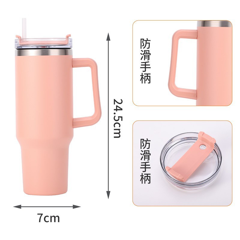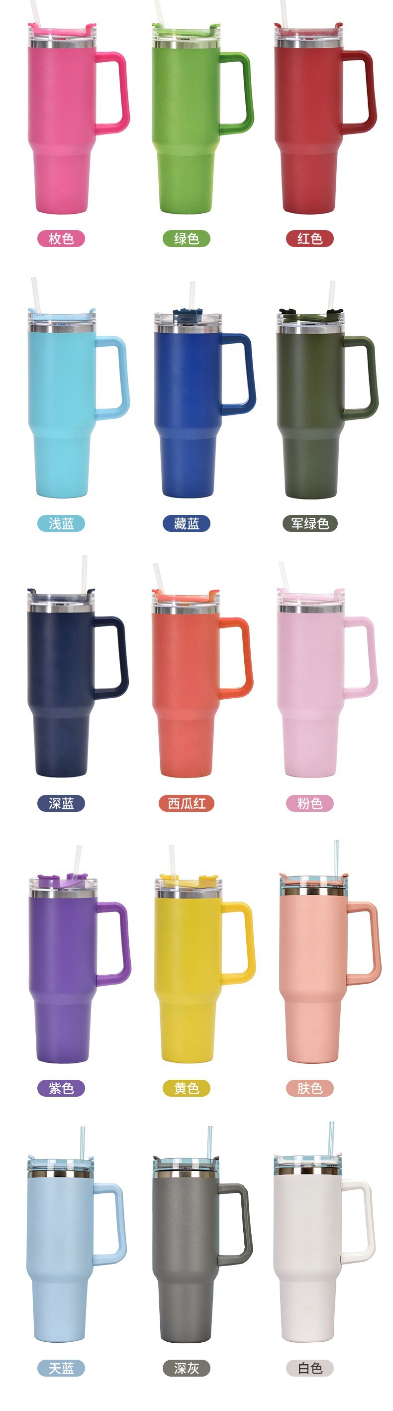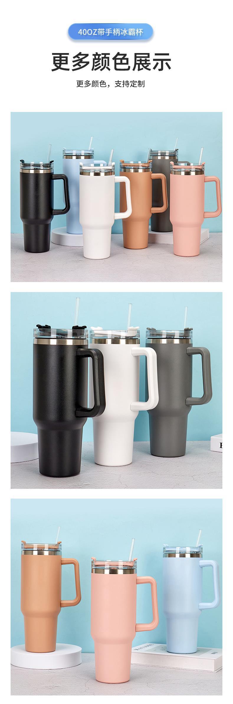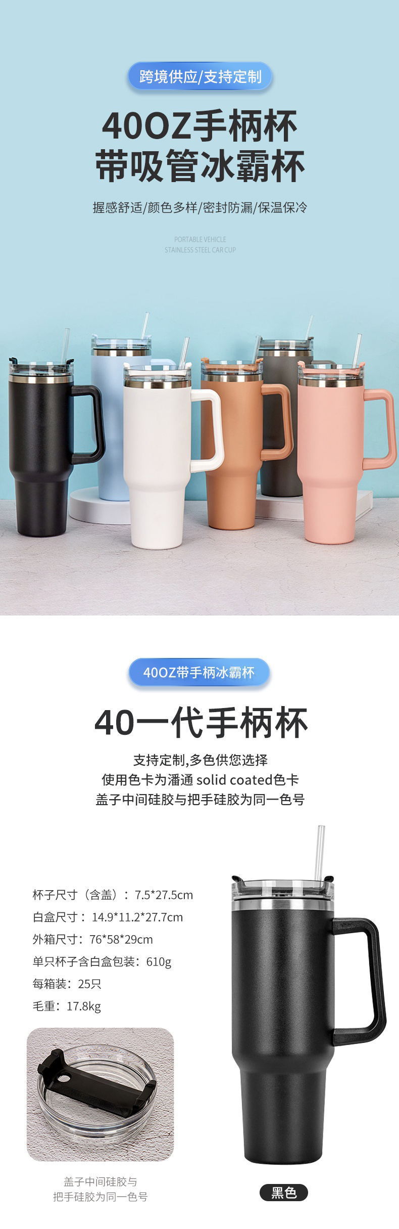 跨境304不锈钢保温杯40OZ带手柄吸管冰霸杯户外车载大容量汽车杯