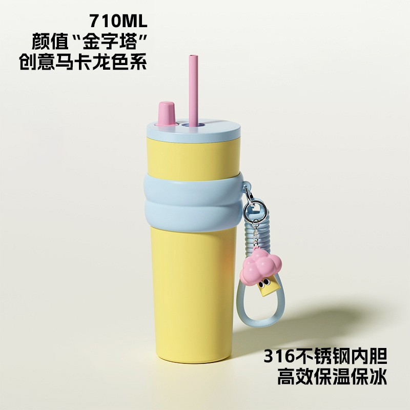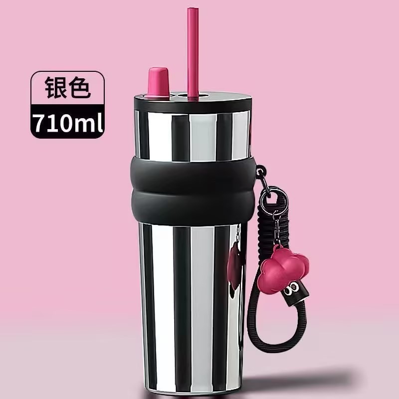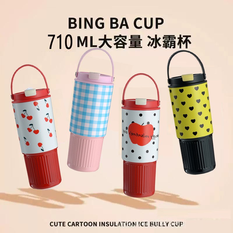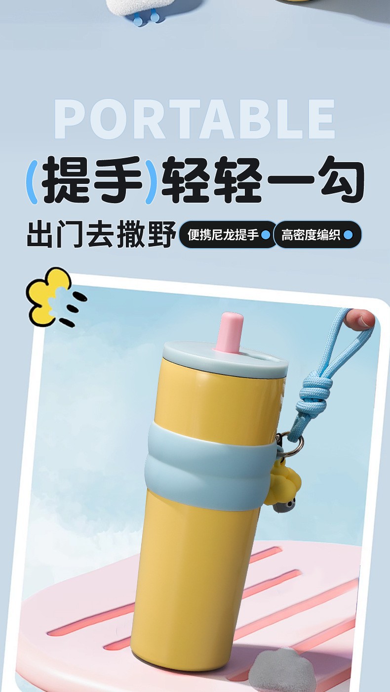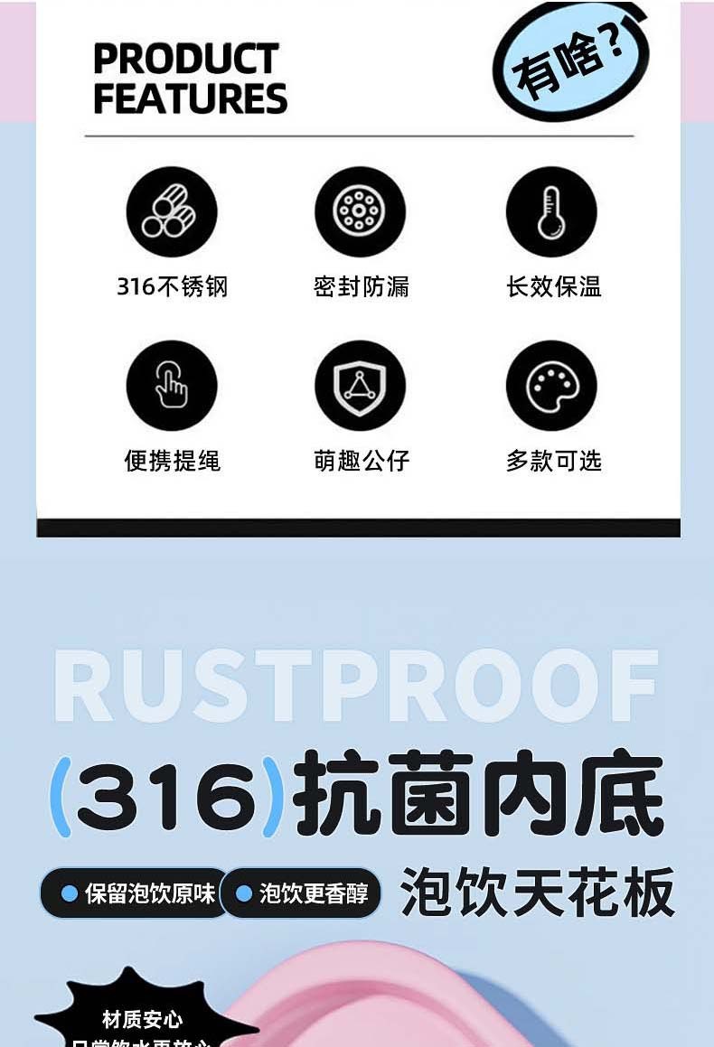 新款公仔冰霸杯大容量带提绳保温杯316不锈钢水杯车载吸管杯定制
