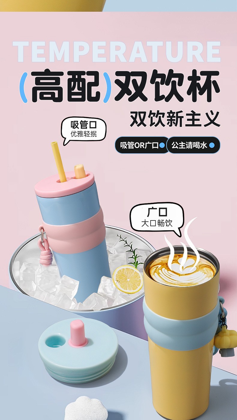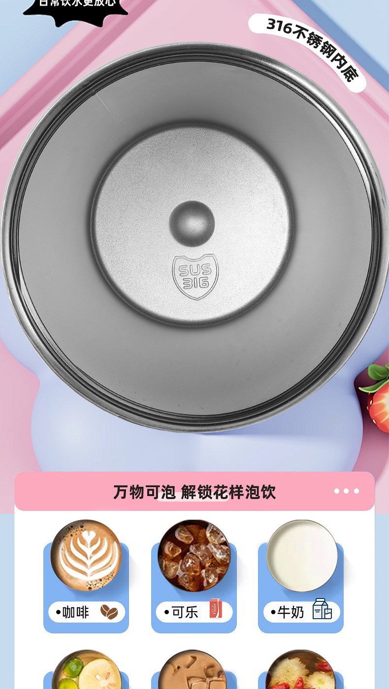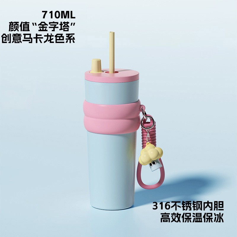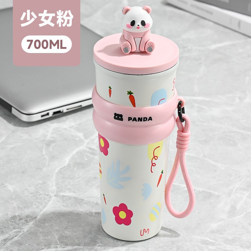 新款公仔冰霸杯大容量带提绳保温杯316不锈钢水杯车载吸管杯定制