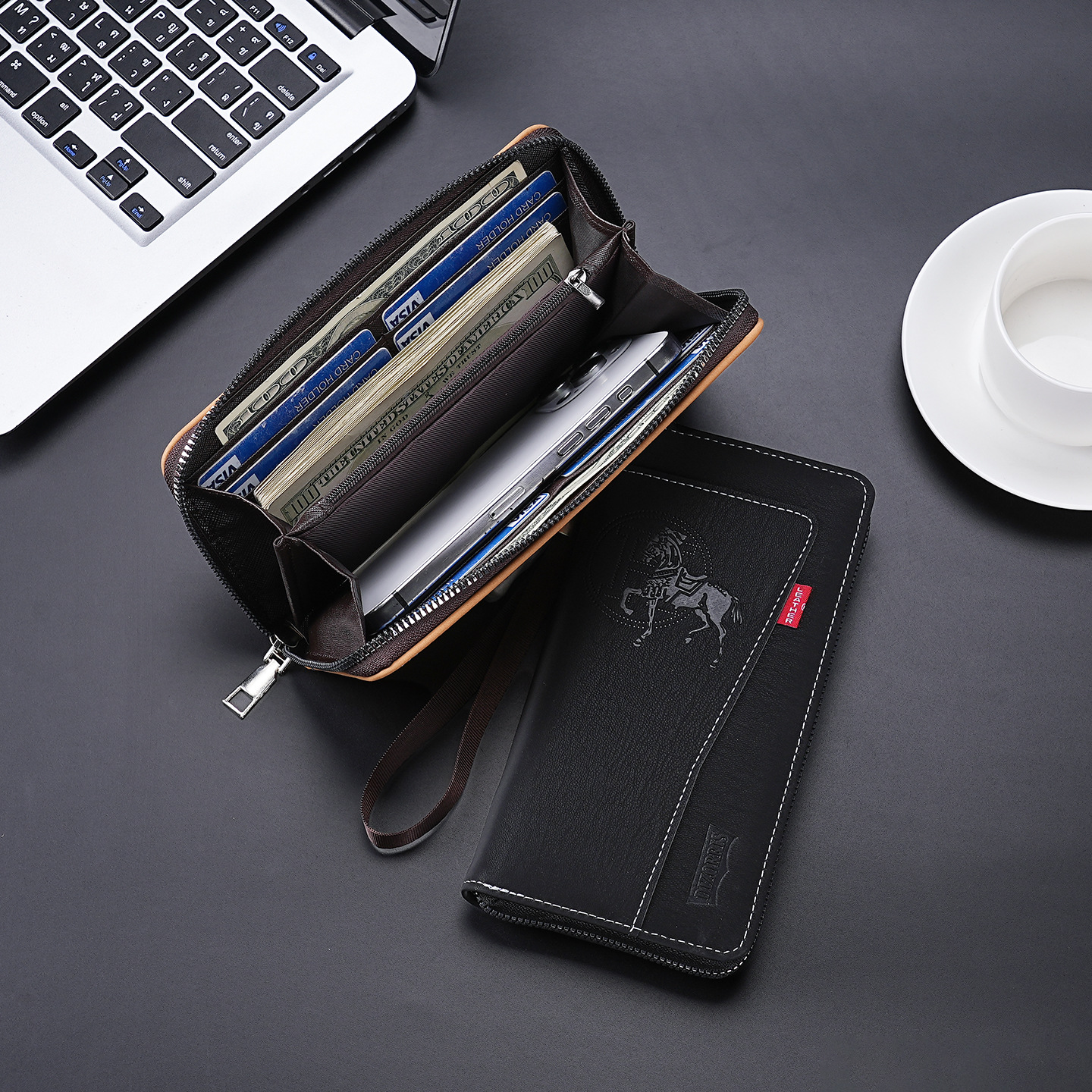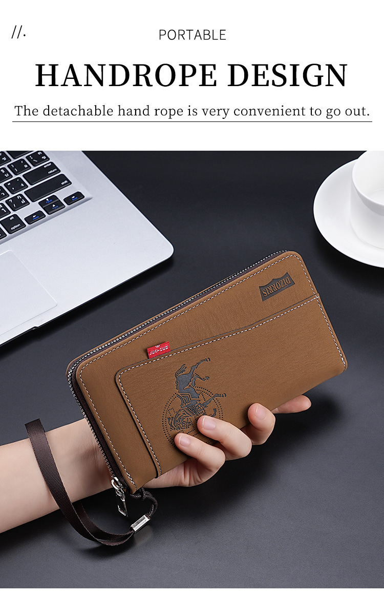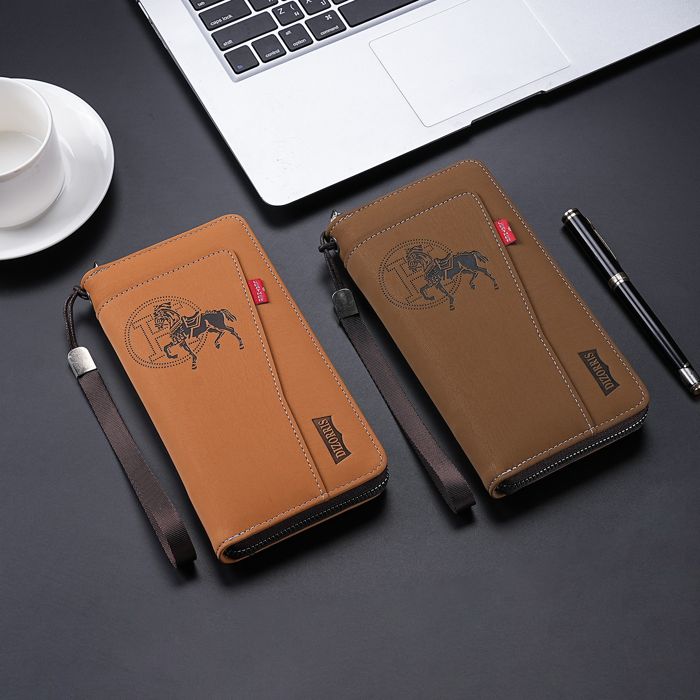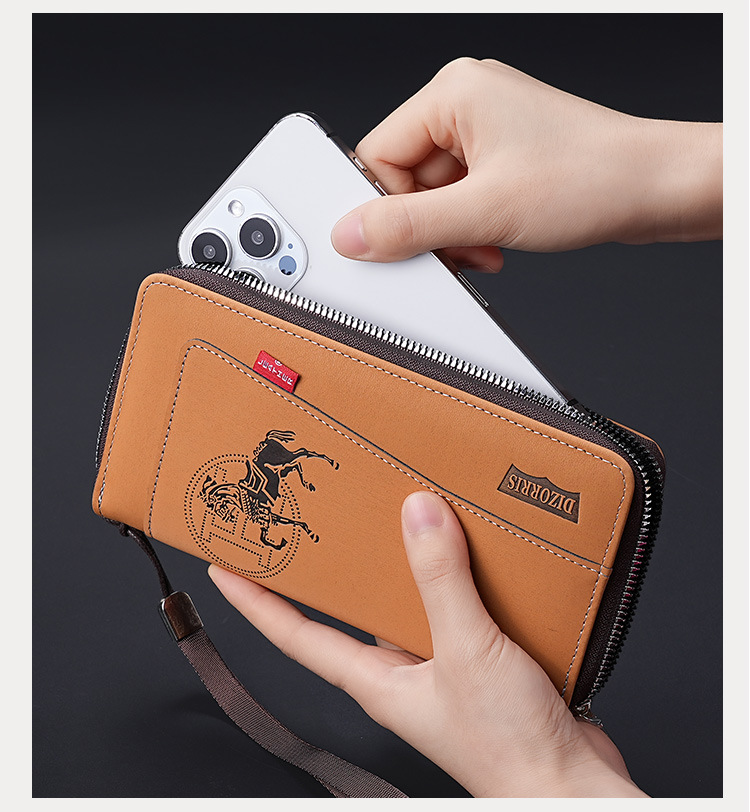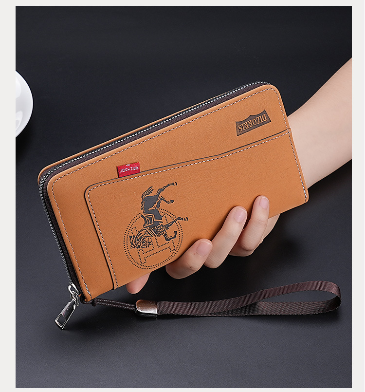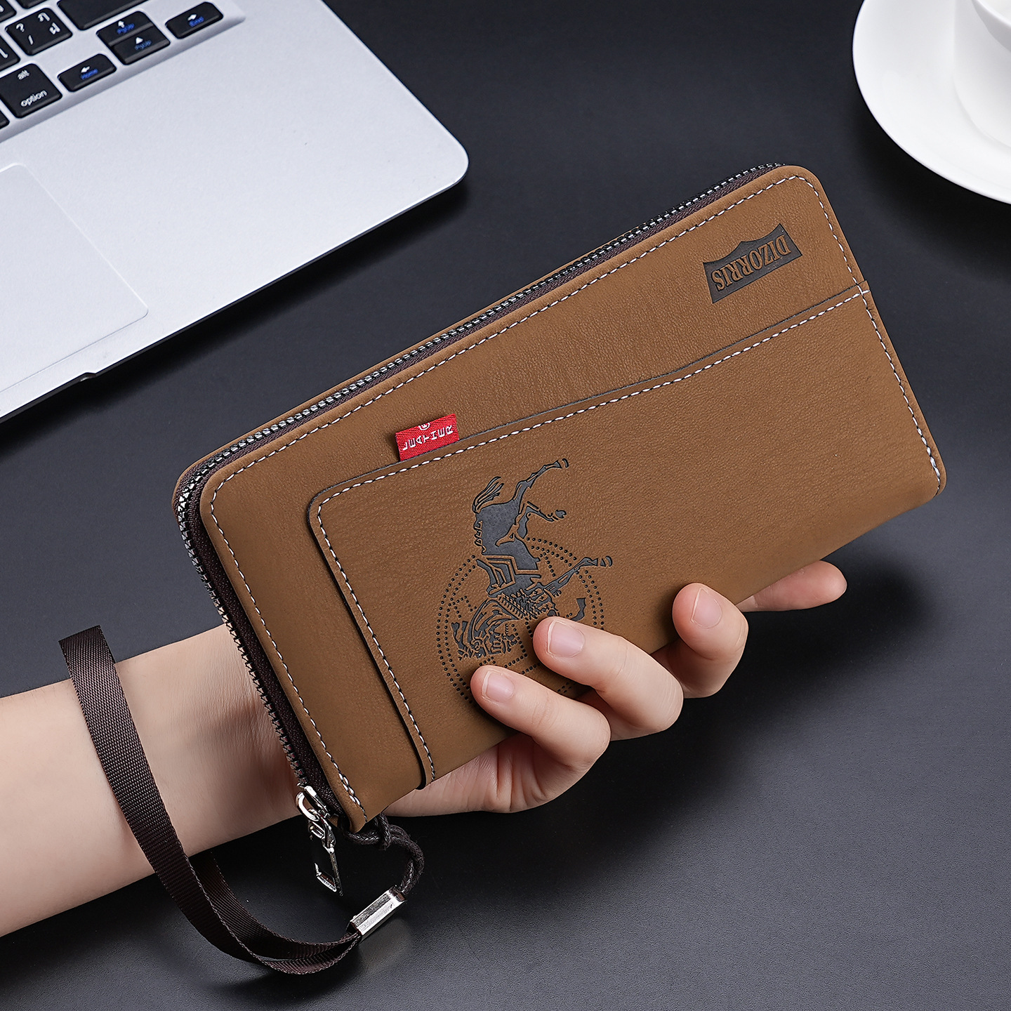 新款疯马皮男士钱包欧美复古风PU拉链包时尚短款卡包零钱袋批发
