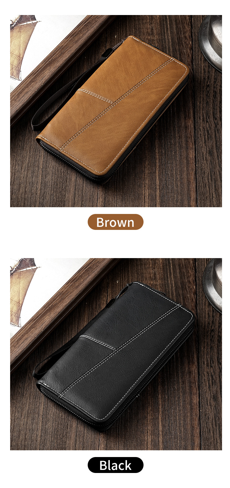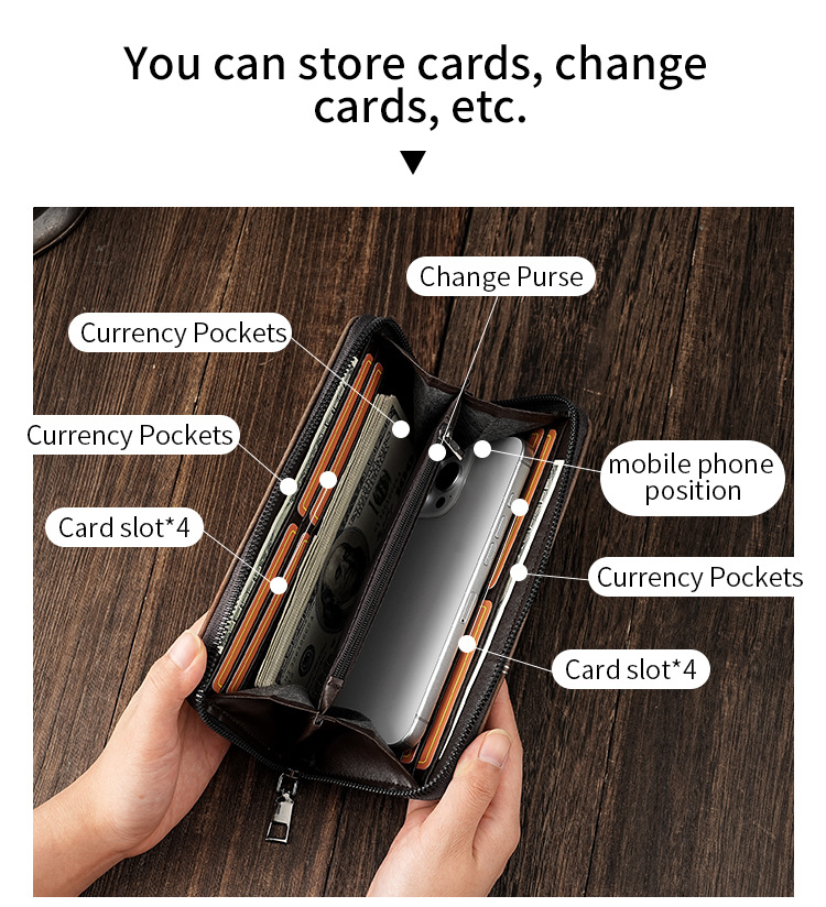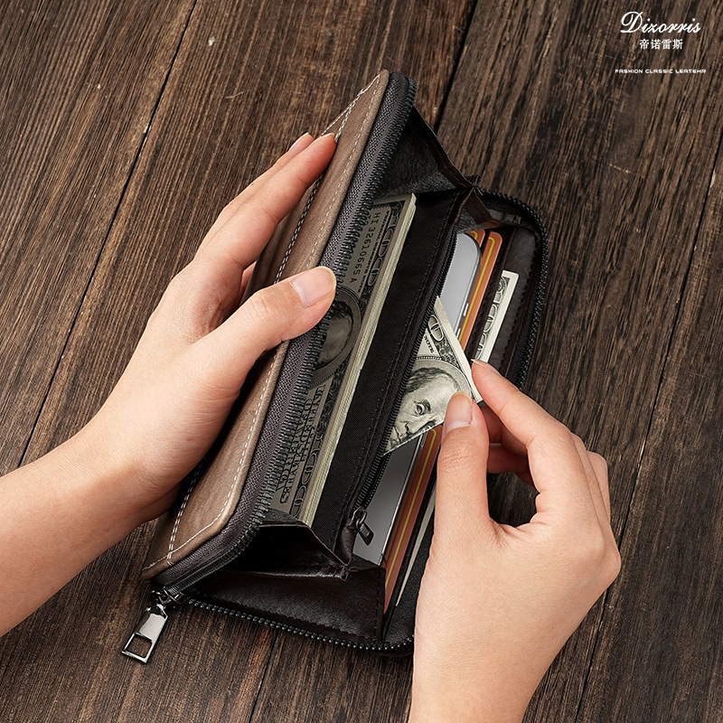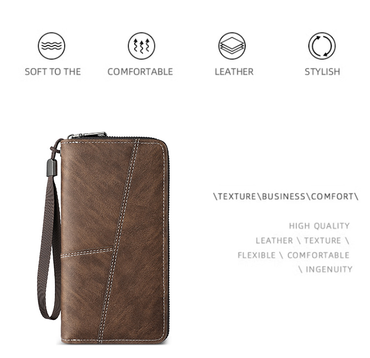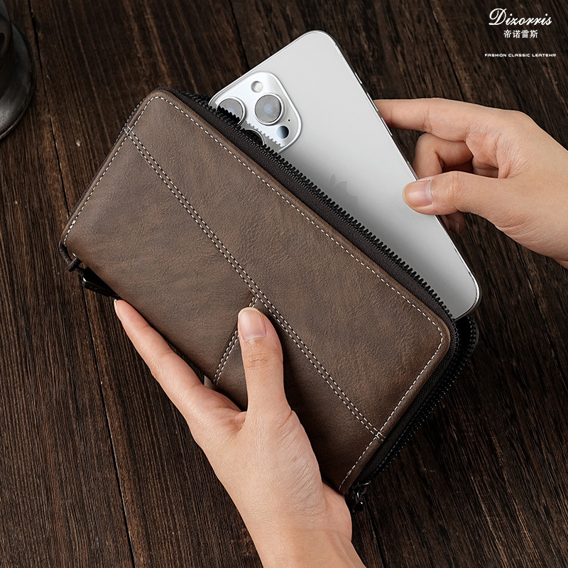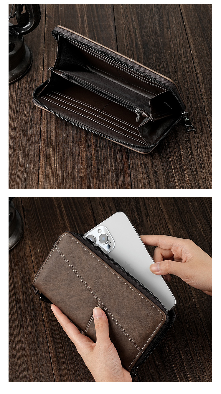 厂家批发男士钱包长款手机包多卡位大容量拉链皮夹便携卡包男钱夹