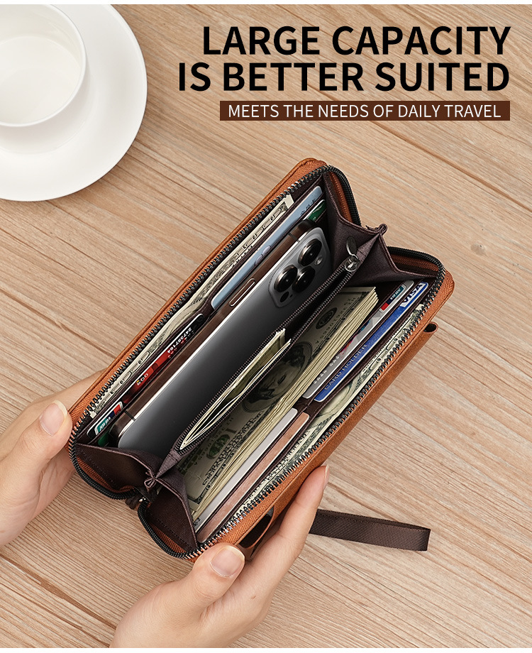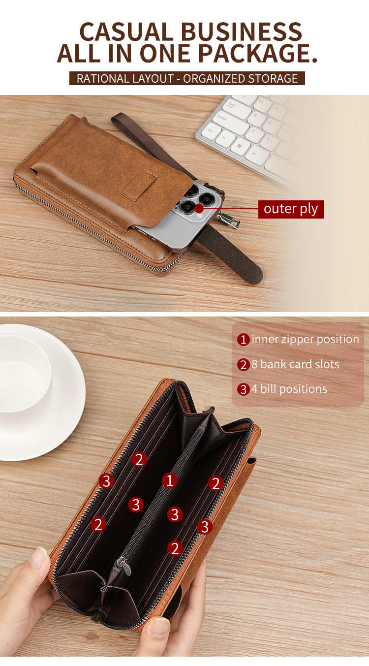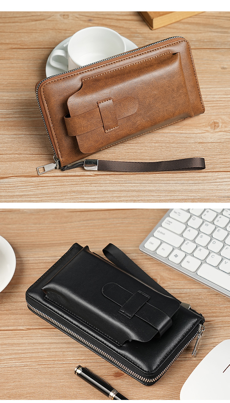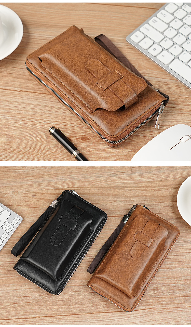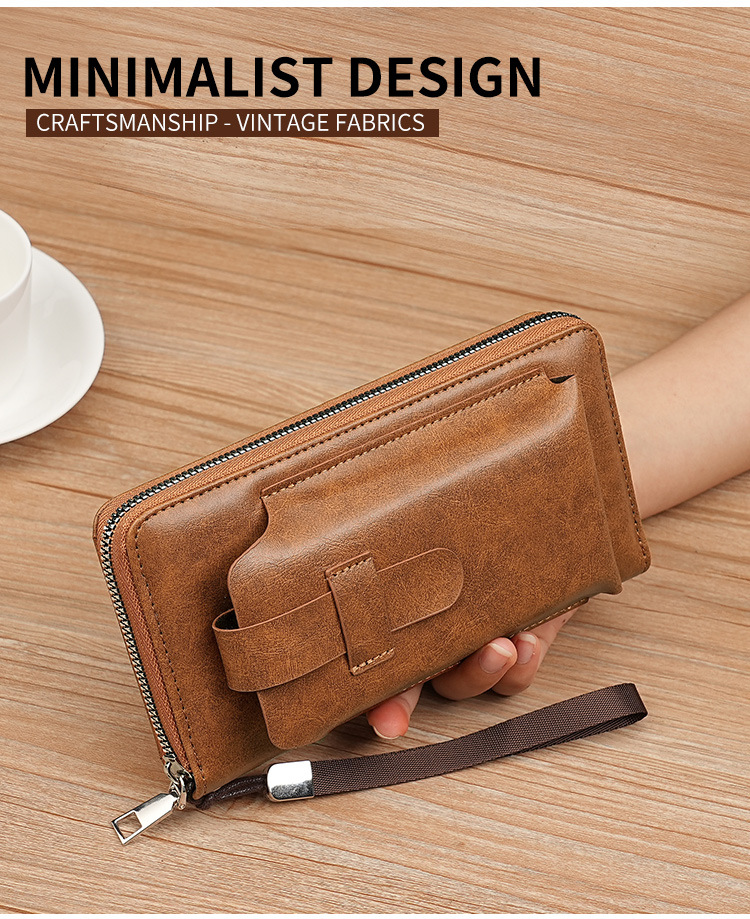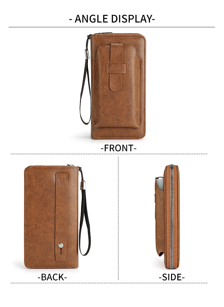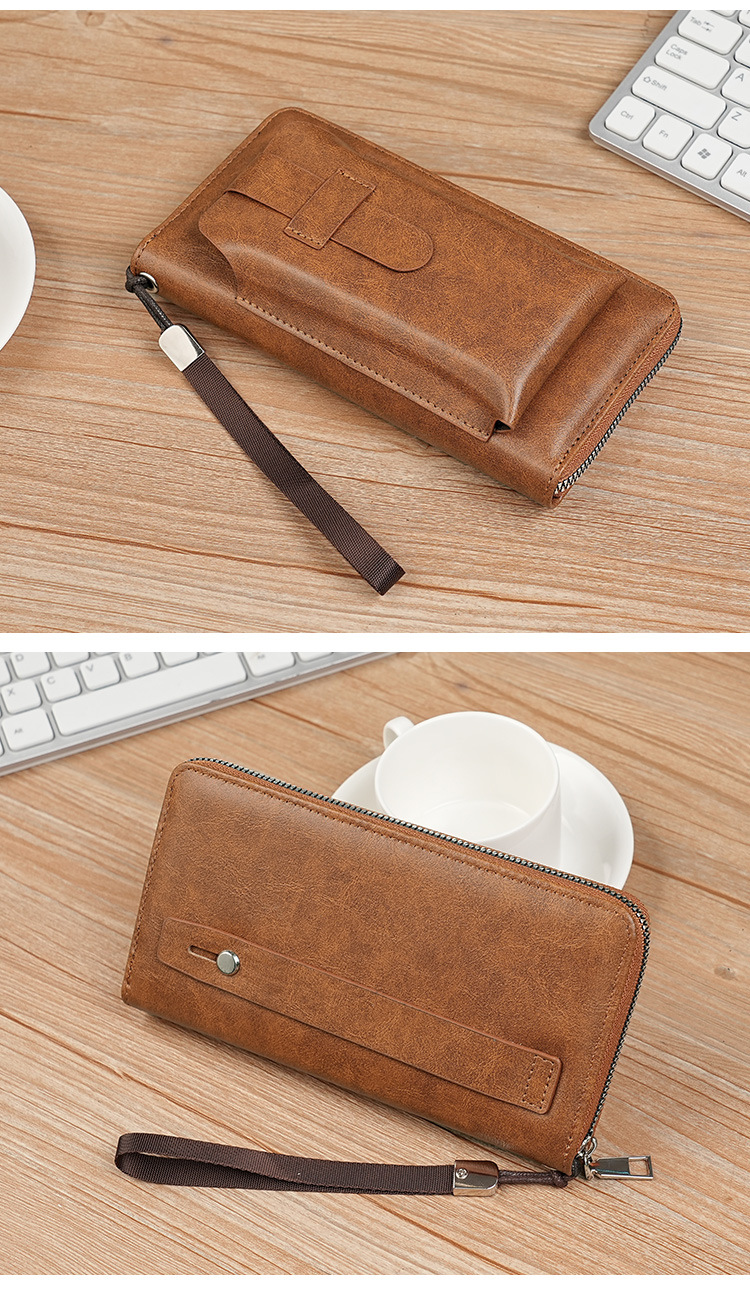 男士长款钱包商务跨境手拿包男pu多卡位钱夹大容量便携手机包批发
