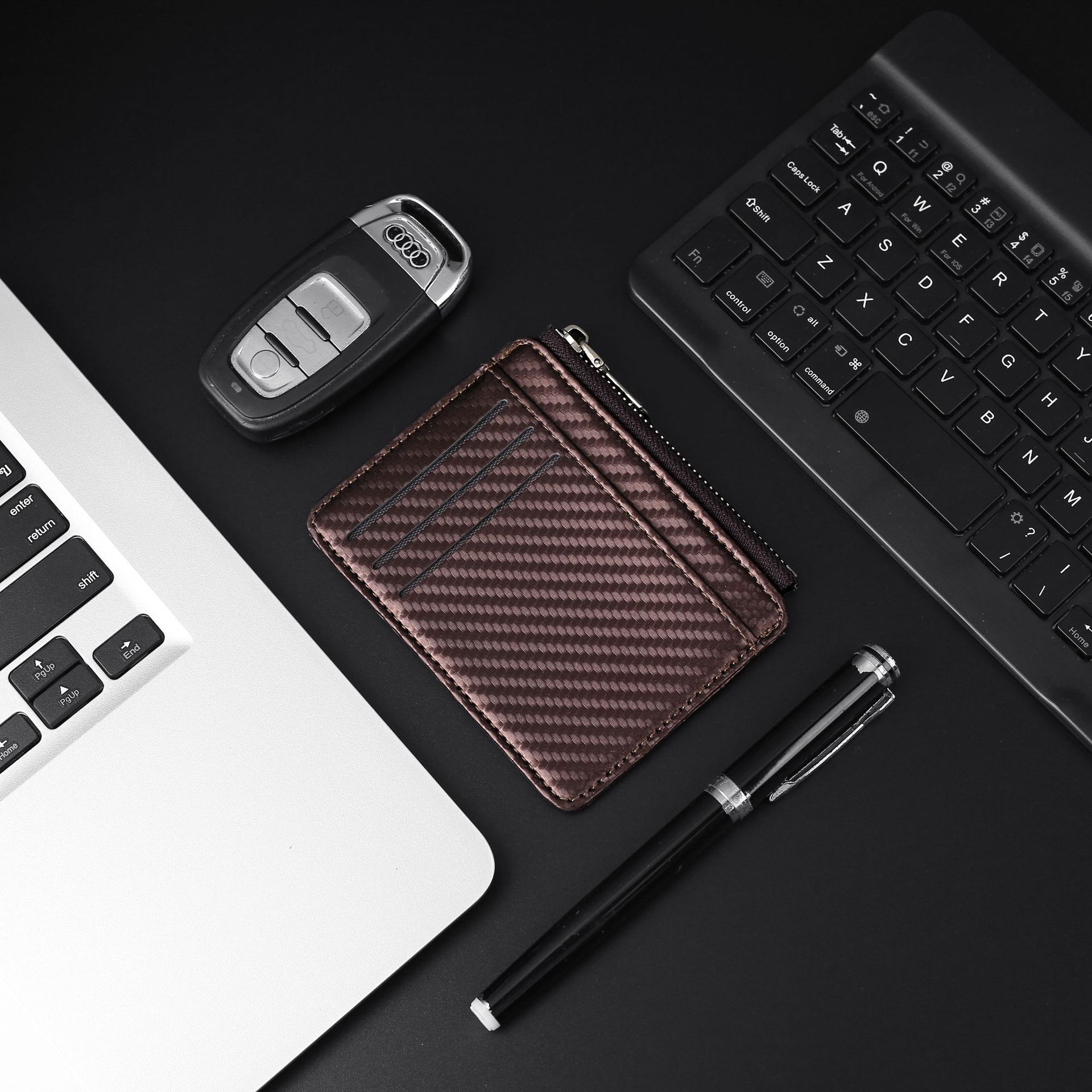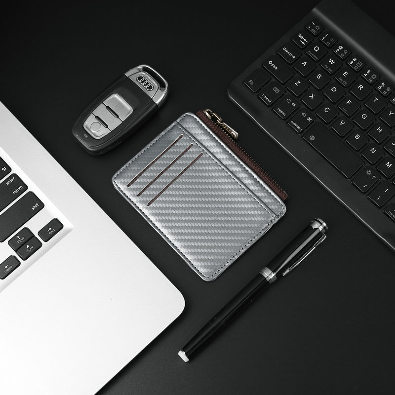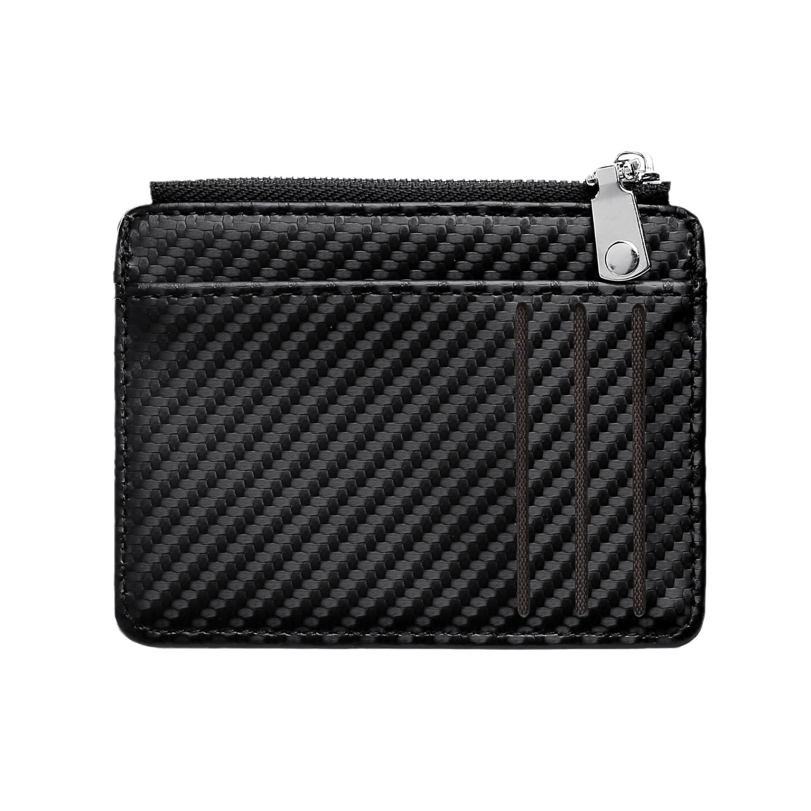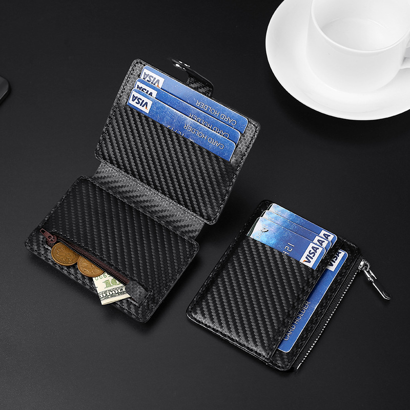 亚马逊新款钱夹碳纤维纹证件卡套商条PU材质真皮质感拉链男士卡包