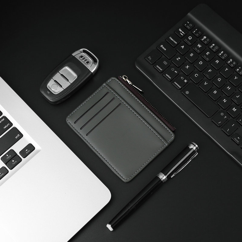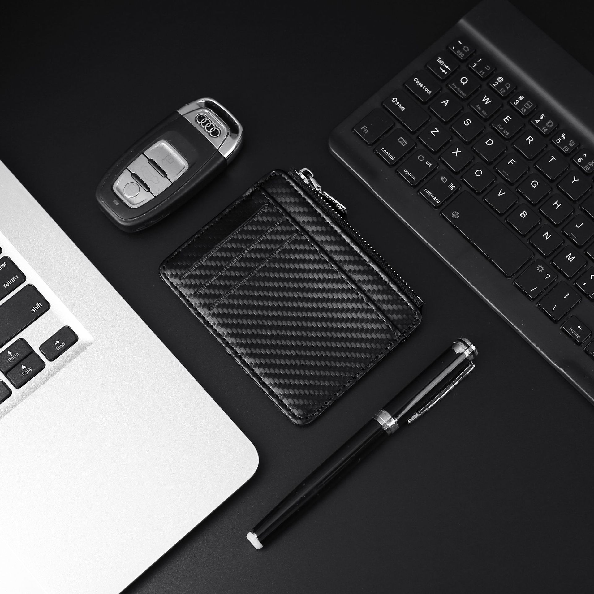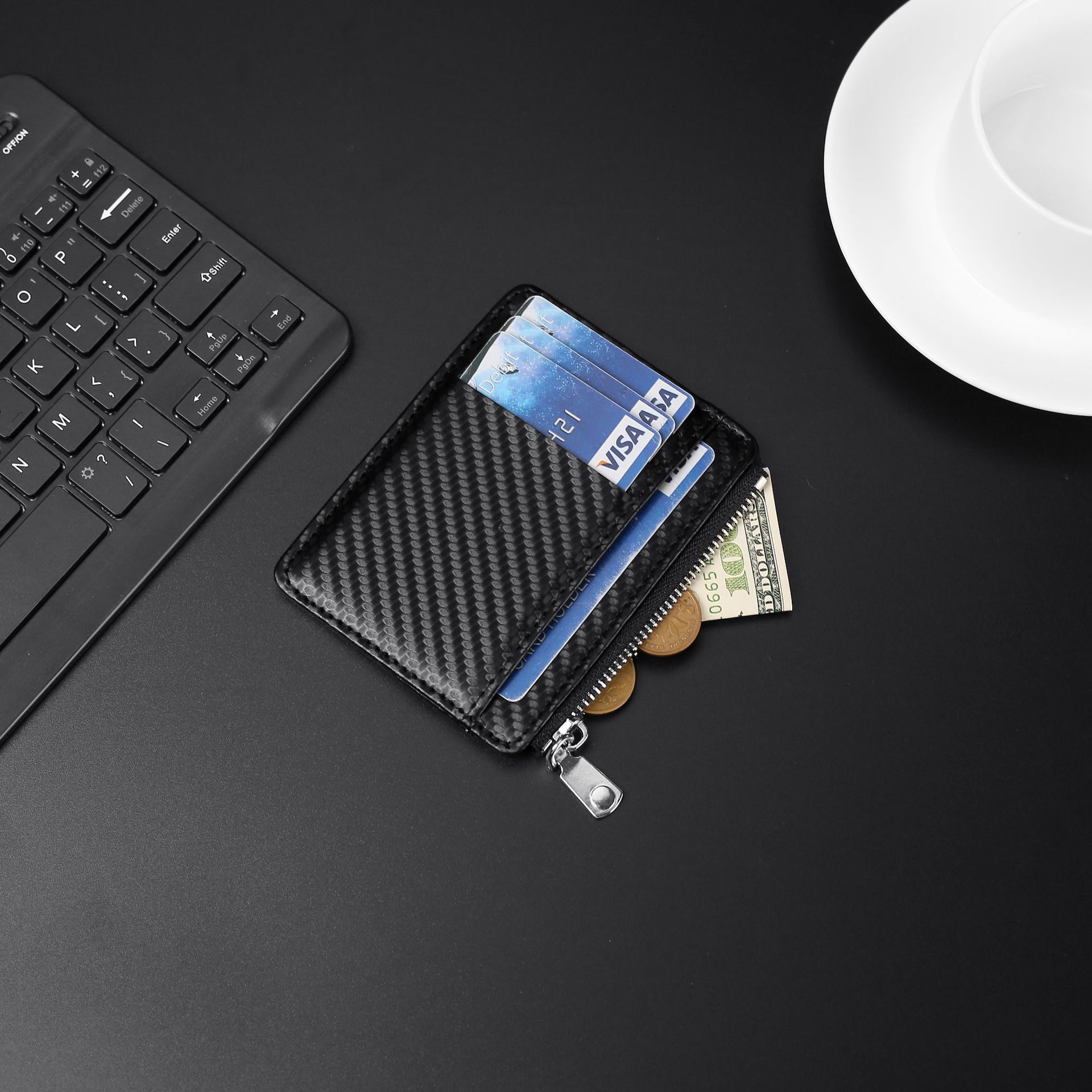亚马逊新款钱夹碳纤维纹证件卡套商条PU材质真皮质感拉链男士卡包