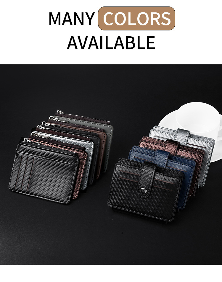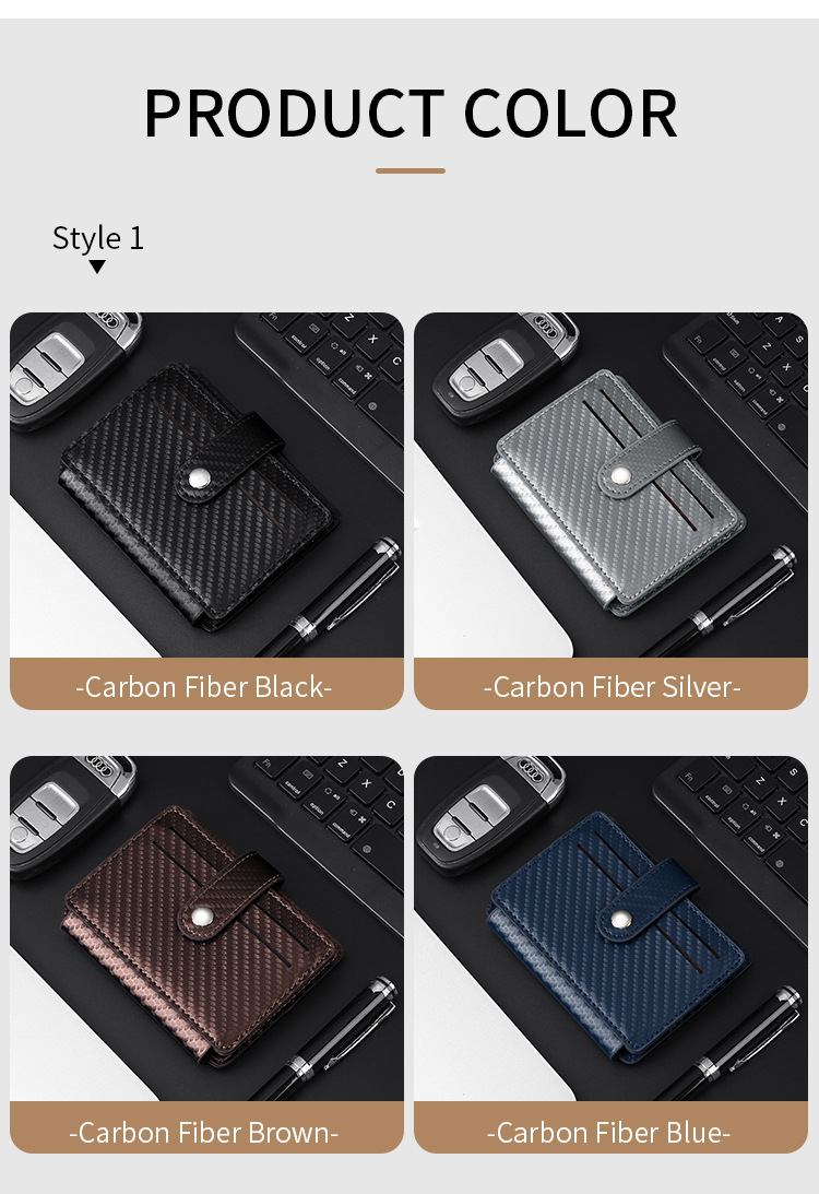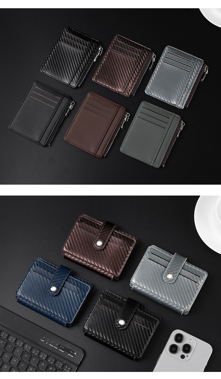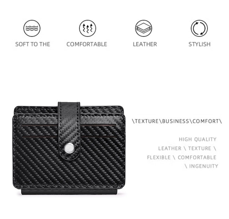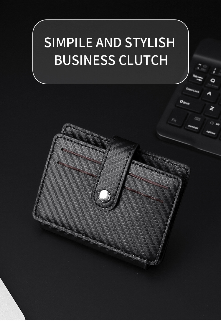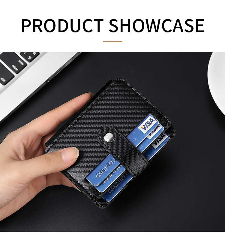 亚马逊新款钱夹碳纤维纹证件卡套商务PU材质真皮质感两接搭扣款式