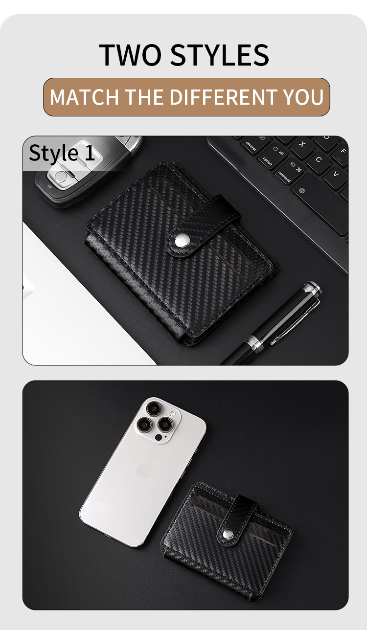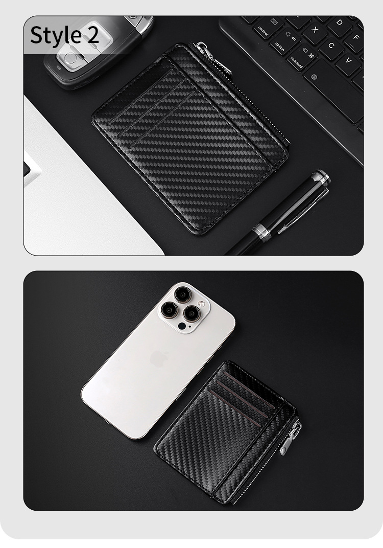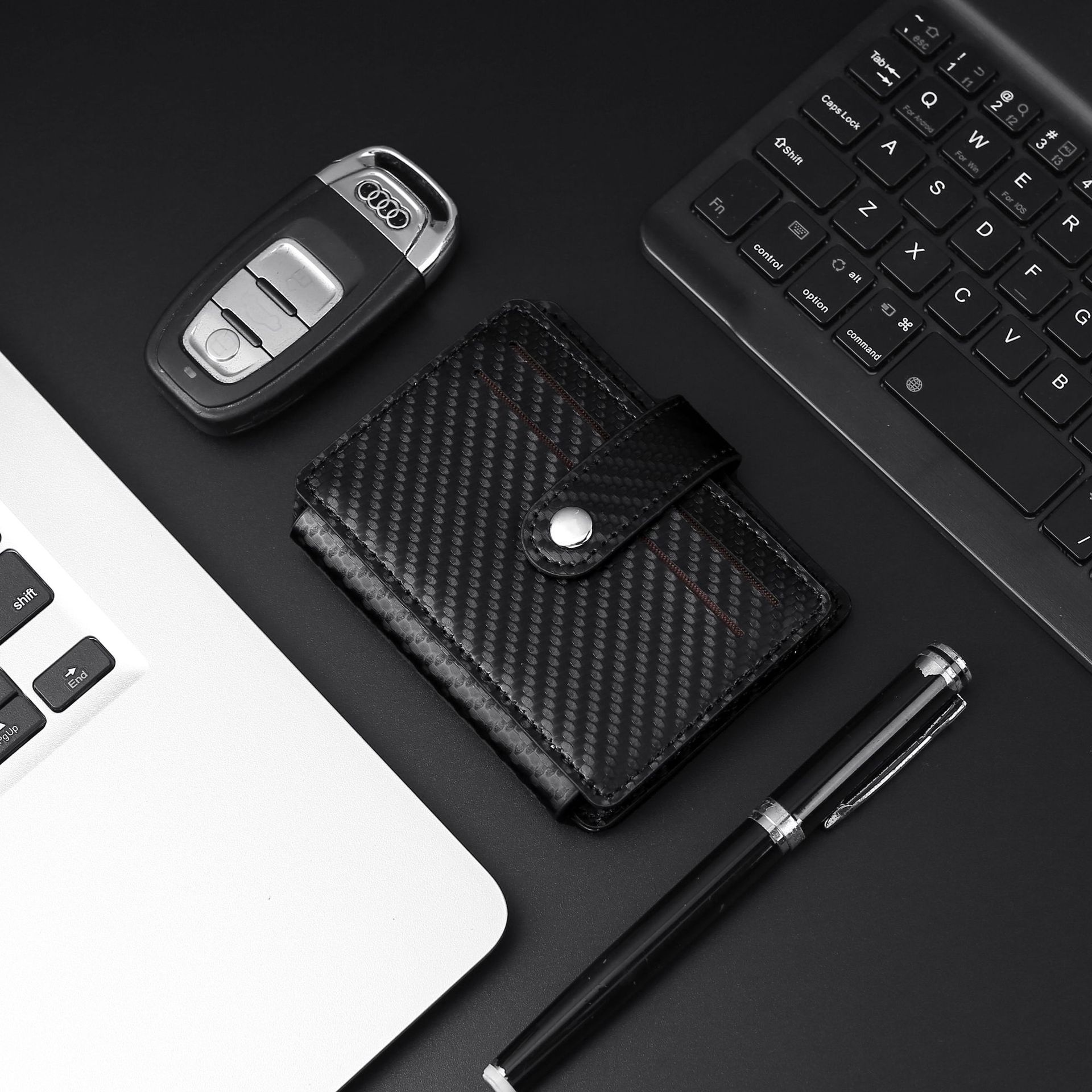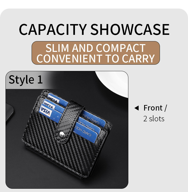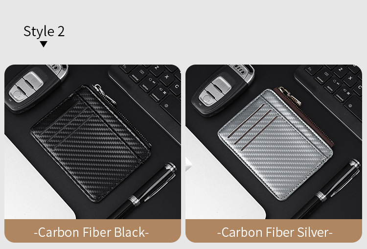 亚马逊新款钱夹碳纤维纹证件卡套商务PU材质真皮质感两接搭扣款式