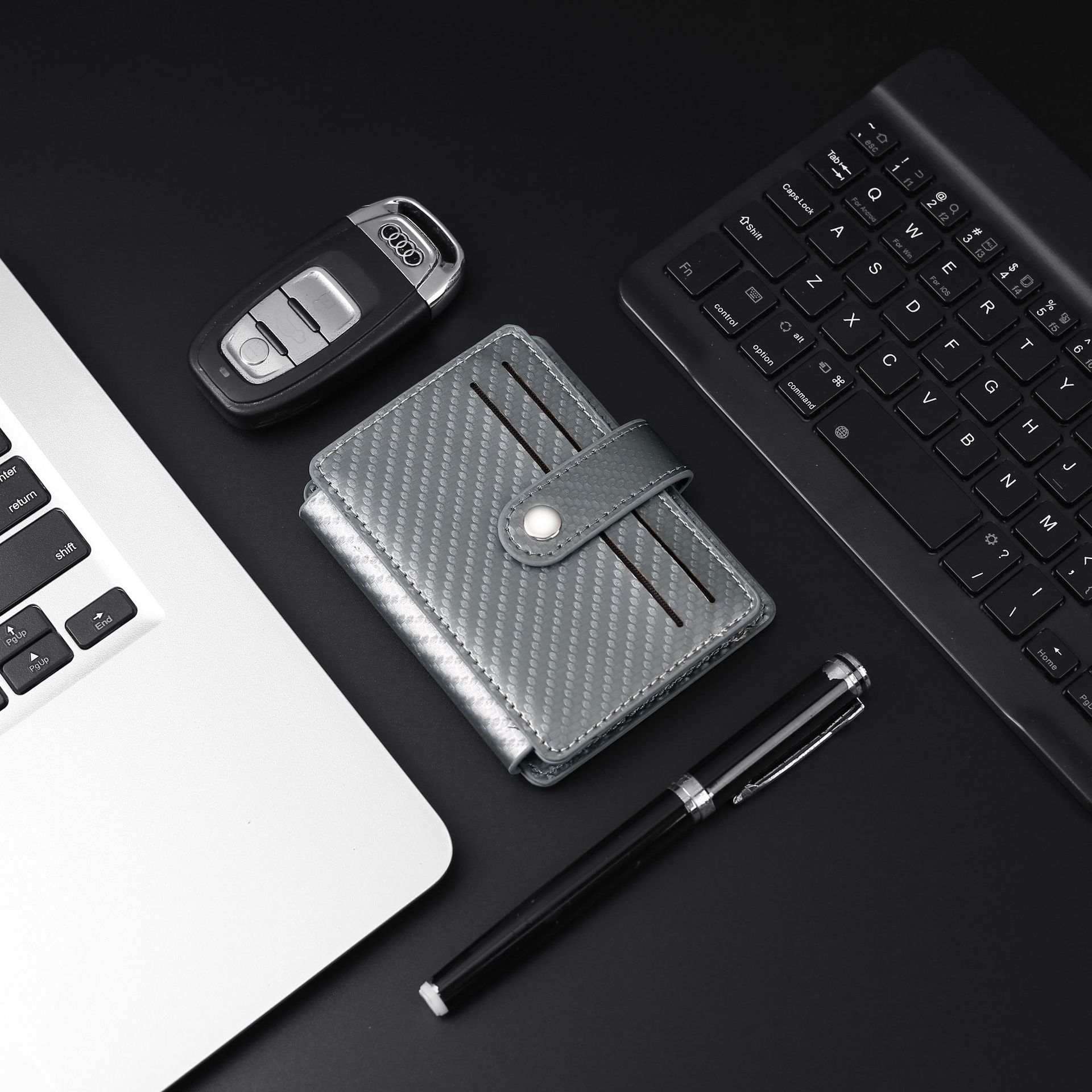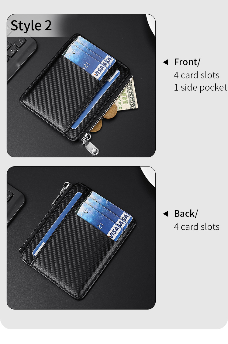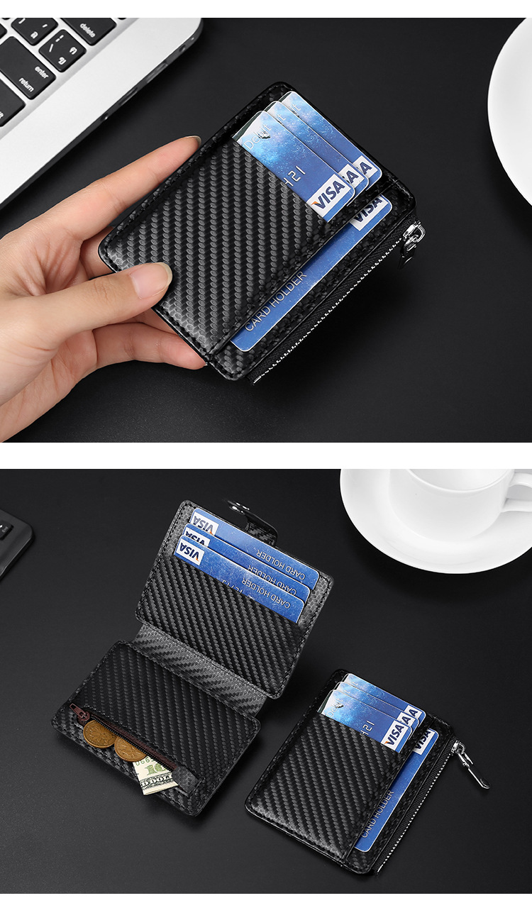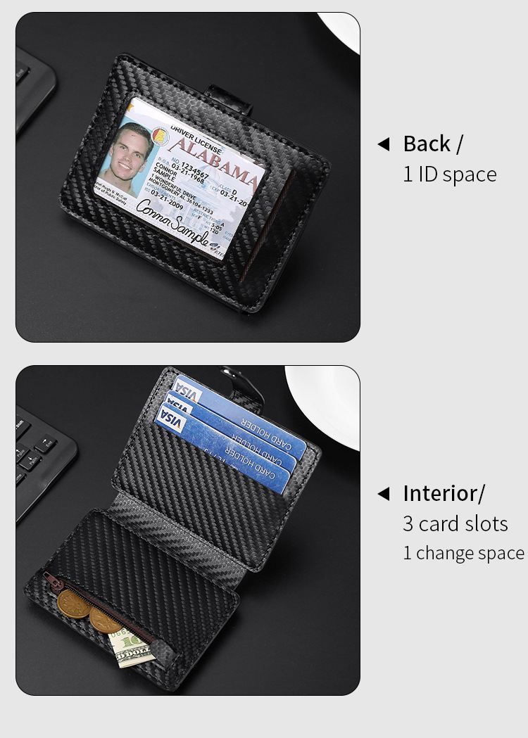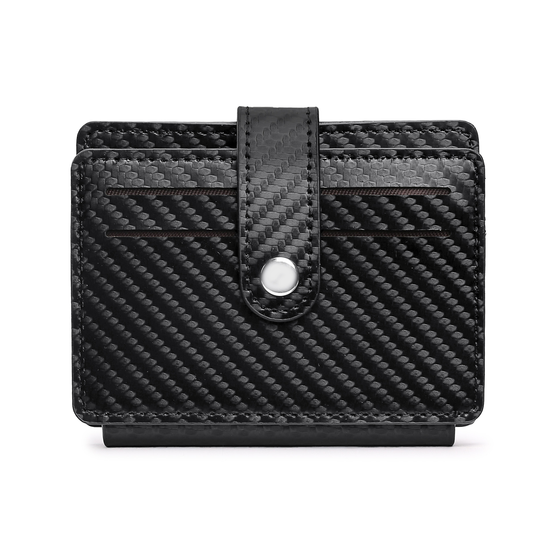 亚马逊新款钱夹碳纤维纹证件卡套商务PU材质真皮质感两接搭扣款式