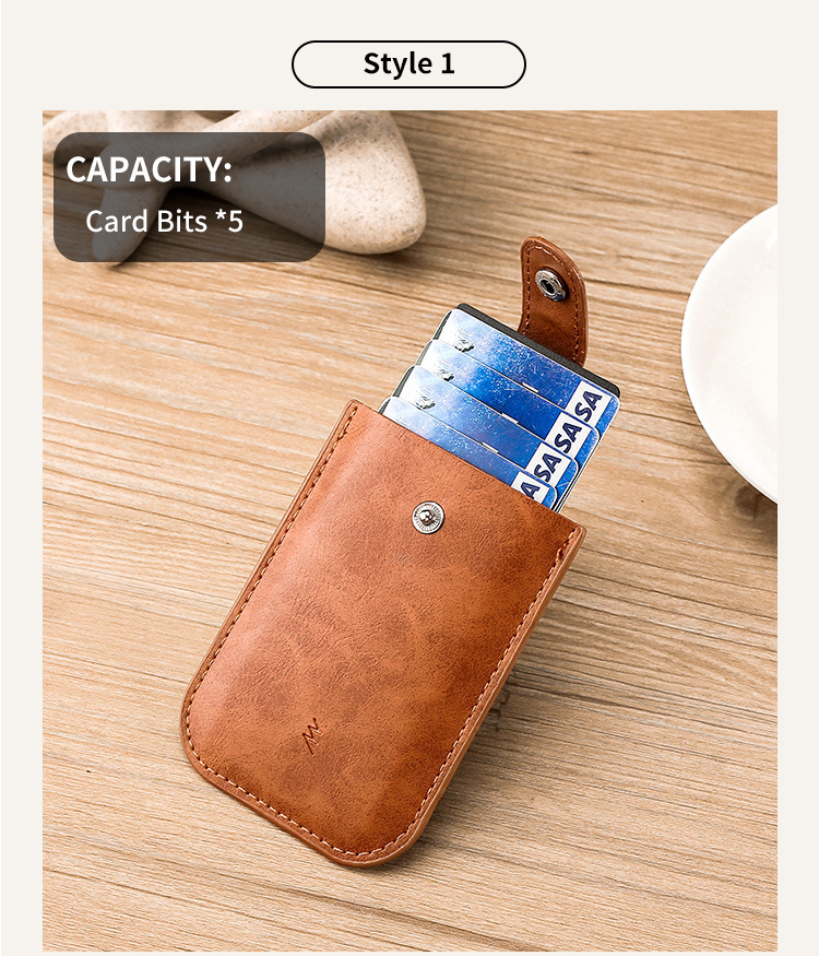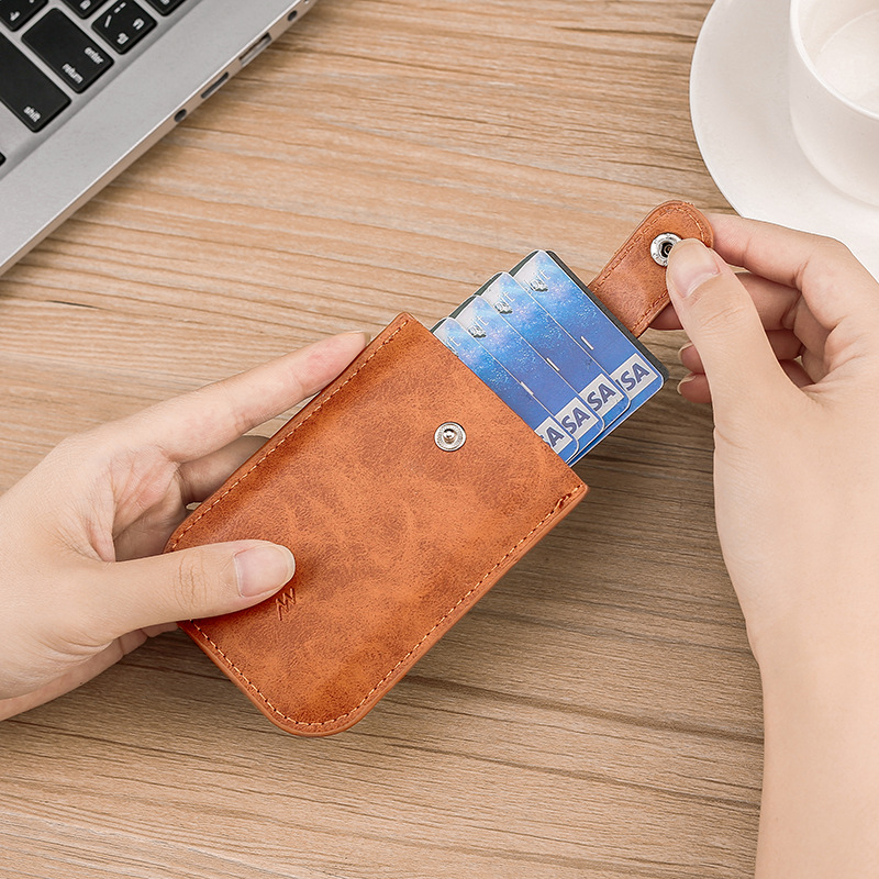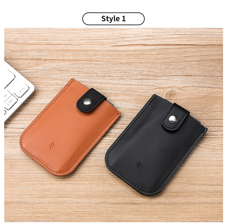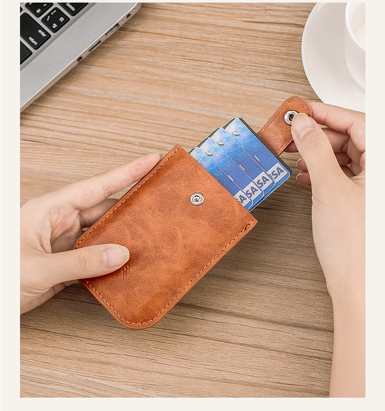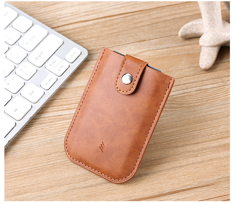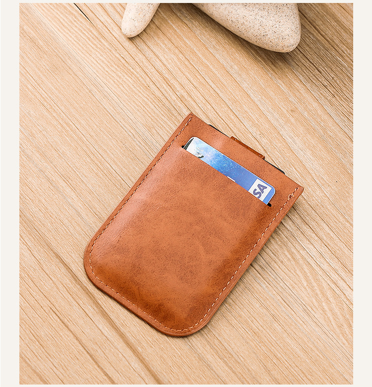 新款复古经典抽拉卡包id PU皮革超薄名片包便 携式小巧卡包男士款