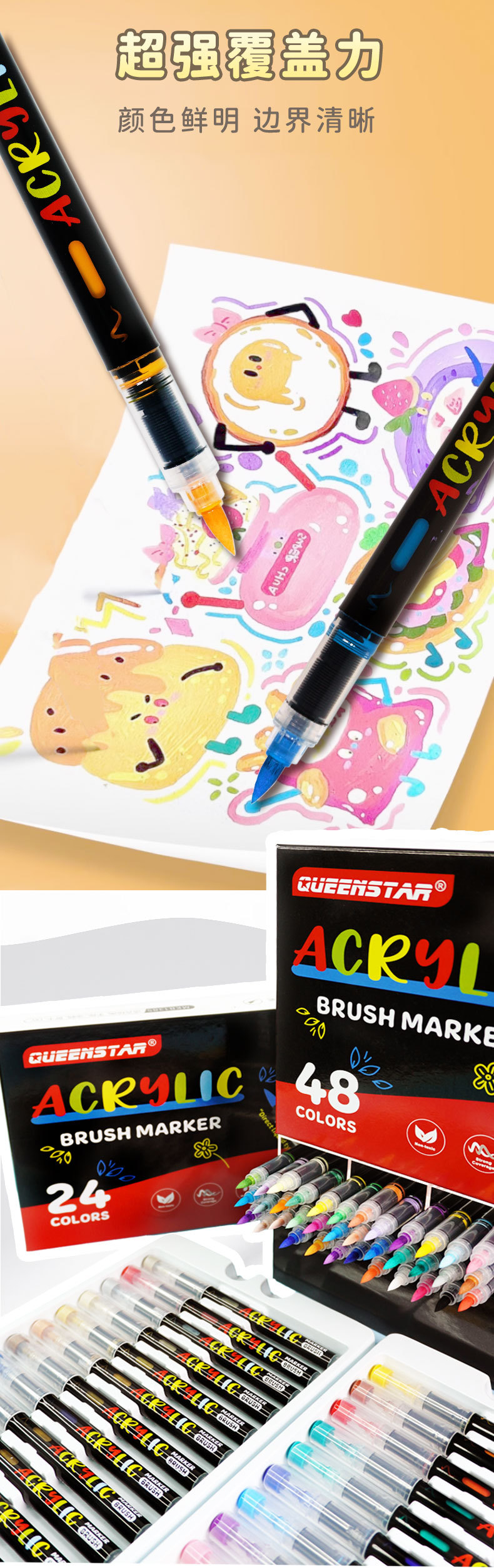 直液式马克笔丙烯可叠色软头画笔套装手帐笔48色彩色笔批发画笔