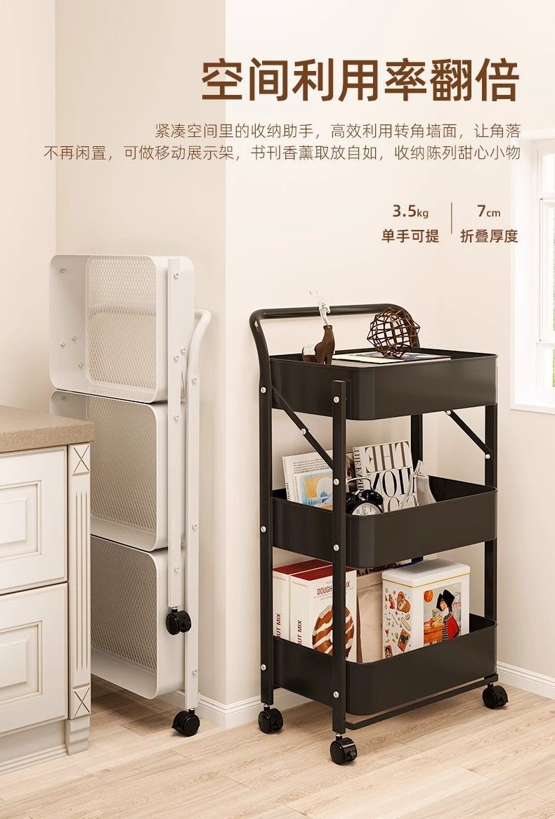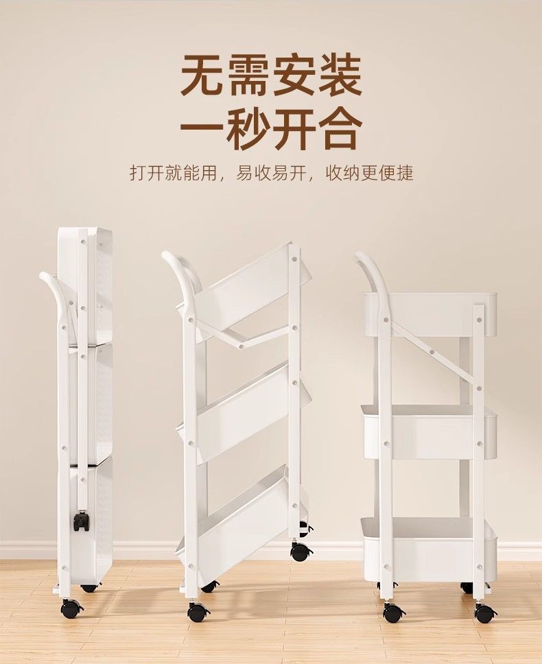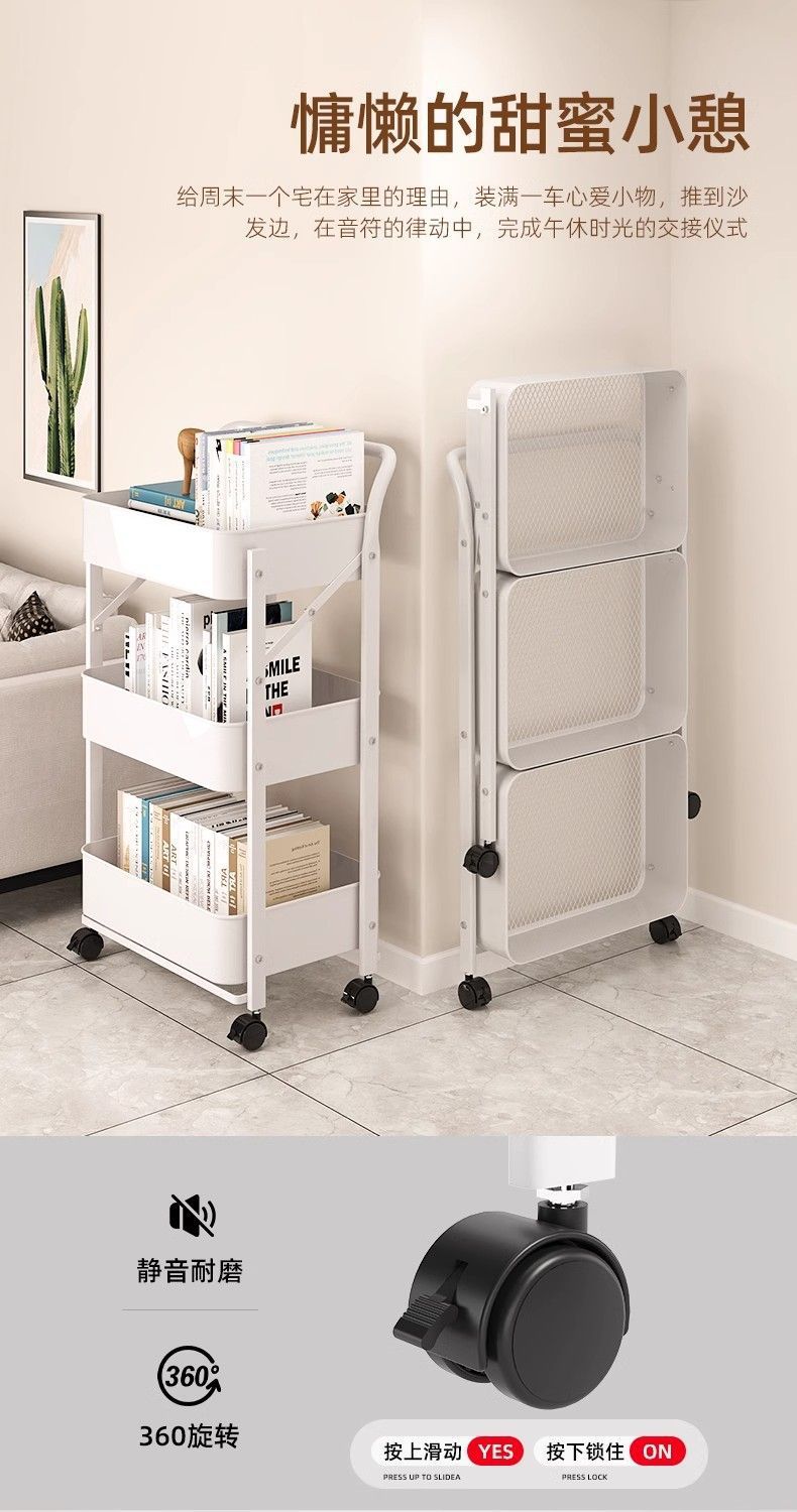 移动小推车落地多层折叠厨房置物架零食架子铁艺卫生间收纳储物架