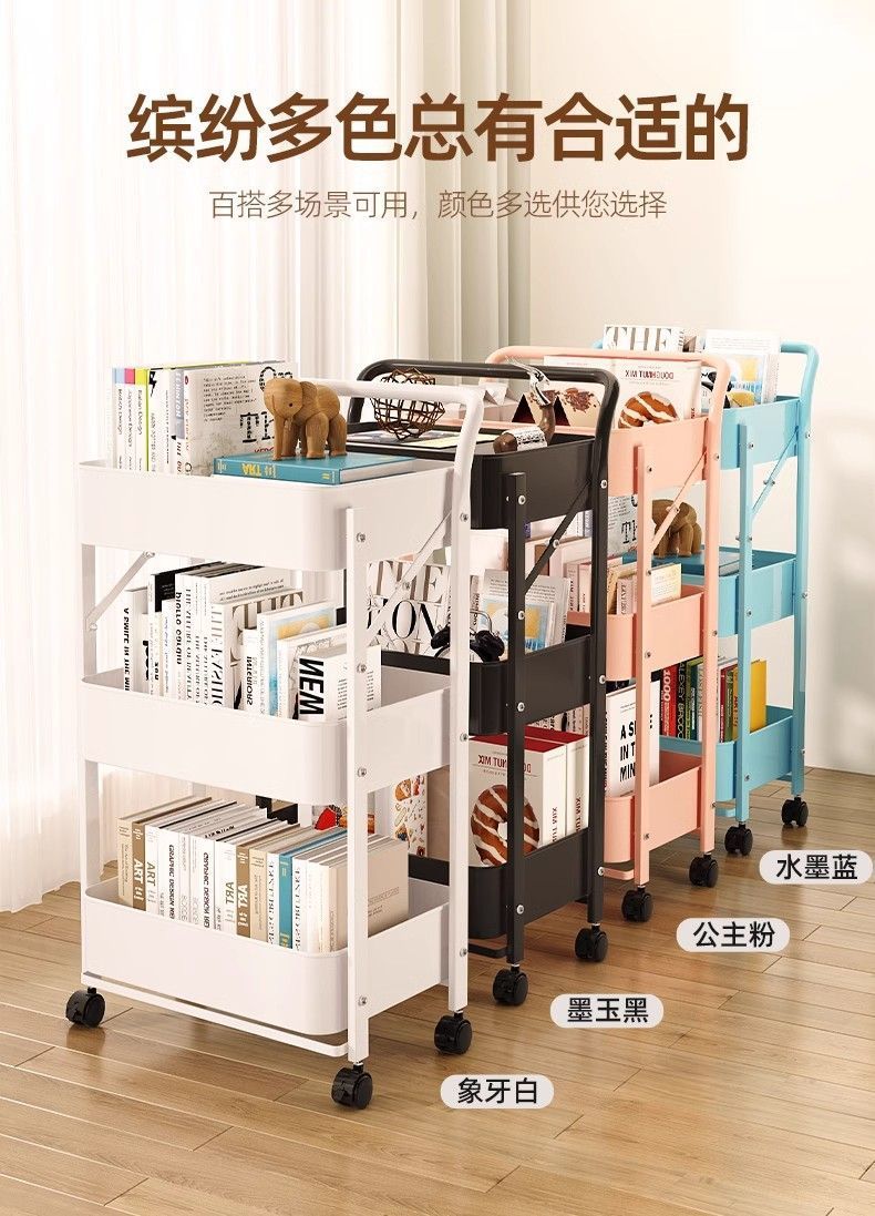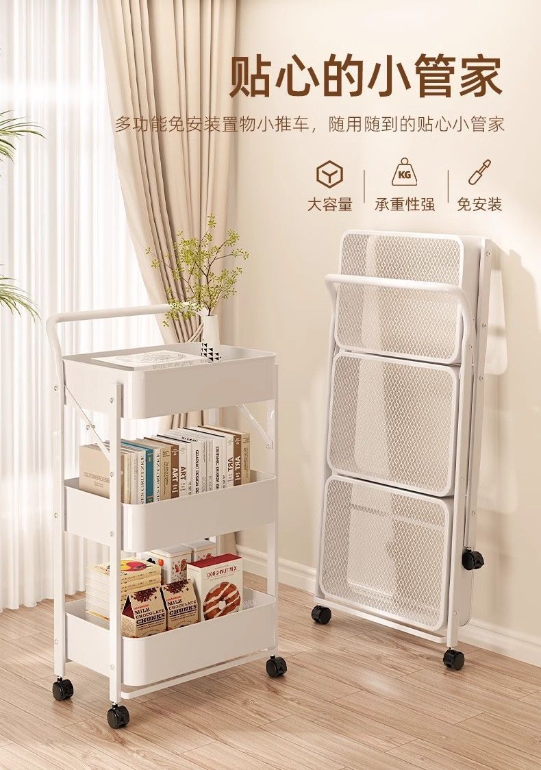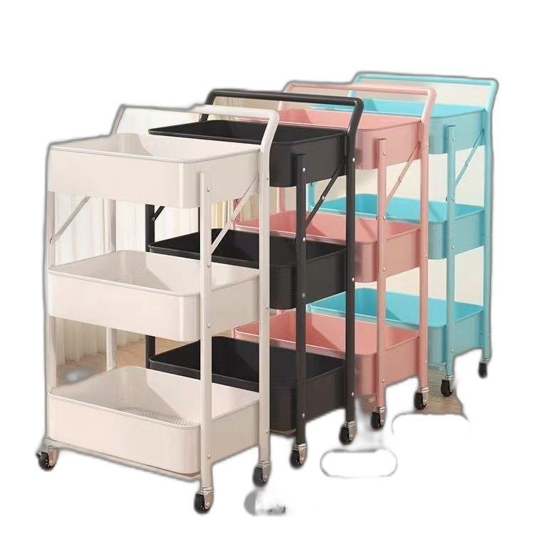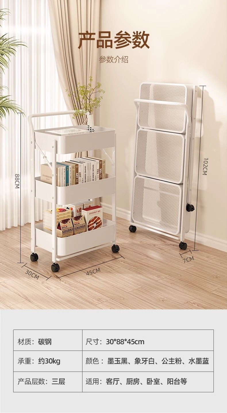 移动小推车落地多层折叠厨房置物架零食架子铁艺卫生间收纳储物架