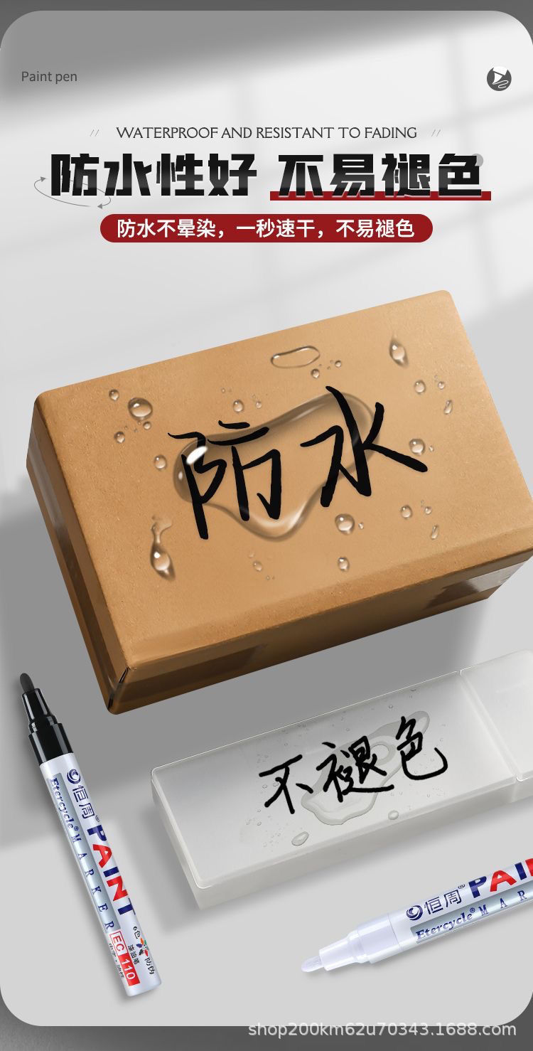 油漆笔白色记号笔补漆笔防水防油不掉色金色银色涂鸦笔油性笔彩色