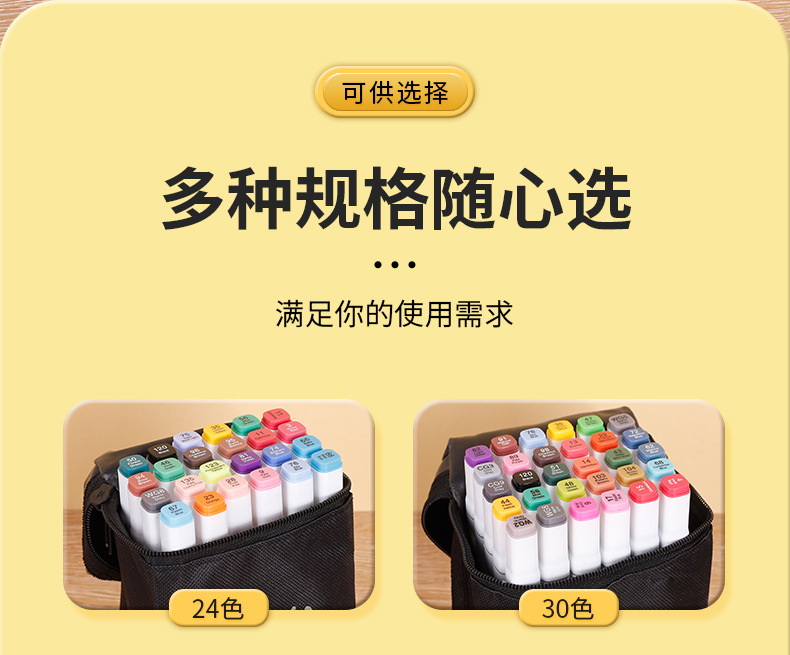 定制软头双头彩色马克笔 24/30/36/40/48/60/80色可选油性马克笔