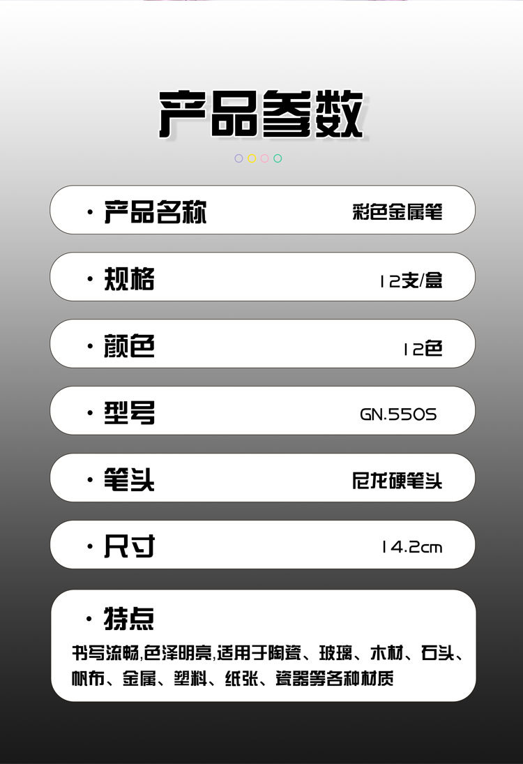 广纳550S彩色金属笔硬头金银色铜色工艺笔签到签名笔油漆记号笔