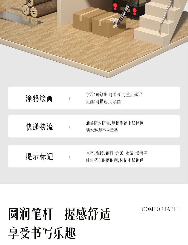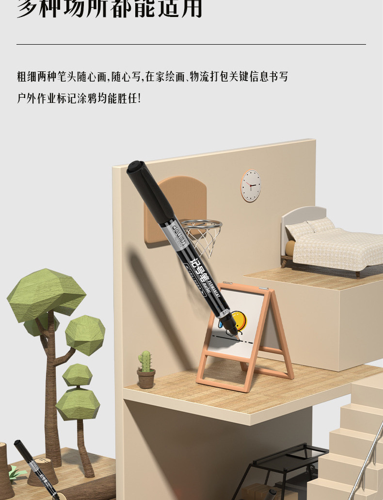 得力6824小双头记号笔儿童勾线笔勾边笔彩色油性记号笔批发防水