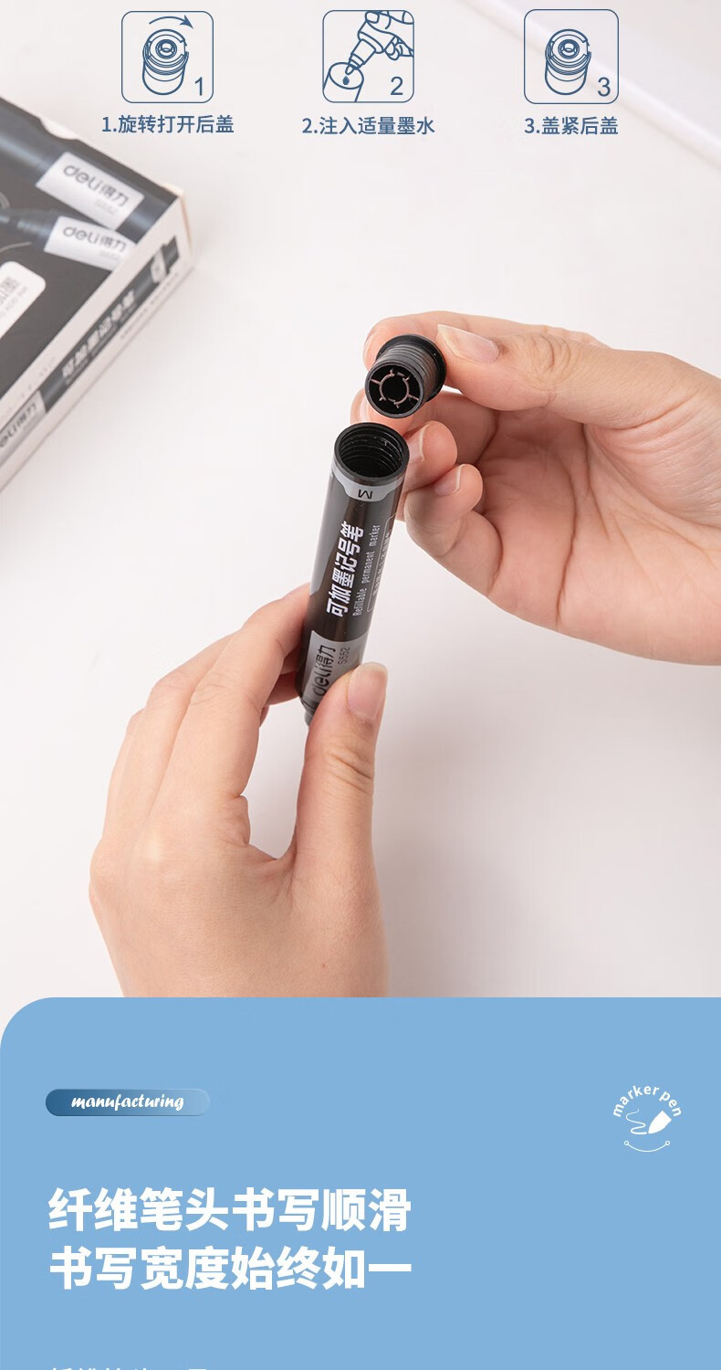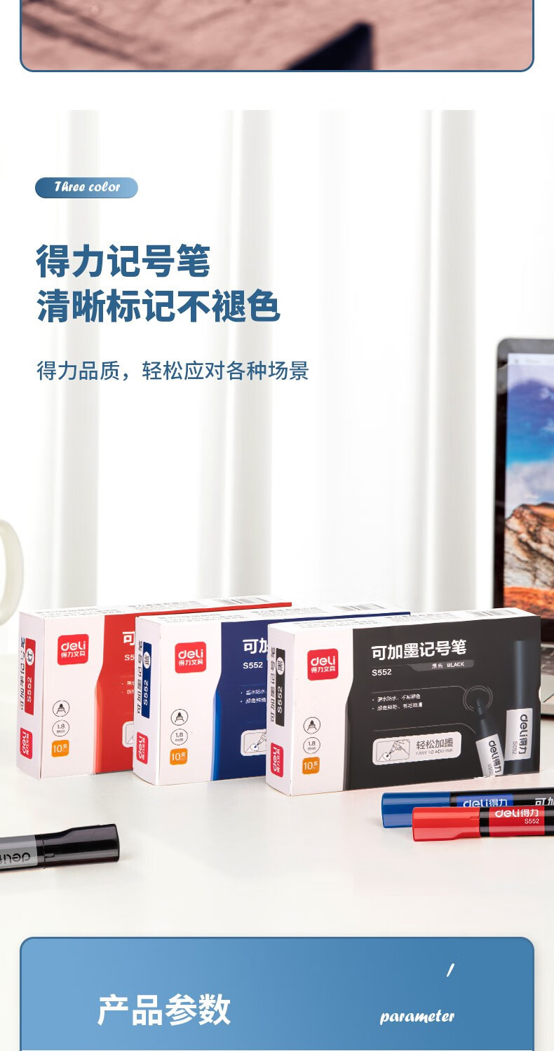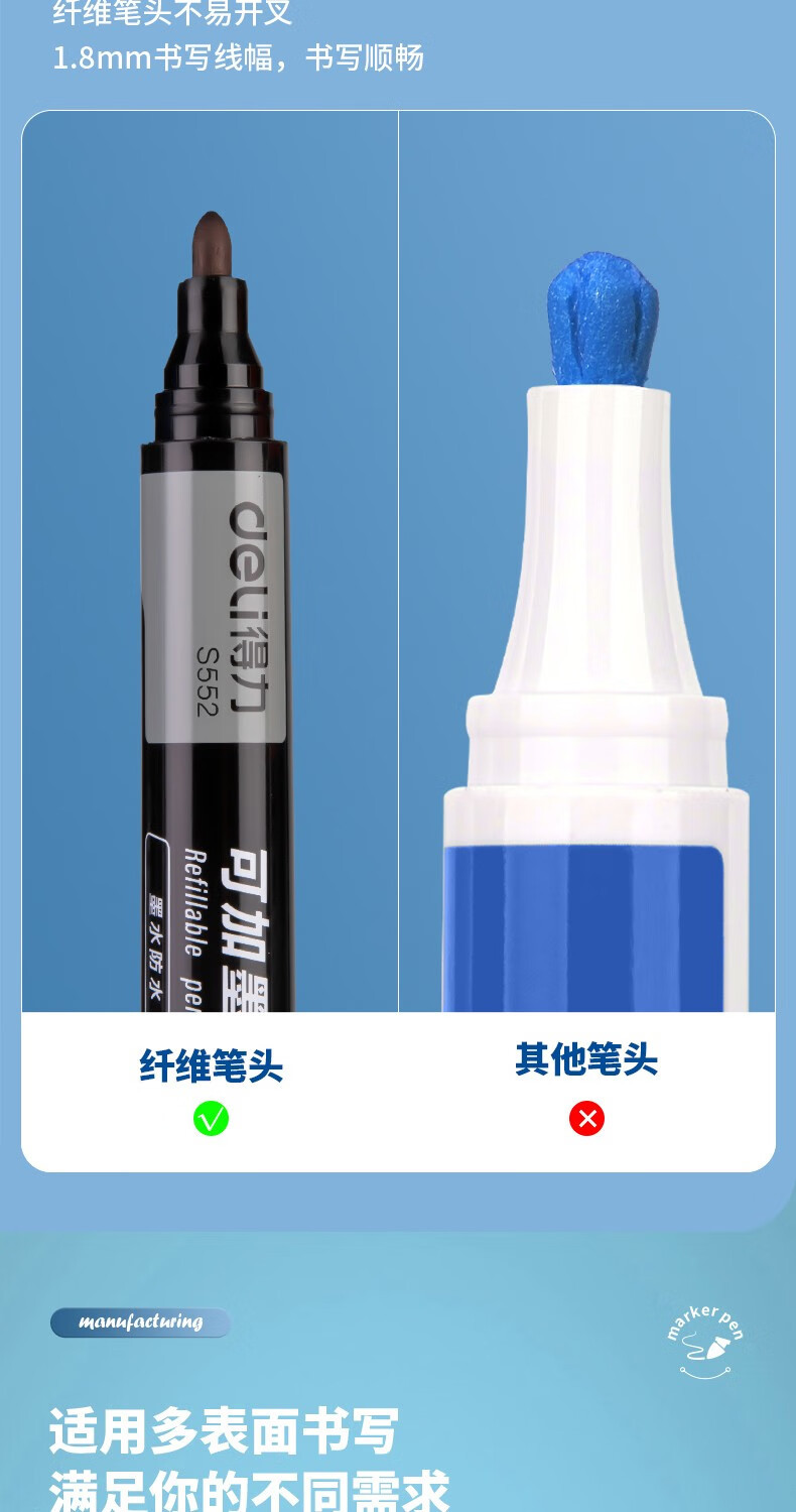 得力S552大头油性记号笔彩色粗头粗笔快递物流箱大号容量可加墨