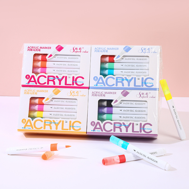 水性软头丙烯马克笔套装儿童美术用品叠色不透色涂鸦彩色笔马克笔