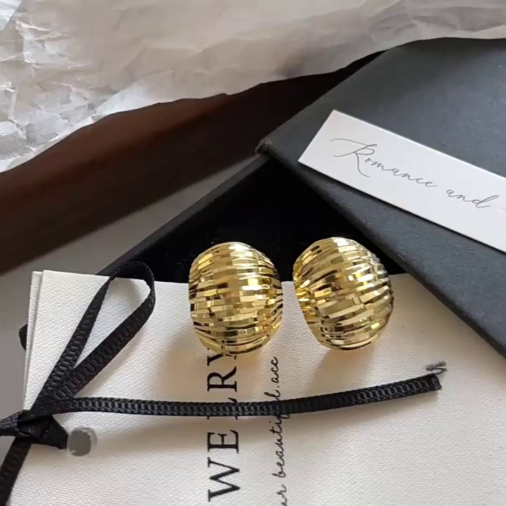 S925纯银针欧美跨境爆款耳环耳饰18K真金电镀小香风C形纹理耳钉女