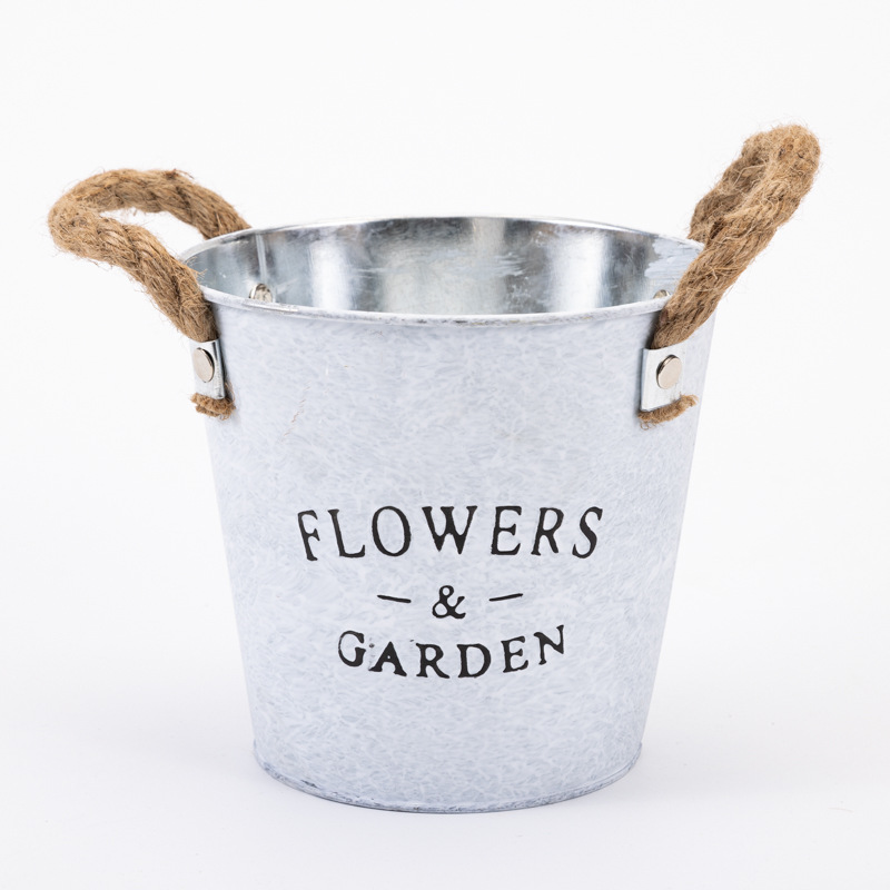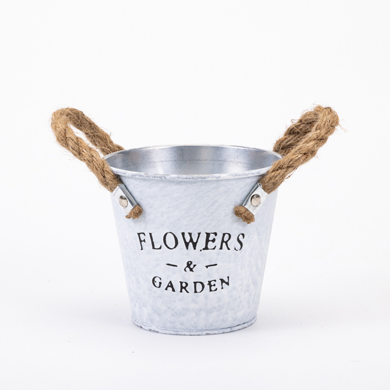 跨境 复古麻绳手把铁皮花桶盆 简约装饰仿真多肉花盆现货