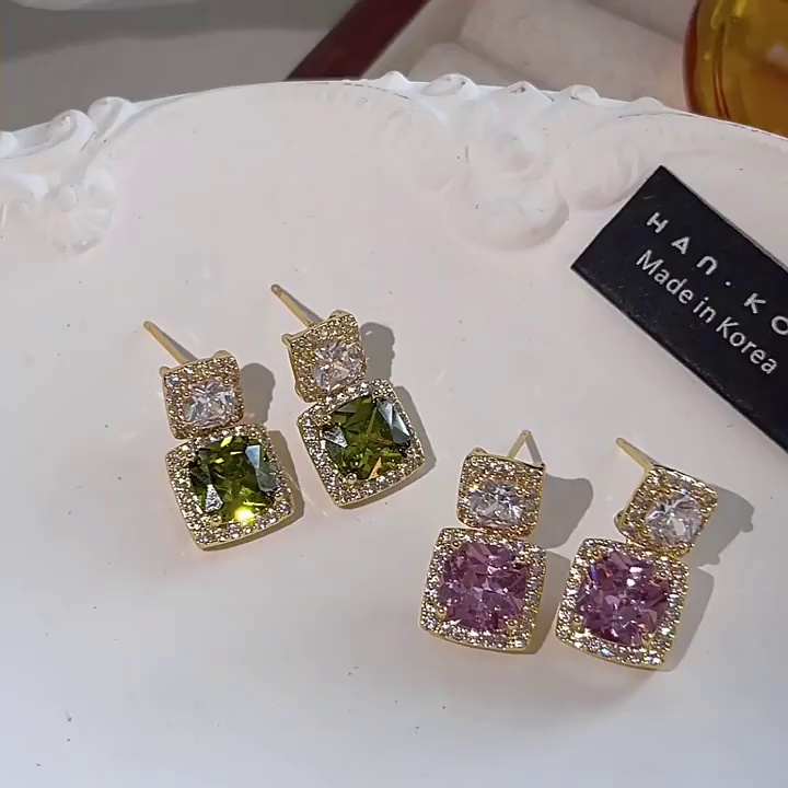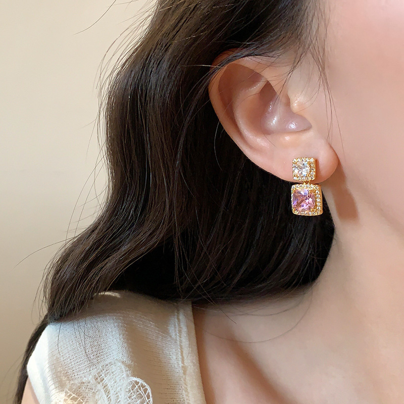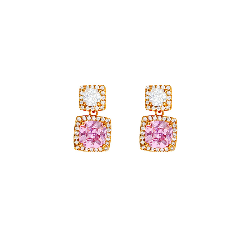 真金电镀时尚气质方锆耳环S925纯银针轻奢小众高级感5A级锆石耳钉