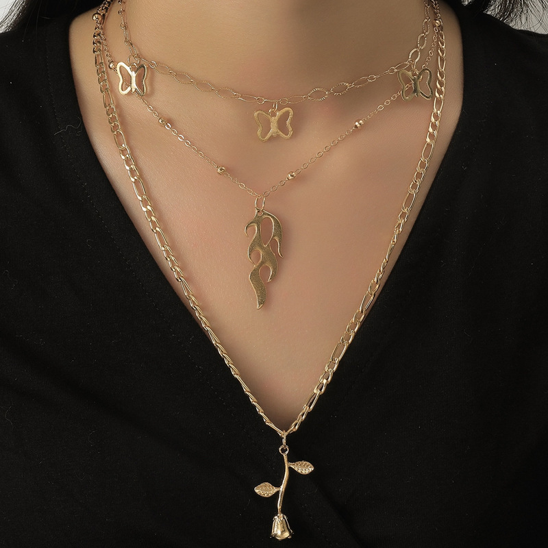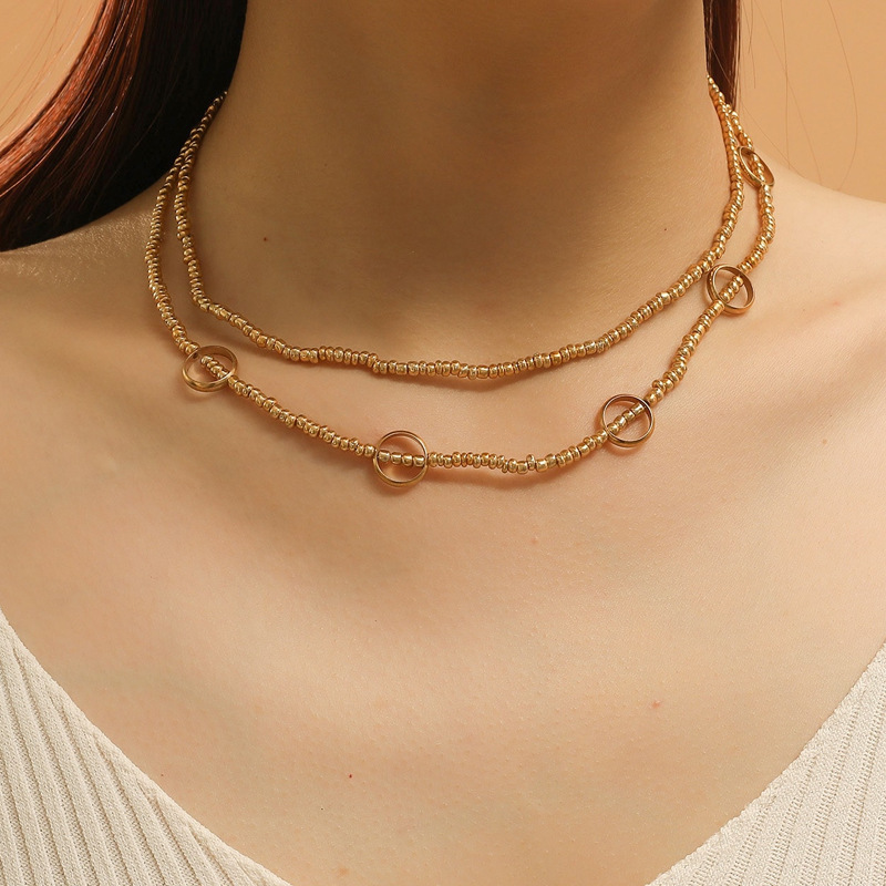 欧美跨境新款金色多层人像珍珠项链 ins时尚复古夸张吊坠锁骨链女