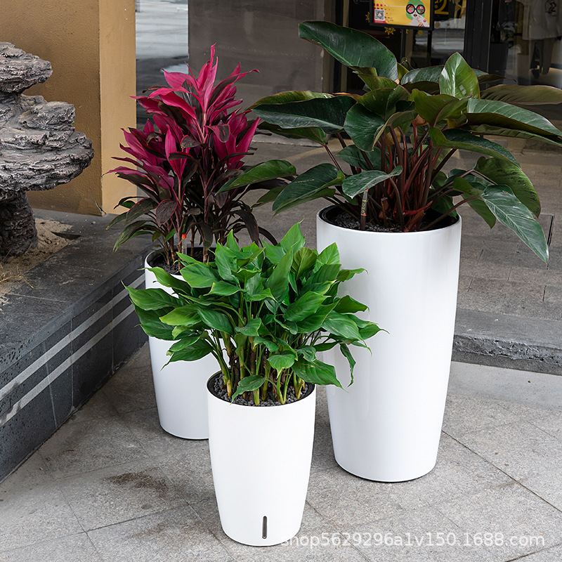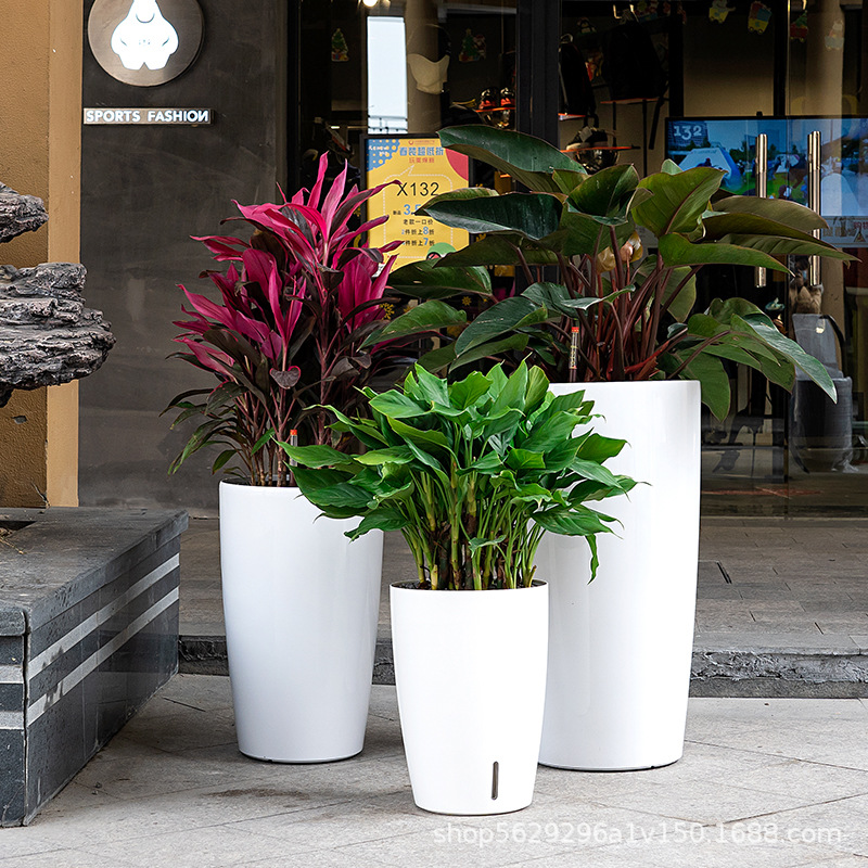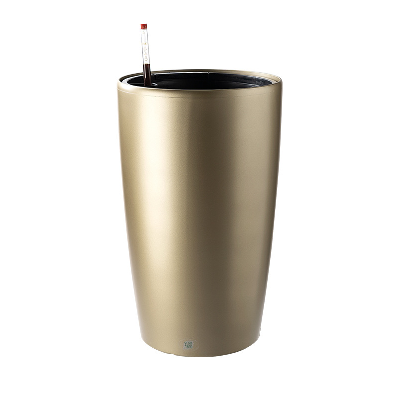 厂家批发落地花盆圆形特大号高圆柱烤漆懒人北欧轻奢自动吸水花盆