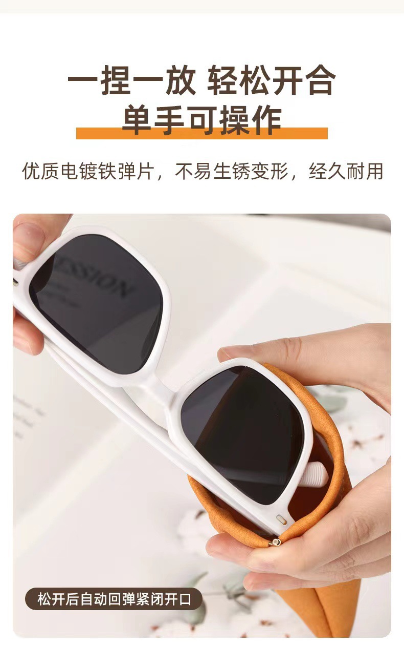 眼镜袋墨镜太阳镜男女收纳套弹片口自动闭合眼镜收纳包皮质眼镜袋