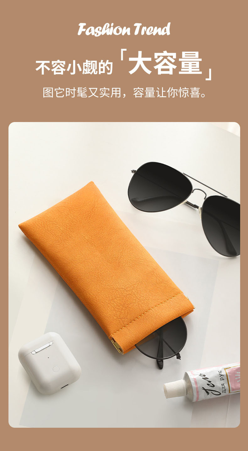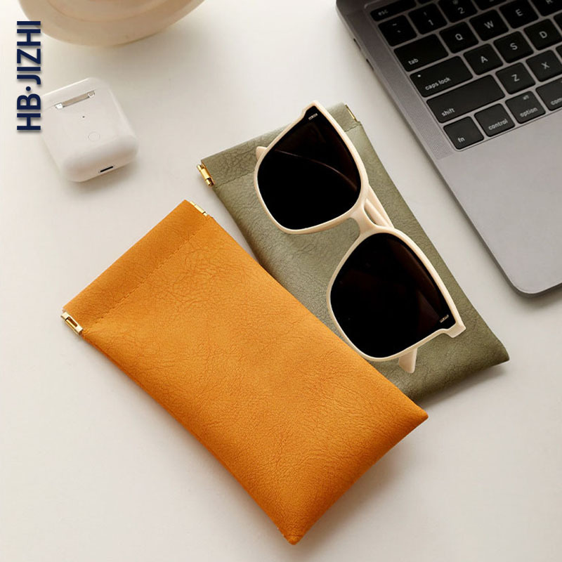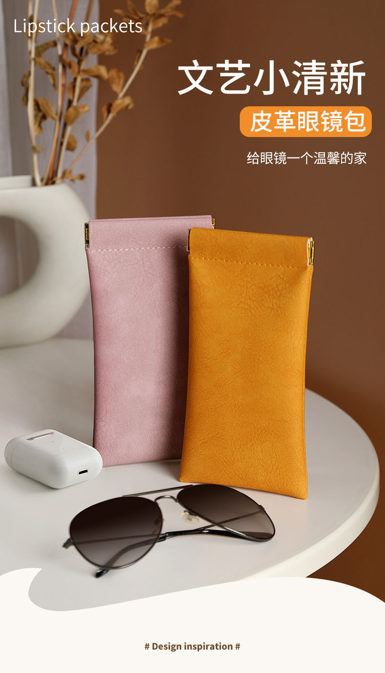 眼镜袋墨镜太阳镜男女收纳套弹片口自动闭合眼镜收纳包皮质眼镜袋