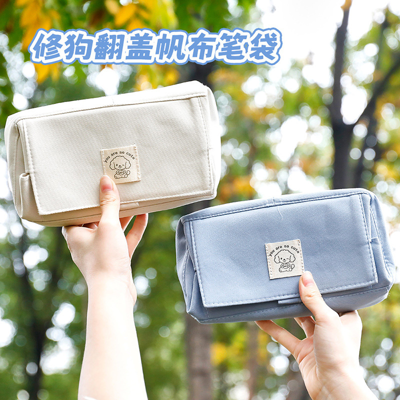ins可爱翻盖帆布笔袋 学生高颜值铅笔袋创意大容量双层文具收纳袋